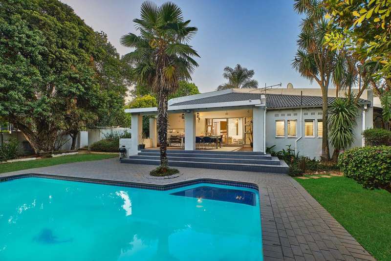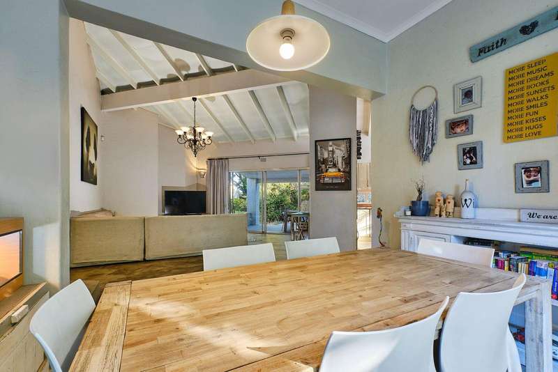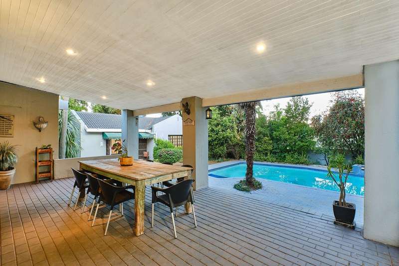 This seamless indoor experience extends outside, leading to a magnificent double-covered patio. Perfectly designed for entertaining, this outdoor area offers ample space for both dining and lounging, all while overlooking the beautifully landscaped garden and glistening swimming pool. Whether hosting a lively summer braai or a quiet evening gathering, this space is made for making memories.