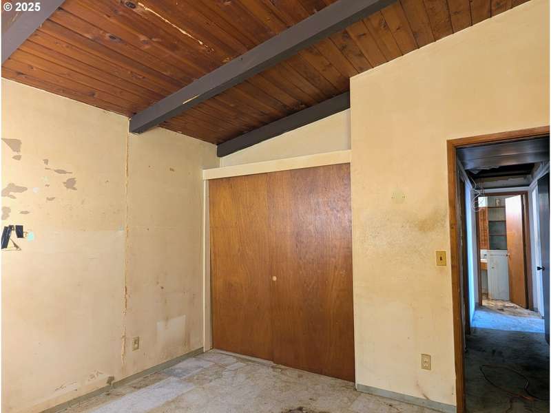Opportunity home for flippers, builders, and developers. A cool ranch with simple but effective layout that could be given a new life. Large living room connected to open-concept kitchen with sliding doors to the fenced backyard. Vaulted ceilings with exposed wood finishes are in all rooms of the home. Ample backyard space and deep driveway. All utilities are connected for inspections. Developer Packet available upon request. To be sold as-is.