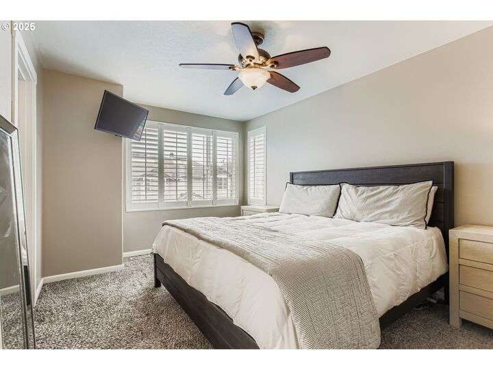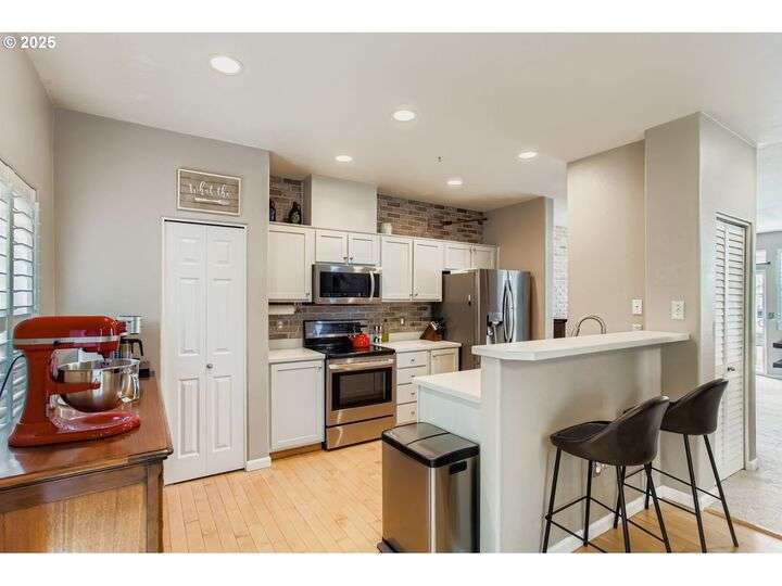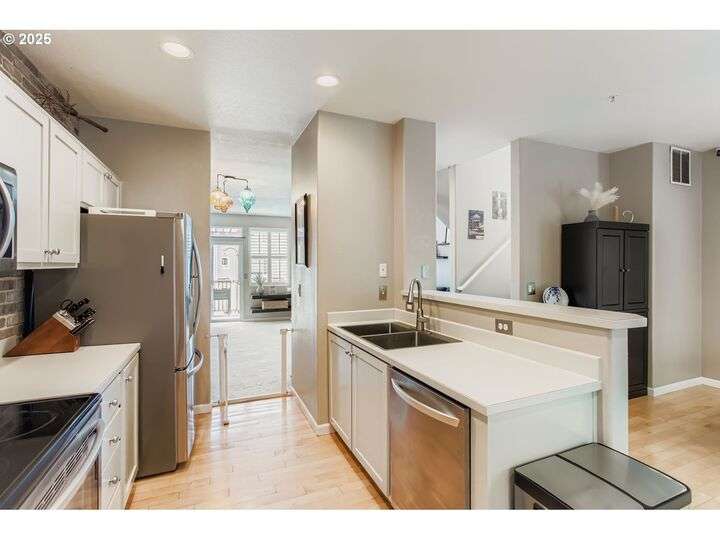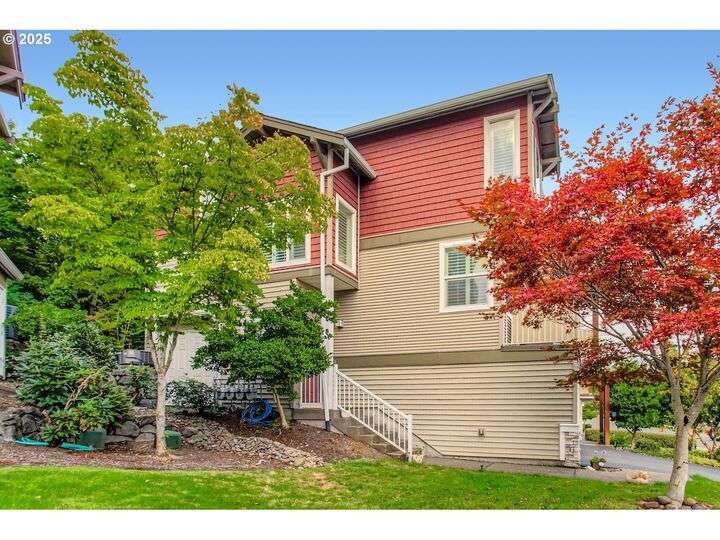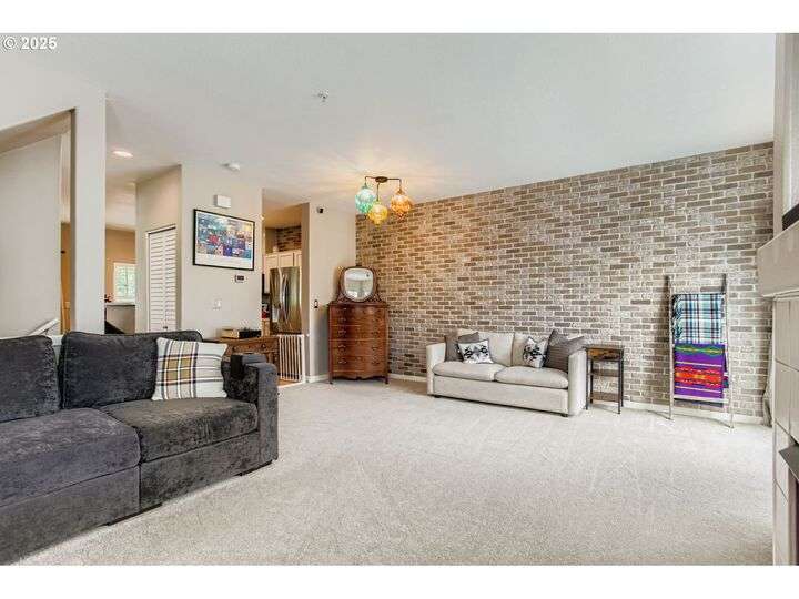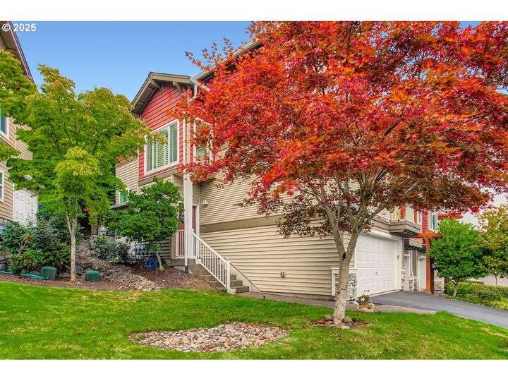 One of the best townhomes in the complex, this corner unit lives like a detached home with ideal features throughout. Back on the market, no fault of the seller/property, and offering a CREDIT TO BUYERS of 6 months of HOA’s with a full price offer. Flanked by natural light and adjacent to a green space, it offers both privacy and connection to the outdoors. A rare 2-car driveway plus 2-car garage provides unmatched convenience. Enjoy a quiet street setting with a private back patio shaded by trees and a sunny front deck. Inside, three levels of finished living space make daily life easy. Plantation shutters add warmth and style. On the main floor, new carpet and a charming brick accent wall frame the fabulous gas fireplace with built-in shelving, opening to a spacious deck, perfect for relaxing or even tending a small garden. High ceilings and an open floor plan create a natural flow for entertaining. The kitchen features an upgraded appliance package, hardwood floors, an eat-in bar, and a slider out to the patio for seamless indoor/outdoor living. Upstairs, the primary suite includes a generous ensuite bath with double sinks, newer luxury vinyl plank flooring, and a walk-in closet with custom built-ins. Two additional bedrooms and a second full bath complete the upper level.The entry level includes a guest half bath and direct access to the garage. A finished bonus room previously used as a gym and storage adds incredible flexibility, complete with its own refrigerator. All new roofs in the association with no assessments. Strong HOA. IDEAL location that can't be matched for a great walkable lifestyle-Walkscore of 78. Just an 8 min stroll to New Seasons and Progress Ridge Townsquare, where you can shop, visit the brewery, grab a burger at Little Big Burger, or a pastry at Provence, get a coffee, see a movie, and so much more. Close to Progress Lake Park & wetlands. Don't miss this care-free and easy lifestyle offered at this move-in ready townhome