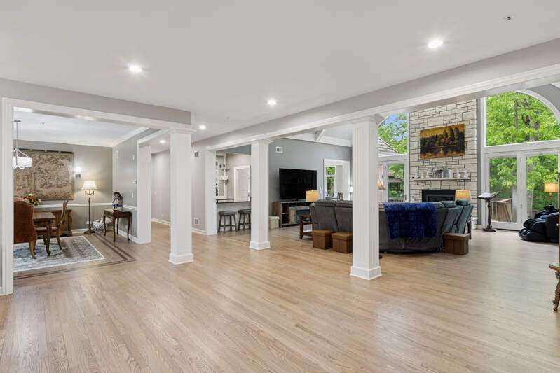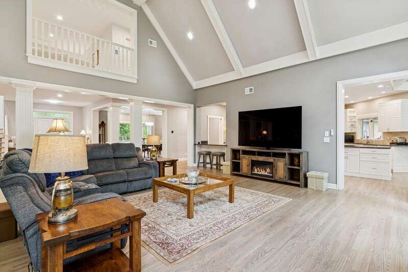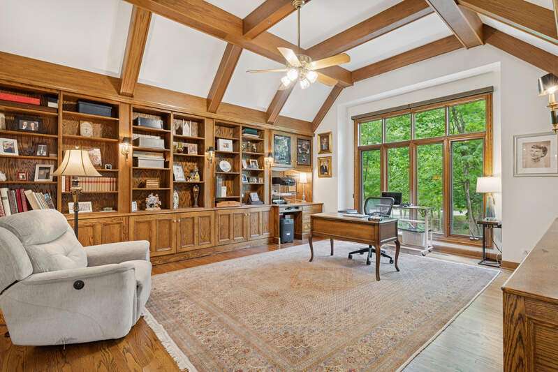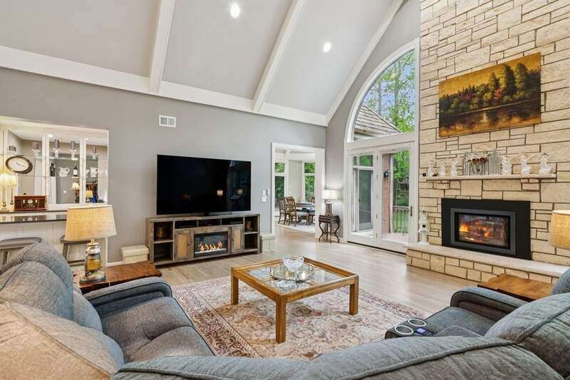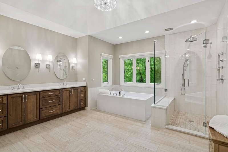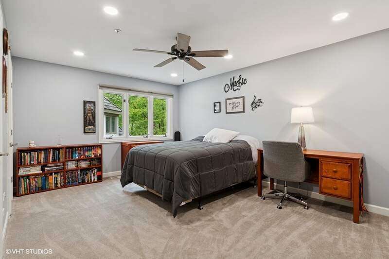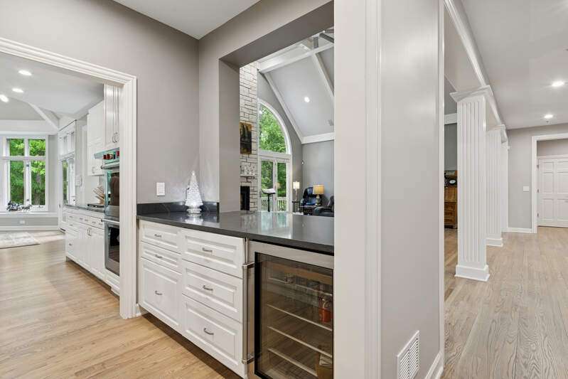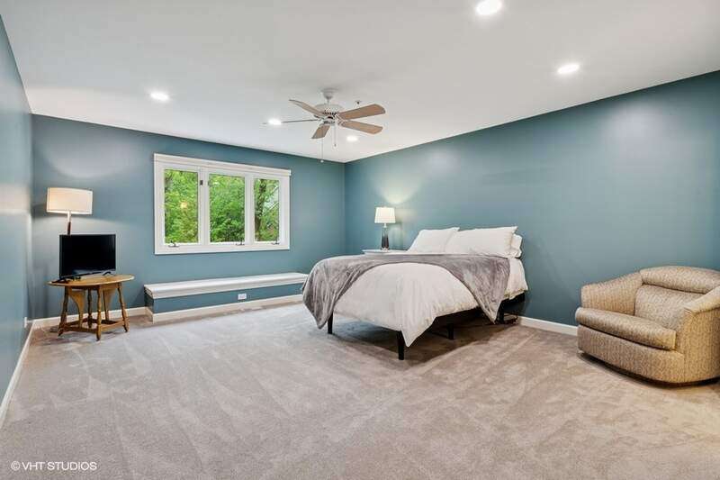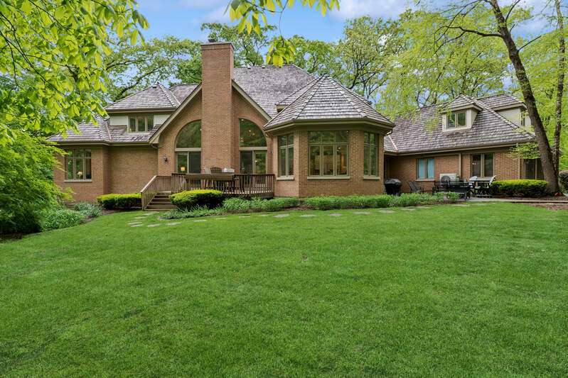 Welcome to this stunning, beautifully RENOVATED 5 bedroom, 5 bathroom home, where modern luxury meets timeless elegance. Nestled in the highly sought-after and prestigious ROYAL MELBOURNE subdivision on one of the largest premium lots, this exquisite home offers meticulously designed living space. Custom built to perfection and NEWLY REMODELED you will be immediately captivated by the expansive layout, open floor plan & unmatched elegance. The two-story family room is a true showstopper featuring soaring vaulted ceilings, a striking floor-to-ceiling stone fireplace, & a wall of oversized windows that bring in an abundance of natural light. The heart of the home is the chef's kitchen featuring custom cabinetry, top of the line SS appliances & natural quartzite countertops. The large center island includes a second prep sink and opens to the sunlit breakfast area with high ceilings & breathtaking views of the private backyard and surrounding woodlands. The formal dining room offers an elegant setting for hosting family gatherings and the private office has custom built-in and wood-detailed bookcases that create a refined and inspiring workspace ideal for any at-home work environment. The FIRST FLOOR primary suite is a private retreat, featuring a completely reimagined en-suite bath w/ all new plumbing, a spa tub, a spacious walk-in shower w/ glass enclosure, a custom vanity with dual sinks & quartzite countertop, and exquisite custom Italian tile that is complete w/ a large walk-in closet. The main floor also features a 2nd bedroom that offers flexibility for guests or multi-generational living, w/ a nearby completely renovated bath providing convenience and privacy. The first-floor laundry room is equipped with new front load GE Profile appliances, freshly painted cabinets & an oversized sink for pet bathing or large projects. Upstairs, there are three generously sized bedrooms with an abundance of closet space, including a second primary bedroom with a private en-suite. The hall bathroom has been FULLY RENOVATED & transformed w/ custom cabinetry, an oversized shower with custom tile, dual sinks, granite countertops, & new plumbing and lighting fixtures. Within this oversized bath is an expanded laundry area w/ NEW AI LG appliances (2024). The previously unfinished attic has now been converted into ADDITIONAL living space including window seats, storage areas, closets & a new independent heating & cooling system. The 2nd floor is complete with a versatile loft area that can be used as office space, a playroom or additional entertaining. The lower level has been REDESIGNED, you will love the huge recreation room that has a brick fireplace with a new door, a NEWLY ADDED custom designed full wet bar area, an exercise, or bonus room that has potential for a 6th bedroom, a theater room and a full bath. There are two large storage/utility rooms complete w/ new Elfa shelving that is ideal for organizing household essentials, seasonal decor & sporting equipment. Additionally, there is a double wall closet w/ shelving for even more storage, and there two separate entrances for added convenience. Outside, the Trex deck & separate patio are great for summer BBQs and entertaining complemented by the circular driveway, custom walkway & redesigned landscaping. Oversized 3 car garage featuring built-in storage, epoxy-coated flooring, home automation systems, new keypads, freshly stained and sealed doors, and all-new weather stripping. This home is truly amazing. Everything is done & is move-in ready. The WHOLE HOUSE has been painted from top to bottom including trim, baseboards & doors, the hardwood floors have been re-stained and resurfaced. The mechanicals are updated that include a NEW FURNACE (2025) 2 TANKLESS WATER HEATERS (2025), 2 WHOLE HOME HUMIDIFIERS (2025), Radiant Floor Heating BOILER (2024), NEW EJECTOR & SUMP PUMP (2023) NEW CEDAR ROOF (2023). Award Winning Stevenson High School & School District #96 schools. Walkable to park.