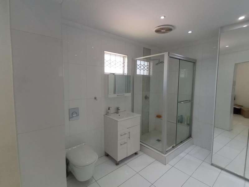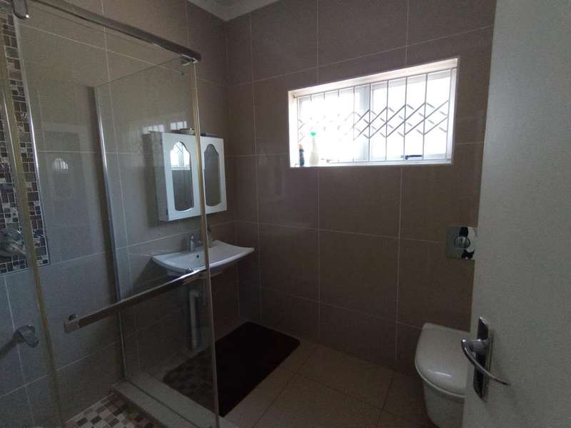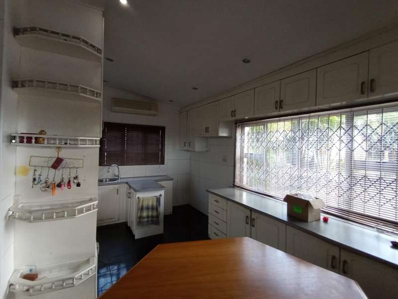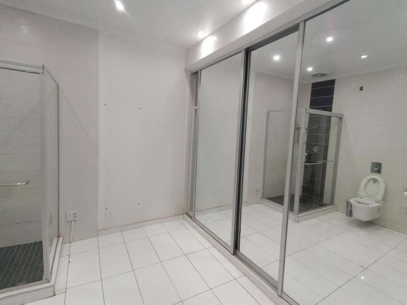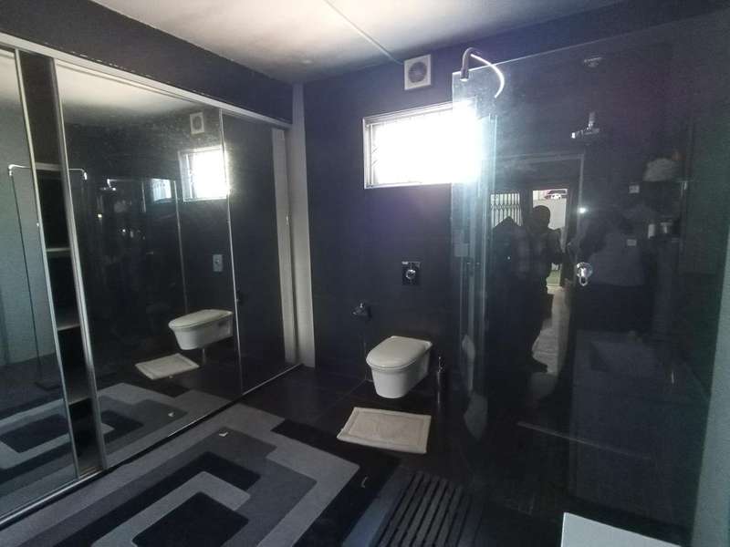 Peace of mind is part of this deal please view this lovely double-story house which offers 5 bedrooms with built-in cupboards with mirror doors. Kitchen fully fitted with scullery of nearly the size of the main kitchen fitted with modernized cupboards, a big tv room which could also be used as a study room, three bedrooms have ensuites, A big lounge/dining open plan with glassy doors giving you a beautiful view of the garden. Beautiful entrance hall from the entertainment area to the lounge and adjacent are the steps going down to the ground part of the house providing two bedrooms one with ensuites, and a big store room to keep stuff and a nice cool bar room for chilling, Entertainment area is covered by a triple carport. More remarkable is the landscape of this house with all the fruit trees and three Jojo tanks to supply water to the house with their electrical pumps, further down is a single separate garage plus an extra room further up are the two staff quarters. The house has an alarm system in place and CCTV consisting of eight cameras around the house. Fully fenced with an automated gate. Half part of the house from the entrance is fully tared. If you love landscaping this is the house to secure.
