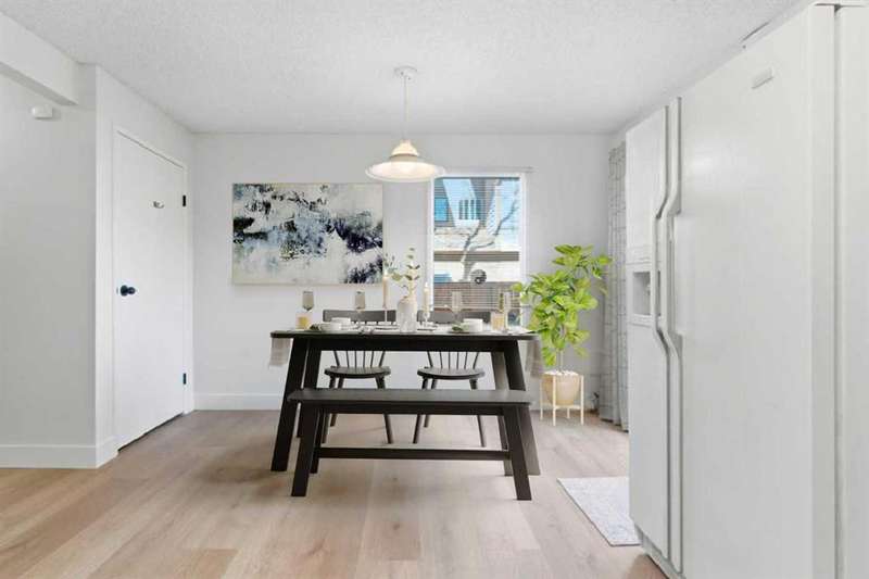Don’t miss this rare opportunity to own an upgraded 1100 square foot END UNIT, 2 storey town home with 3 bedrooms, 1.5 bathrooms, and full basement, directly siding a pathway and green area, for under $400,000. Homes like this don't get listed often at this price point, which offers greater affordability. Some photos have virtual furniture option shown Deer Ridge and Deer Run are stellar south locations, close to Fish Creek Park, minutes to shopping and amenities in the Deer Valley Market Place, Avenida Mall, and Southcentre Mall, with easy access to MacLeod Trail and Deerfoot Trail, as well as lots of additional shopping in Shawnessy, Quarry Park, and McKenzie Towne. All the Deerfield Terrace properties have stucco and wood exteriors. This one allows you to enjoy a private fenced yard with paving stone surface, to sit out in Calgary's year-round sunny weather. It also comes with an assigned parking stall, and plenty additional visitor parking on the drive. Inside is a spacious starter home, with brand new beautiful vinyl plank flooring and fresh paint throughout the main and upper floors. Bright natural light transfers from the newly installed in the spring bay-window, which has a bench seat (with storage). Following through the open hall, there is a 2-piece bathroom and broom closet leading into the wrapped contemporary white kitchen, dinette area with exterior window and large patio doors. Going upstairs, you will experience the safety and warmth of the newly carpeted stairs and new luxury vinyl plank flooring throughout the upper floor. The primary bedroom is spacious enough for king-sized furnishings and has a large walk-in closet. There are also two additional comfortable bedrooms, one large enough for a double or queen size bed and an additional dresser or desk and with double closets. There is also a third bedroom with an exterior window and closest. There is also a full 4-piece bathroom and linen closet centrally located for all three rooms, with a hall stub wall to better accommodate moving furniture in or out. Downstairs, the basement allows for an additional 400 square feet of living space and the layout allows for a big rec/games area, central hobby or playroom, tucked away utility and storage, plus a laundry area that can all be finished to personal taste. There is zero wasted space. See iGuide 3D tour Link with detailed Floor Plans and inside-outside 360 panorama cameras. The Deerfield Terrace complex has an efficient and cost-effective management, regular exterior maintenance, low condo fees and a solid Reserve Fund Plan. The condo documents are available by request and will give you confidence. (Request a showing through your favourite trusted real estate agent. Don't wait, come see this incredible home. A wonderful Opportunity.