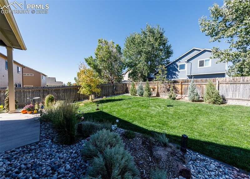 Perfect 1 level living & room to expand in 90% unfinished basement. Basement has a full bat & sub panel for future expansion ~ 3 year old Radon mitigation system- 2 year old active solar system ~ Hardwood flooring in entry, hall, kitchen & dining. 9' basement ceiling & 9' & vaulted ceilings on main level ~ slab granite kitchen with black appliances, breakfast bar, walk in pantry & open to dining and living area ~ 2 bedrooms & office with divided light glass french doors ~ Newly & lushly landscaped front & backyard with many trees (weeping spruces, maple trees, junipers, blue & norwegian spruce), low ornamental grasses & bushes plus a front yard water feature (water garden) with waterfall ~ Covered rear patio to enjoy the "Park like" backyard. Low monthly electric bill