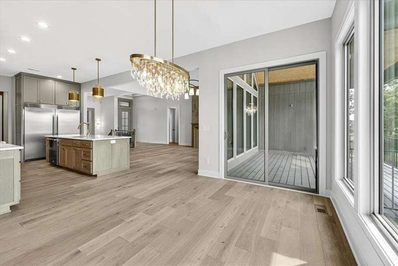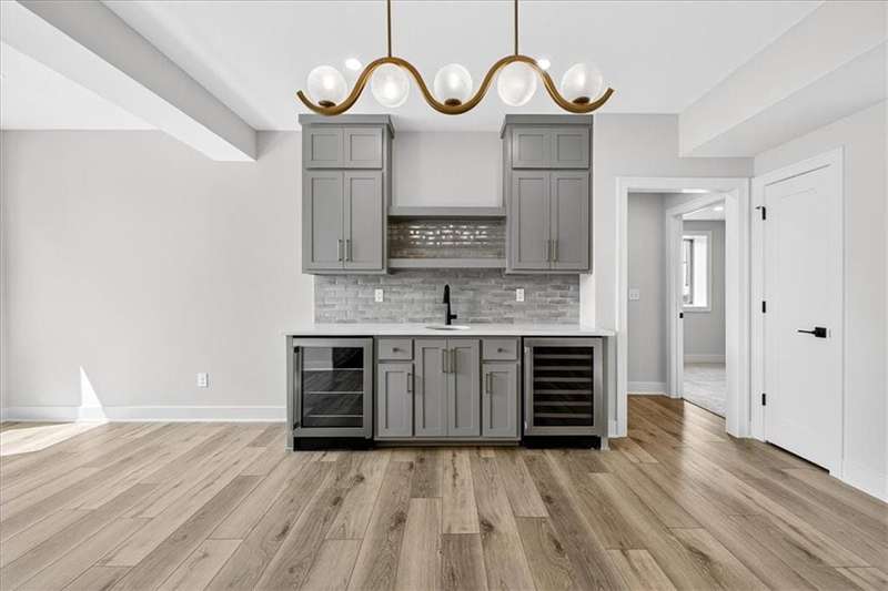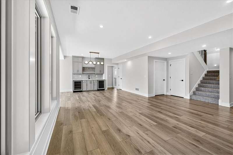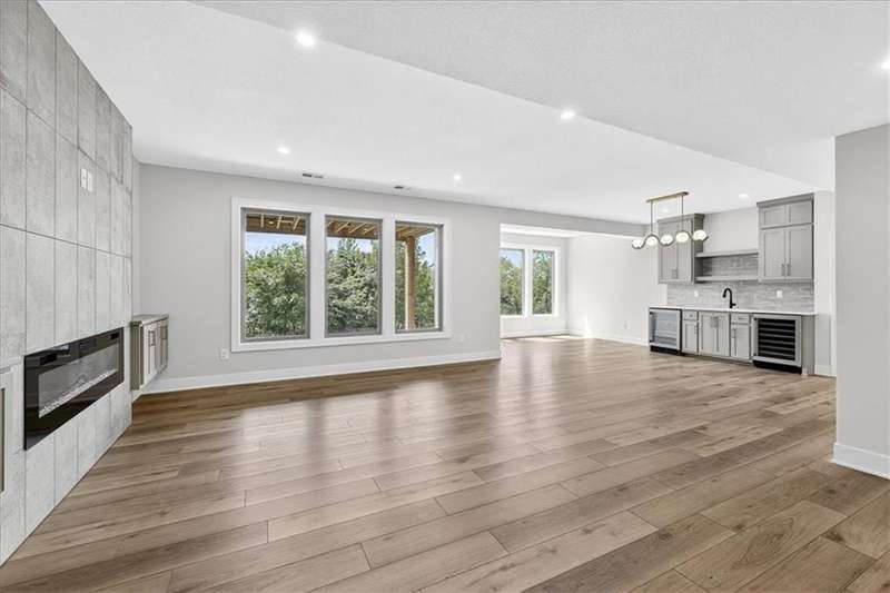 Open the door to your dream home and enjoy this never-lived-in reverse 1.5-story built by L & G Homes. With moresquare footage than the other homes on this cul-de-sac, this stunning house has two main-level bedrooms, both withviews of the neighborhood walking trail. The second main floor bedroom is ideal for an office or playroom. The openkitchen features a massive side-by-side refrigerator and flows to a covered deck overlooking a lush, tree-lined backyard.The primary suite is complemented by a spacious, sunlit walk-in closet designed for maximum organization. Host withease in the walkout lower level, featuring dual beverage refrigerators and a fireplace that lets you set the perfect moodwith adjustable colored flames. Three lower-level bedrooms offer large walk-in closets. The garage is EV-ready with aautomobile outlet. Whole-home inspection has been completed with all items addressed. Move in and enjoy peace of mindin a brand-new home! Crafted with care and loaded with thoughtful upgrades, from top to bottom, every inch of thishome reflects comfort and quality. Dont wait, your dream home is ready!