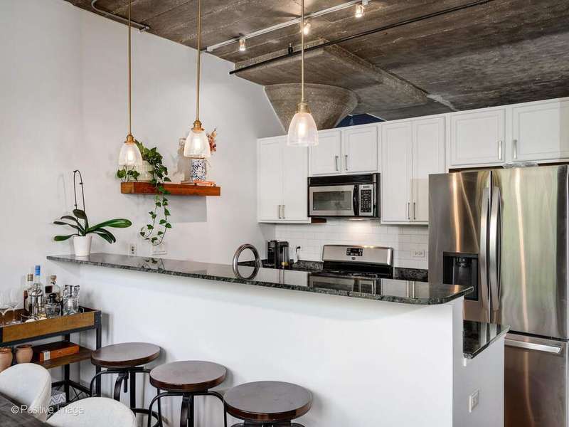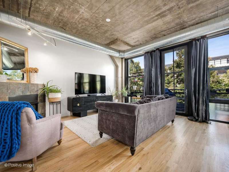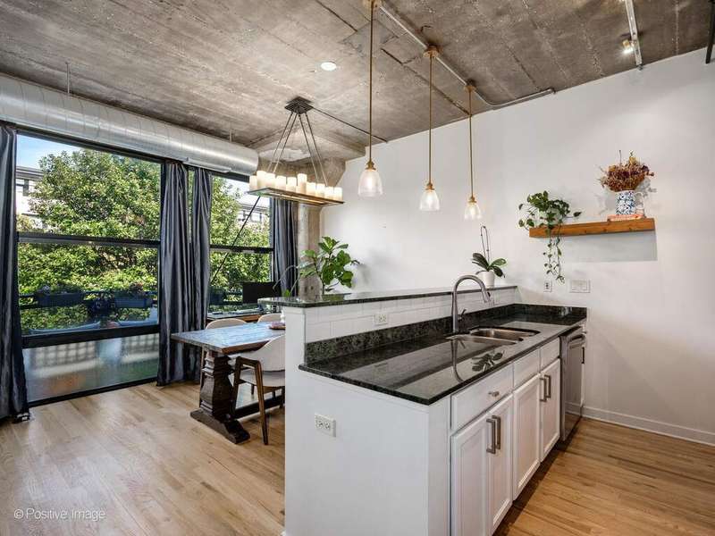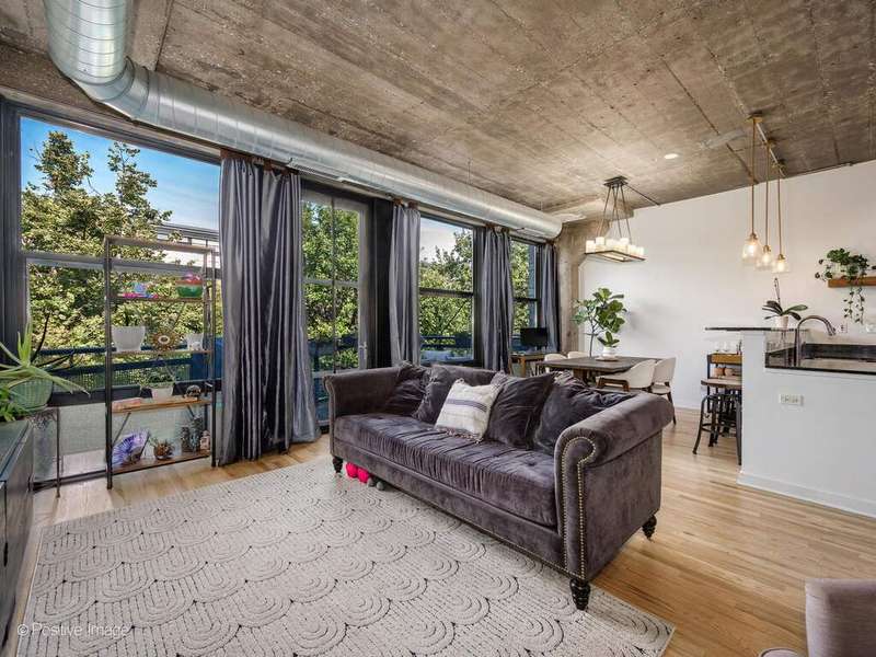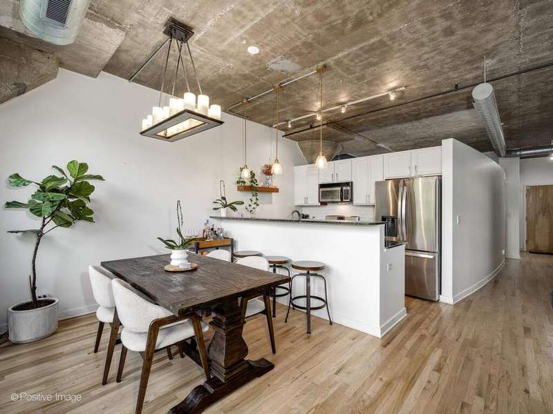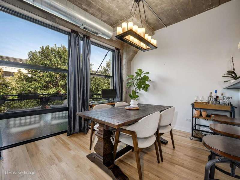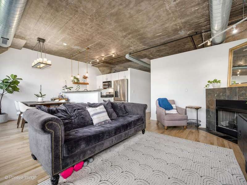 Loft living meets Chicago convenience at University Commons. This bright, lofted unit blends the character of soaring concrete ceilings and oversized windows with thoughtful updates throughout. The wide floor plan creates distinct spaces for living and dining-perfect for entertaining or everyday comfort. A sleek, updated kitchen flows into the dining area framed by dramatic windows, while the spacious living room offers a cozy gas fireplace and plenty of room for a sectional or media setup. The king-sized bedroom feels fresh and serene, and the adjacent upgraded bath completes the private retreat. New hardwood floors, in-unit laundry, and calming treetop views add everyday comfort. A heated garage parking spot is included, making city winters a breeze. University Commons delivers unmatched amenities: heated outdoor pool, multiple rooftop decks with skyline views, fitness center, party room, private movie theater, and on-site management. All in a prime location at the crossroads of the South Loop, West Loop, and University Village-steps to UIC, the Medical District, Taylor Street dining, Pilsen nightlife, and with easy access to expressways and Lake Shore Drive.