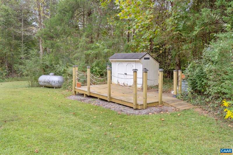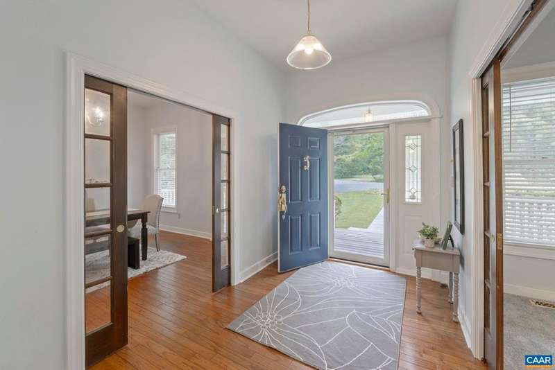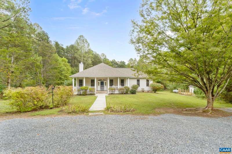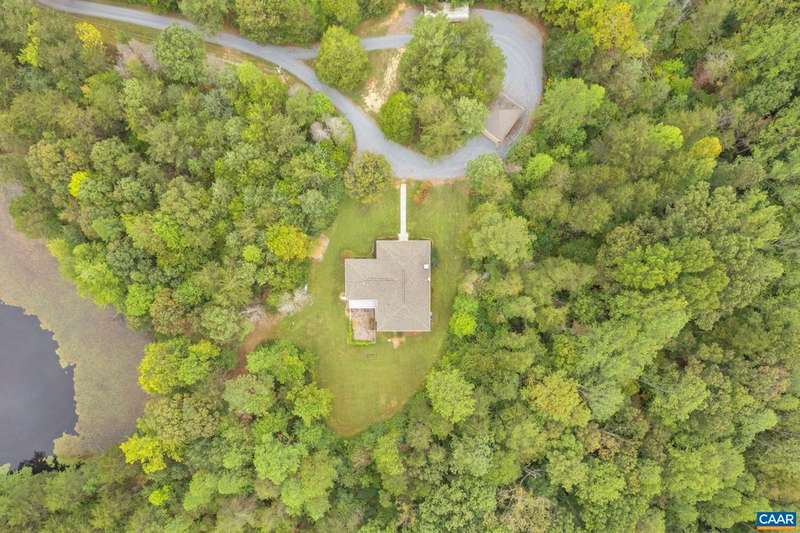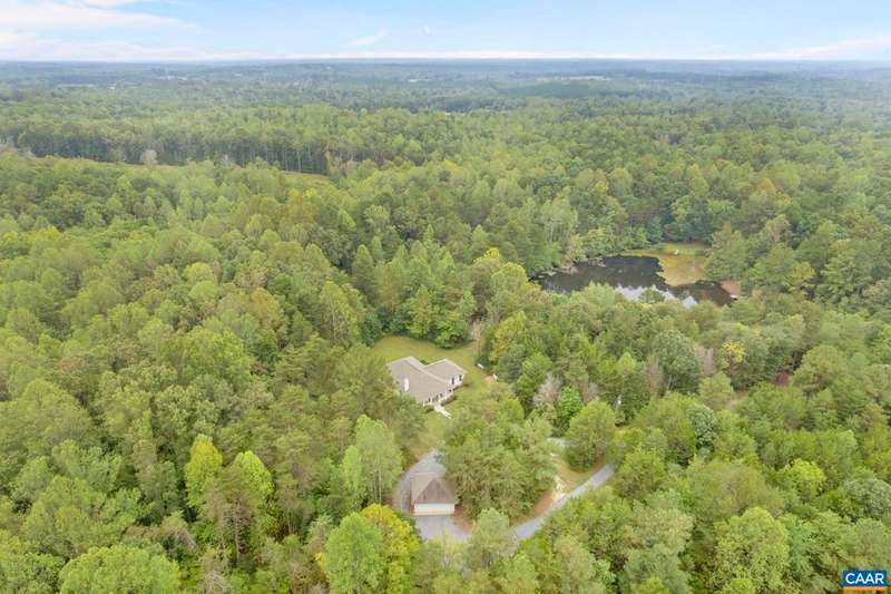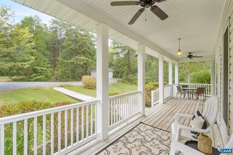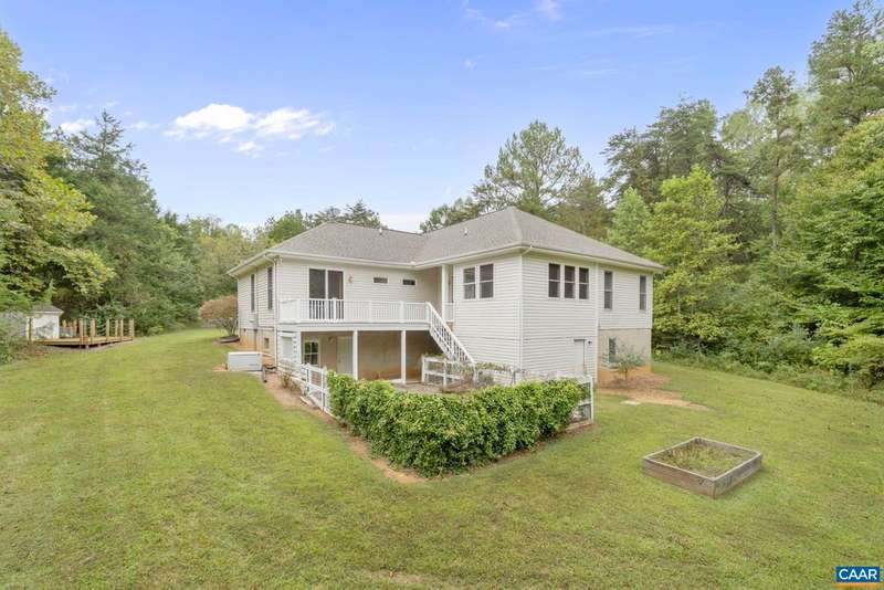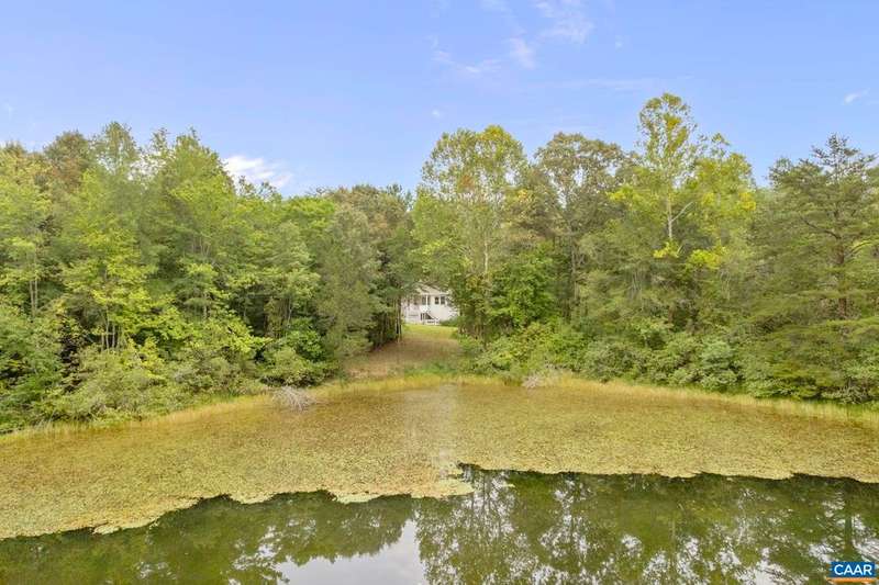 Southern Living designed home on 14 acres with woods & water views! This home was once a charming B&B! Main level living with airy 10' ceilings. Formal & informal living spaces. All bedrooms enjoy an en suite bath. Step inside from a rocking chair front porch with ceiling fans. Handsome glass French doors open to a spacious dining room and across the hall to the living room with wood burning fireplace. Chef's eat-in kitchen with SS appliances opens to a breakfast room with two walls of windows. Enjoy your water view and grilling on the elevated trex deck with staircase to an open flat yard & fenced area perfect for pets or gardening. Owners suite with sitting area,newly renovated bath & walk-in closet with custom organizers. Imagine the possibilities in the expansive unfinished basement with roughed-in plumbing. More than one door leads to the outdoors. Store your fishing poles and kayaks on one side and finish the other! Detached 2-car garage with 4 doors for easy in and out. Park your RV or boat under the carport. Whole house generator. Central vac. Fresh paint. New flooring. NEW roof (2024). Dual HVAC (one system new-2023). Water heaters (2025 & 2020). No HOA. Easy access to I-64 just 7 mi from your door!