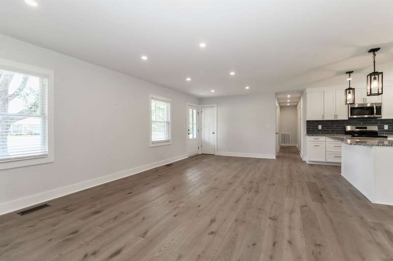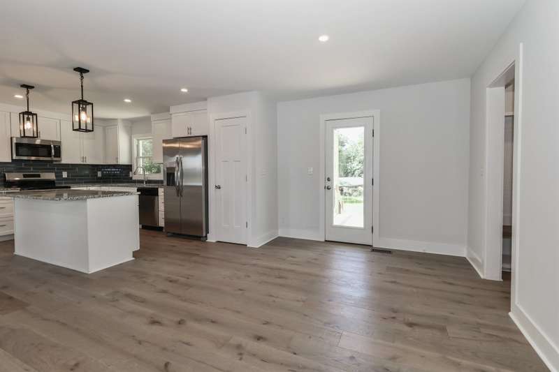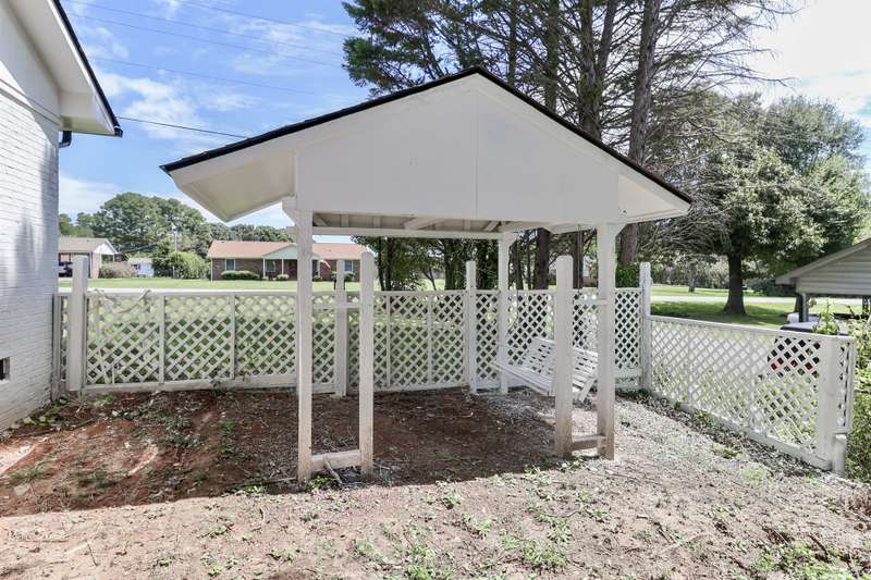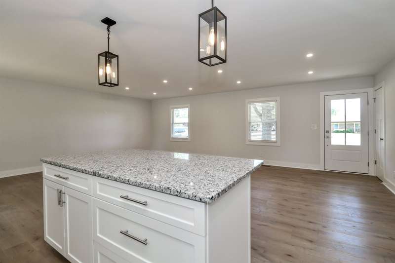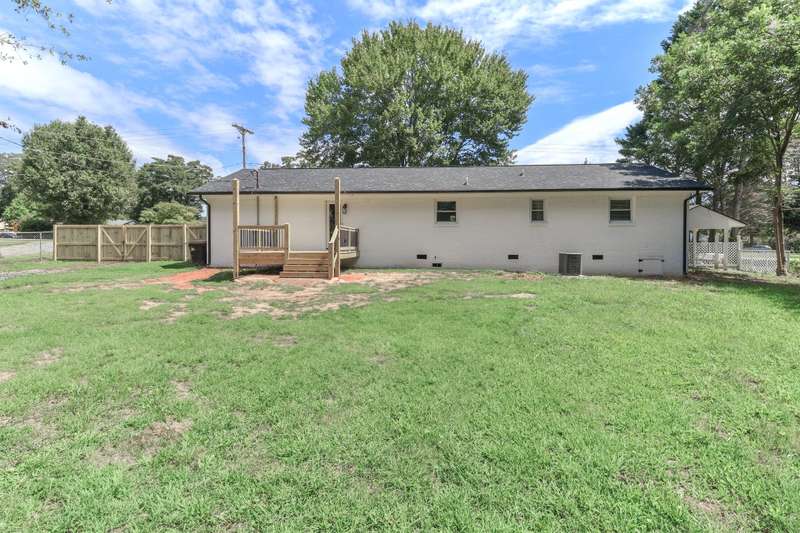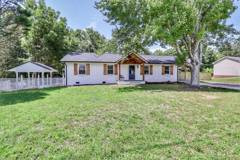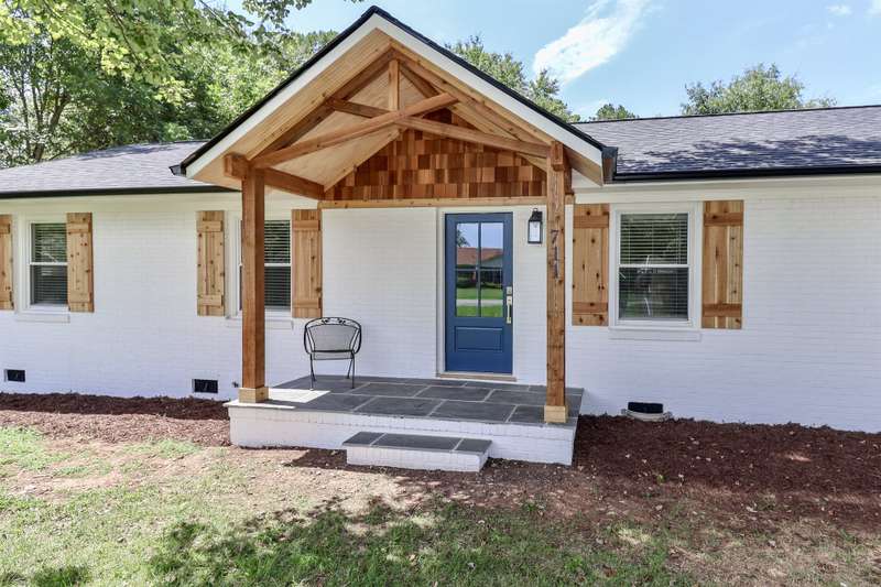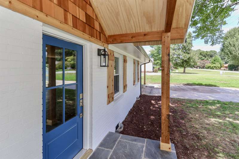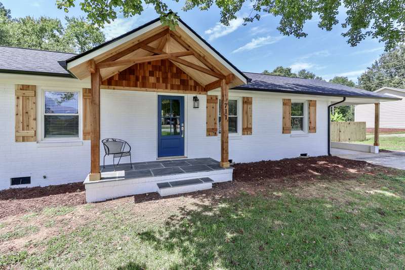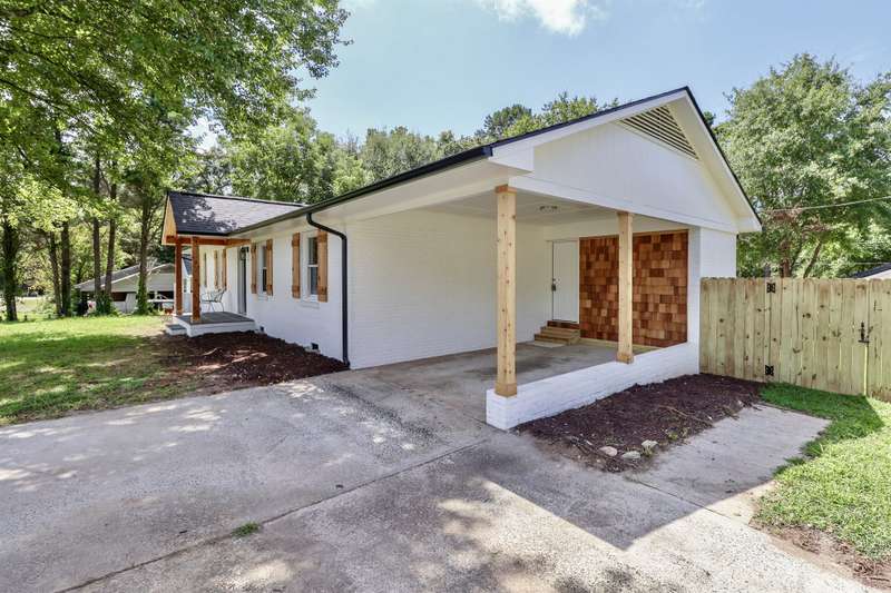 Don't miss this fully renovated brick ranch with carport and detached garage. The open floor plan features wide-plank engineered hardwood flooring, fresh paint, and recessed lighting throughout. The kitchen offers new cabinets, granite countertops, subway tile backsplash, new stainless appliances, pantry, and a large island perfect for seating. Both bathrooms include custom tile and modern fixtures, with the primary bath showcasing a marble-top vanity and walk-in shower. Additional spaces include an isolated laundry room, and mud room with built-in drop zone. Outdoor living shines with a deck that includes outdoor string lights, large fenced yard, detached garage/workshop, large mature trees, and covered swing pavilion. The inviting front porch and carport have cedar accents, bluestone front porch, and a stunning blue ? light front door that adds welcoming curb appeal. The detached garage, swing pavilion, and house have new roofs with ridge vents and new gutters. The attic has fresh blown in insulation and the crawl space has new insulation and a newly installed vapor barrier. Move-in ready, this home offers the feel of new construction with the character of an established neighborhood.