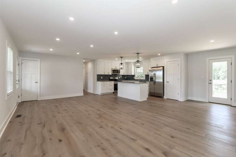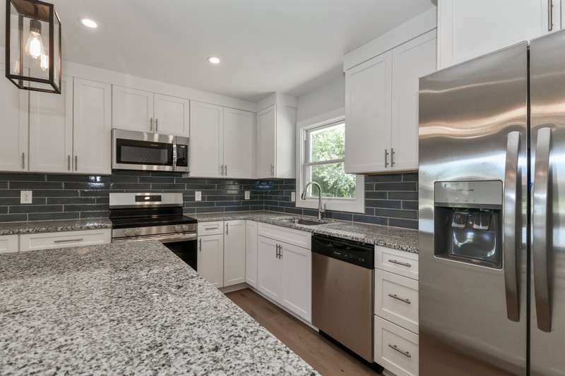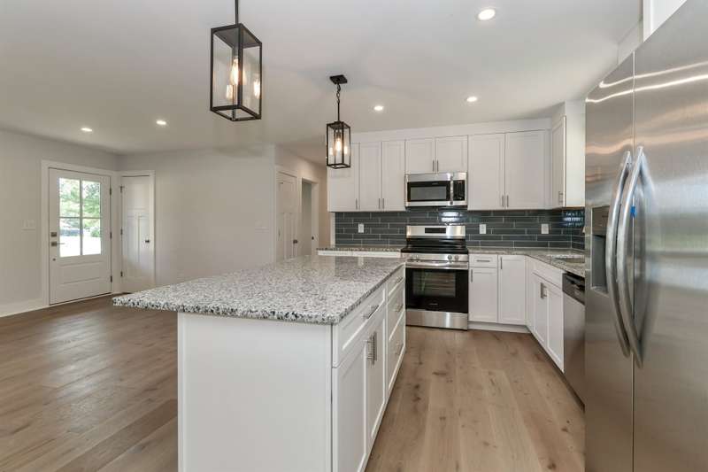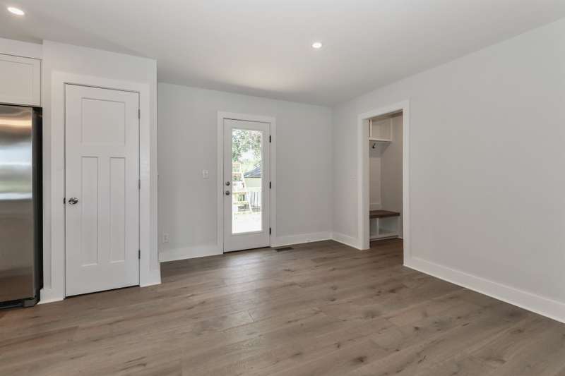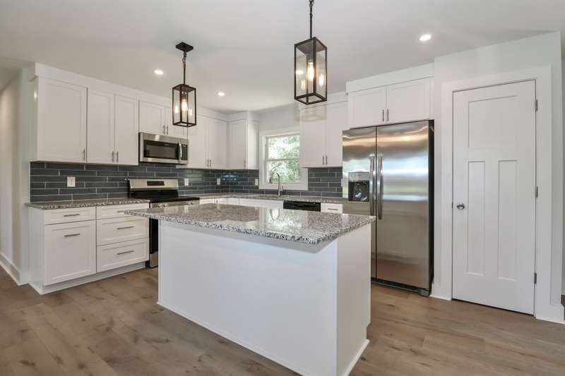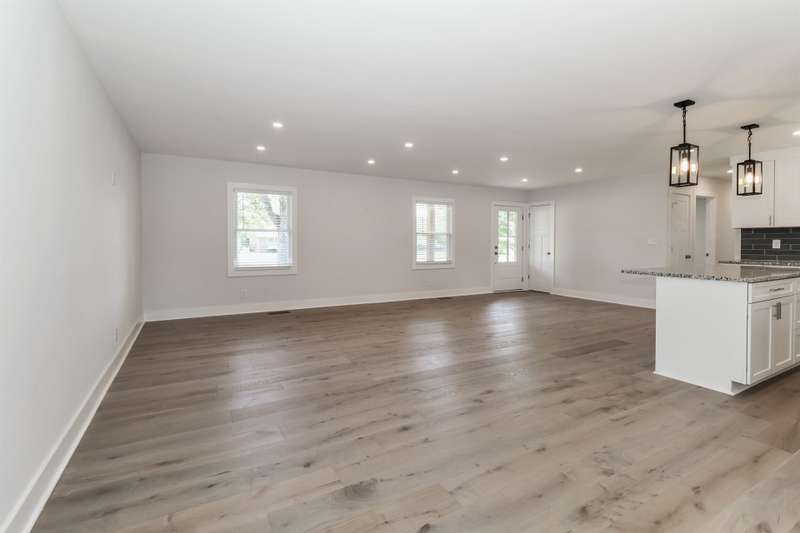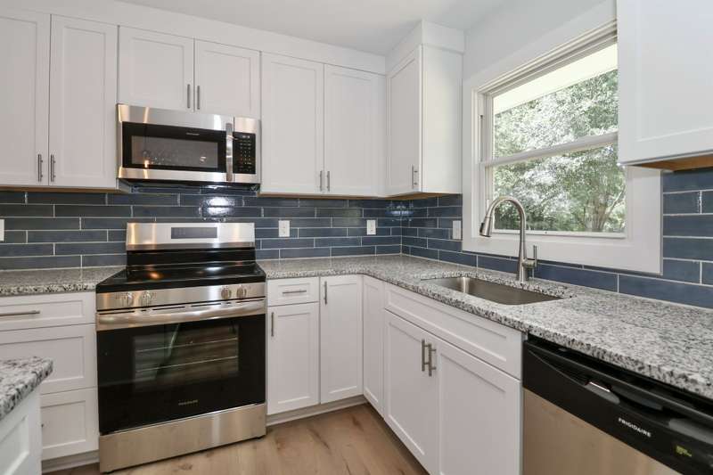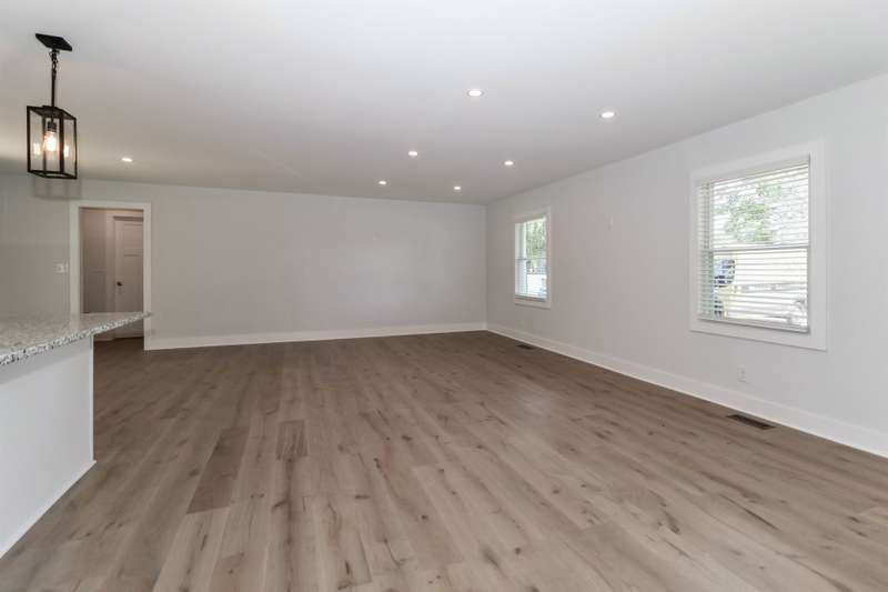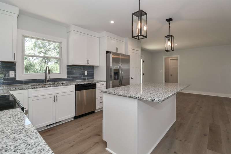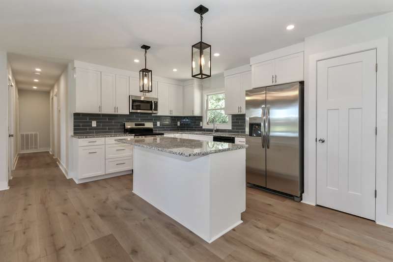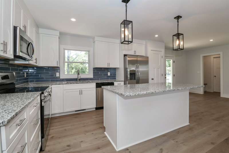 Don't miss this fully renovated brick ranch with carport and detached garage. The open floor plan features wide-plank engineered hardwood flooring, fresh paint, and recessed lighting throughout. The kitchen offers new cabinets, granite countertops, subway tile backsplash, new stainless appliances, pantry, and a large island perfect for seating. Both bathrooms include custom tile and modern fixtures, with the primary bath showcasing a marble-top vanity and walk-in shower. Additional spaces include an isolated laundry room, and mud room with built-in drop zone. Outdoor living shines with a deck that includes outdoor string lights, large fenced yard, detached garage/workshop, large mature trees, and covered swing pavilion. The inviting front porch and carport have cedar accents, bluestone front porch, and a stunning blue ? light front door that adds welcoming curb appeal. The detached garage, swing pavilion, and house have new roofs with ridge vents and new gutters. The attic has fresh blown in insulation and the crawl space has new insulation and a newly installed vapor barrier. Move-in ready, this home offers the feel of new construction with the character of an established neighborhood.