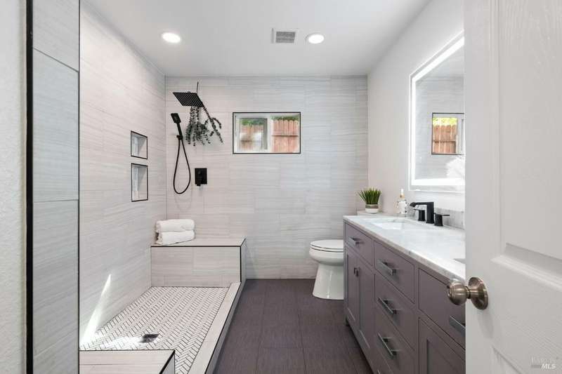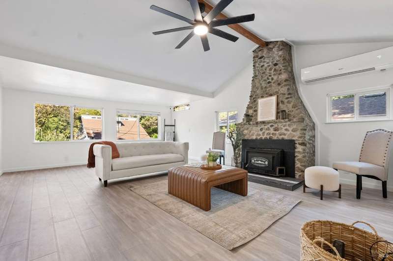 I am delighted to present this home in the heart of wine country, offering an exceptional blend of modern updates and convenient location. This home updated with new flooring throughout,enhancing its contemporary appeal.The newly remodeled high-end bathroom features dual sinks and a spacious walk-in shower with two shower heads,providing a luxurious experience. The kitchen is designed for both functionality and entertainment.Its thoughtful layout allows seamless interaction with guests in the living room and exterior entertaining area, making it ideal for gatherings.The master suite boasts a sliding glass door that opens directly to the outdoor area, blending indoor and outdoor living effortlessly. The property shines with an oversized tri-level deck, perfect for entertaining or simply relaxing in the sun.This deck is ideal for enjoying the sun's rays from morning until evening. Uniquely this home includes a one-car garage with plentiful additional parking available in front of the house. This property is located, just moments away from the vibrant downtown Healdsburg, the picturesque Russian River w/ Del Rio River access, and renowned restaurants and wineries.The neighborhood provides a warm, community feel, enhancing your overall living experience.Use 2756 Del Rio Wood in maps