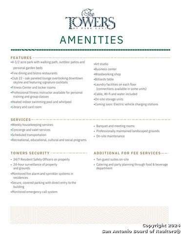 Highly desirable 2 bedroom, 2 bath "F" floor plan with outstanding 21st floor views. This residence offers outstanding vistas paired with an open floor plan, featuring elegant wood floors. The Towers on Park Lane is an Exclusive Luxury High Rise Co-op for adults 55 years and over. The Towers offers a lifestyle much like that of living in a Luxury Hotel. Upon arrival you are greeted by a valet who will park your car and take your personal items up to your residence. Numerous concierges are available to help with your every need. Located in the lobby is a beautiful white tablecloth restaurant and a darling bistro to grab a quick bite if you don't feel like cooking. Better yet- order room service and have your meal delivered! The building amenities are tremendous and feature a heated indoor pool and spa, locker rooms and a fitness center and that includes a variety of classes and work out equipment, a gorgeous 4 1/2 acre park with walking trails, outdoor patios and personal gardening beds, a library, card room, an astounding wood working shop, business center, CLUB 22 - an oak paneled lounge on the 22nd floor with large windows and balconies overlooking the downtown skyline, an art studio, billiards table, two laundry facilities on every floor for those residence that do not have W/D connections, on site storage units, ten guest suites on the second floor, EV charging stations, meeting and banquet rooms with catering services available thru the food & beverage department and above all 24/7 Resident Safety Officers! The many benefits provided in the monthly Co-op fee include weekly housekeeping, Wi-fi/ Cable TV (including Showtime and HBO)/ water and garbage, concierge and valet services, fitness instructor for personal training and group classes, scheduled transportation, recreational/ educational/ cultural and social programs, secured covered parking with direct entry to the building, 24 hour security and surveillance of grounds, monitored fire alarms and sprinkler system throughout building, monitored emergency call system in each residence. In addition to all that the Co-Op provides the residents have an active and close knit community offering many engaging social opportunities! The building is an extension of your personal living space and there is something special for everyone. The Co-op has a well-funded financial reserve and can boast they have never had a special assessment.