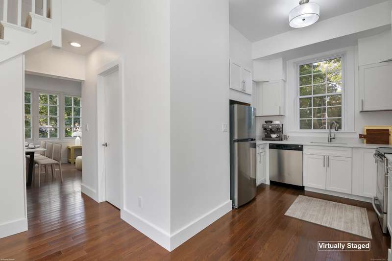 Minutes to downtown Greenwich, this charming cottage is located in a private association and has been fully renovated. Set at the end of its own private driveway, 58 Calhoun has an open modern plan allowing for incredible light. Flexible living space on main floor includes a Great Room, dining area and office/living room all opening to a contemporary kitchen equipped with professional appliances. There are two bedrooms, one and a half baths and a gorgeous yard featuring a lovely stone terrace with mature plantings. A unique opportunity with plenty of parking and a peaceful setting. New Mitsubishi Electric split systems for heat and AC