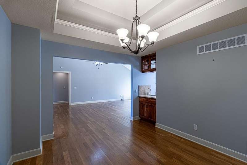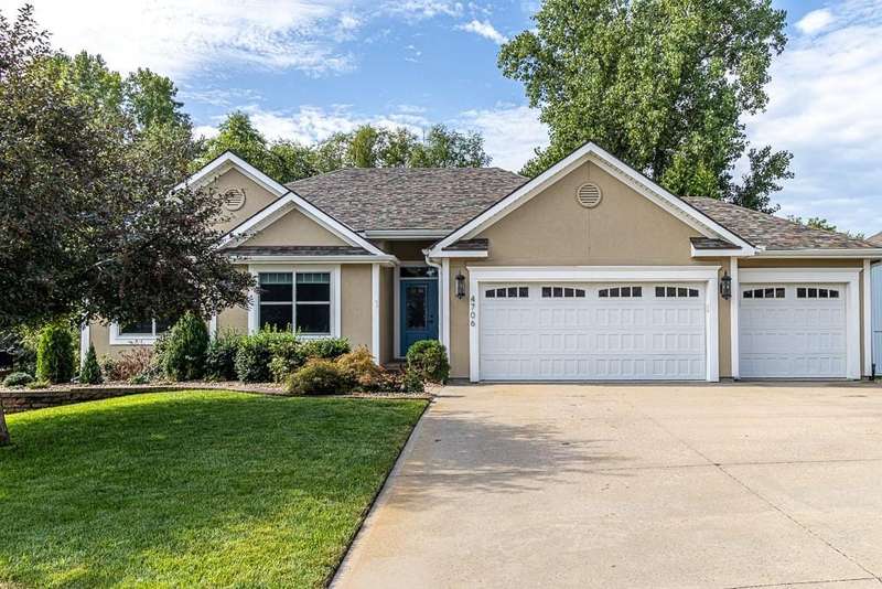 Lots to like with this two owner ranch style home in a popular subdivision. The front entry opens to a foyer with a coat closet and direct access to the large great room which is the focal point of the home with a vaulted ceiling, fan, gas fireplace, window blinds and hardwood flooring. The formal dining room has a lighted tray ceiling, attractive chandelier, and hardwood flooring. Additional informal dining is in the breakfast room which includes a wet bar and built-in desk. A patio door opens to the the outside deck with a great view of the beautiful back yard. The fully equipped kitchen has quartz counters, abundance of stained wood cabinets some with pullout drawers and all doors with soft close hinges, stainless appliances, and hardwood floor. The laundry room with tile floor includes a washer and dryer plus cabinets and a coat closet. The large 3 vehicle garage has door openers, and a special protective floor covering and lots of storage space. The home features three bedrooms starting with the primary which has a hardwood floor, tray ceiling, fan, custom blinds, newer Anderson windows, and a large walk-in closet beyond the primary bathroom. This private bathroom features quartz counters, double sinks, whirlpool tub, separate shower and tile floor. The 2nd full bath features a tub/shower combination, tile floor, and quartz vanity counter. Bedrooms 2 and 3 have wood floors, ceiling fans, newer Anderson Windows, and custom blinds. The walkout lower level has lots of windows, a half bath, workshop area and could easily be used for more bedrooms, or whatever the needs were. Outside is a large concrete patio area with a very private back yard. The entire yard has a sprinkler system plus an inground invisible dog fence. The roof is less than one year old. Gutter guards were recently added. On the roof are solar panels and they are generating power that results in very low electric costs. Oak Grove Elementary School, Bode Middle and Central High. Lots of extras.
