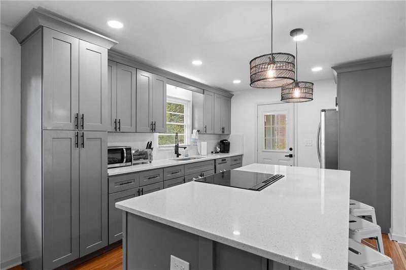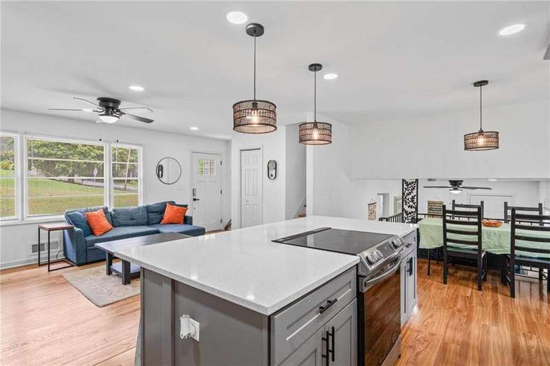 Renovated split level 3-bedroom, 2.5-bath home sited on a generous lot that offers privacy and outdoor living space. The light-filled open floor plan features hardwood flooring, contemporary finishes, and a chef's kitchen, quartz counters, and ample storage. There are two living areas. The primary suite includes a luxurious ensuite bath with a large walk in shower. Two additional bedrooms upstairs with one full bath and half bath ensuite. Outside, the large, yard provides room for play, gardening or pool.