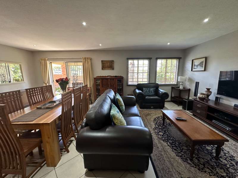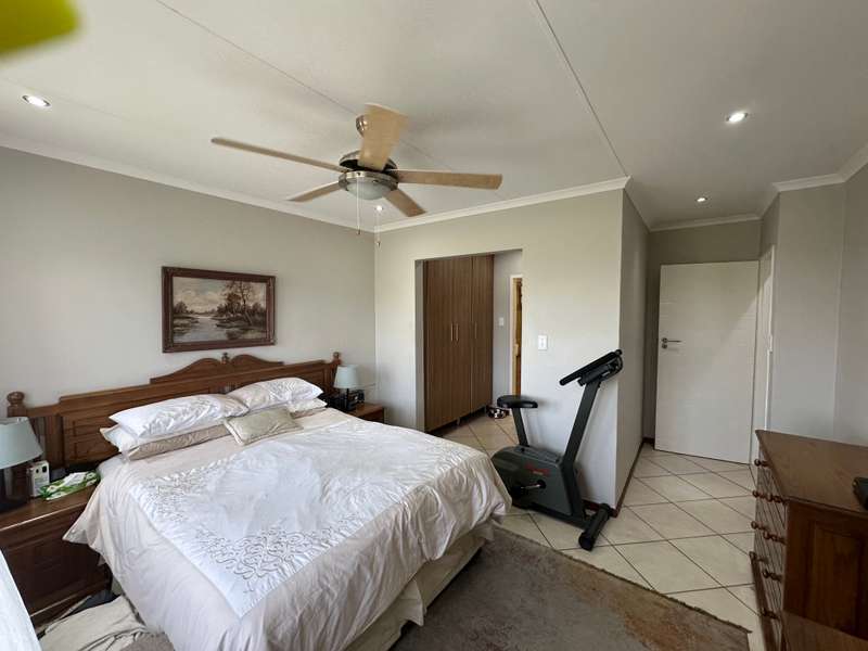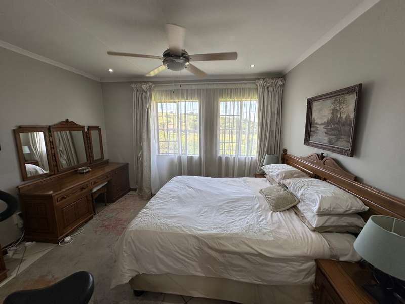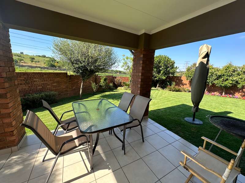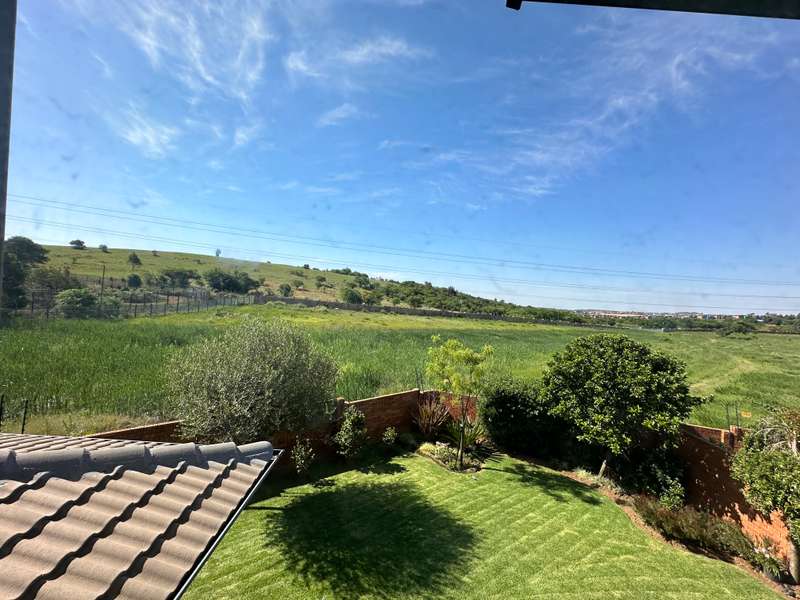 LOOKING FOR A VIEW WITH PEACEFUL SURROUNDINGS AND QUALITY INVERTERS TO BEAT THE LOAD-SHEDDING? LOOK NO FURTHER! What makes this property unique is the long driveway in front of your property's double lock-up automated garages, that accommodate 6 guest parkings. As you enter this beautiful open-plan living and dining room going out onto a large patio and stunning green landscaped garden... you know this is an entertainers dream to host family and friends, with a gourmet kitchen that has ample cupboards, work-area, machines space, linked to garages where you'll find A Mecer 5KW Inverter 2400PWM Controller with 8 12V Deep Cycle AGM Batteries. This unit includes 4 Bedrooms of which one Bedroom and guest toilet is downstairs, that can be used for Study or Guest bedroom and upstairs 3 large rooms with a view and 2 modern bathrooms. This is the perfect long term investment and hard to come by, ready to move in. Make an appointment now to view, remember when you snooze you loose.... High-security Estate with Clubhouse ,tennis, Pool and Park. Private and walled with electric fence!