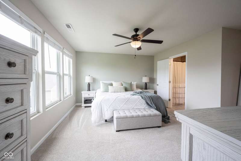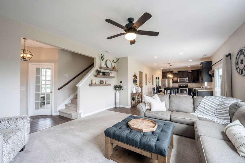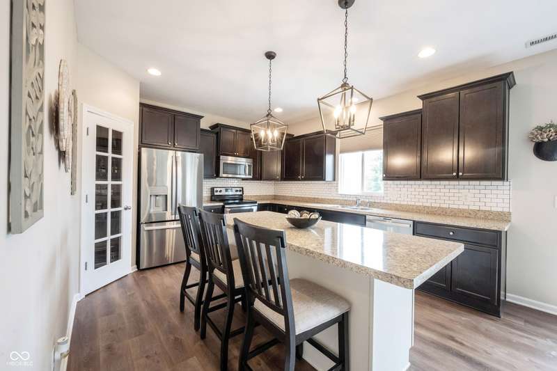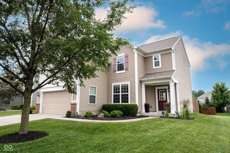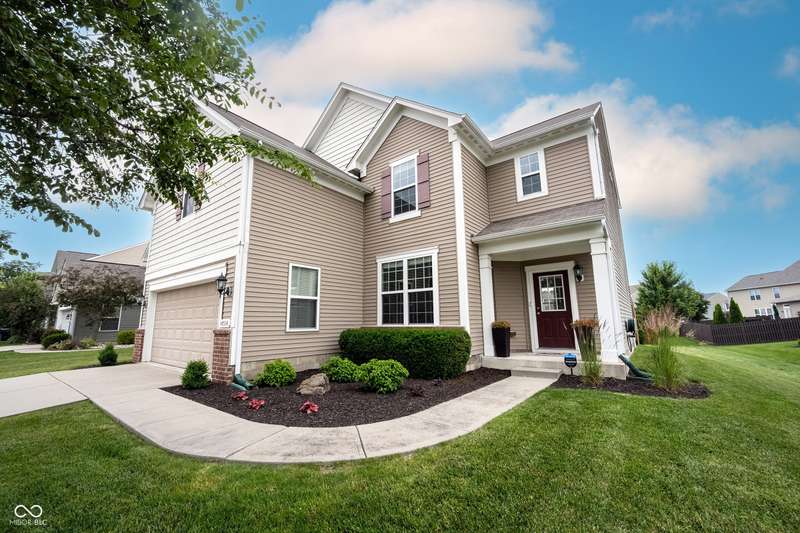 Welcome home to Avalon of Fishers! This one checks ALL the boxes! Remarkably maintained home, adding all the RIGHT updates including New Luxury Vinyl Plank flooring running seamlessly throughout the main, New Carpet and Paint! Greeted by a great curb appeal featuring a charming covered front porch, and enhanced landscaping! Open the door to 4 bedrooms, 3 baths and plenty of living space! Home office located just off the foyer, tucked away for privacy. Greatroom with plenty of space, a wall of windows offering tons of natural light and views of your backyard! Open to the dining area and kitchen, perfect set up for entertaining! Kitchen with richly stained 42"espresso finished cabinets, tons of counter space, island for prep and seating, stainless steel appliances (all included!), a Chef's dream! Large Pantry completes this space. Family friendly foyer off the garage. Upstairs: 4 spacious bedrooms, and a large bonus room, and conveniently located upstairs laundry! Owner's suite features vaulted ceilings, large WIC, and pristine ensuite bath! Features soaking tub/shower, comfort height vanity with dual sinks. Upgraded lighting and fixtures! 3 additional spacious bedrooms feature great closet space, close to 2nd full bath also with comfort height vanity. Step outside to your backyard that will surely be the host of many gatherings! Extended concrete patio, with plenty of room for grilling and chilling this Summer! Spacious finished 2 car garage with plenty of room for storage too! Enjoy all the neighborhood has to offer this summer w/2 Pools, Park, Playground, Basketball, Tennis, and Volleyball! All within walking distance to AWARD winning HSE Schools!