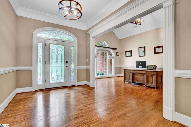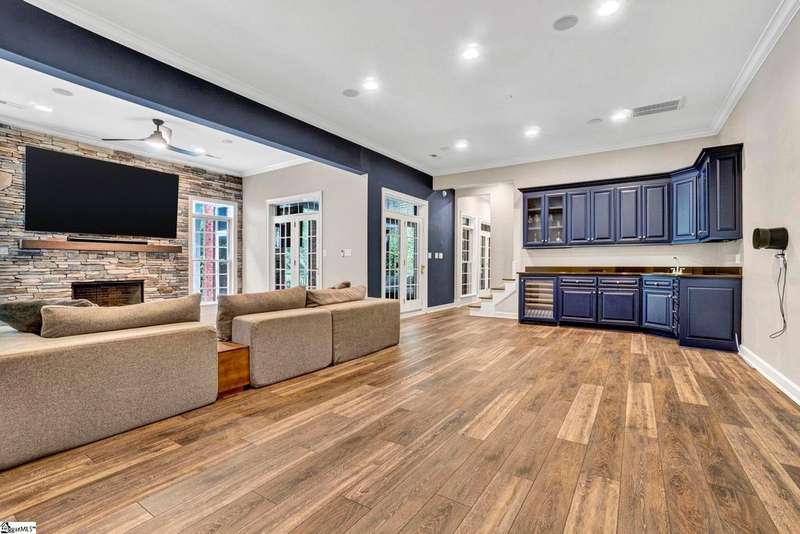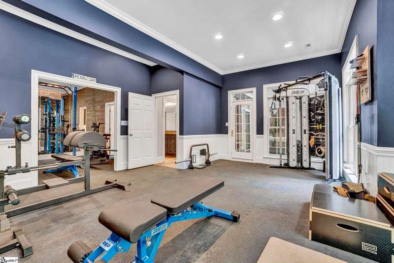 An Exceptional Opportunity in Carolina Country Club! Welcome to one of the most spectacular homes to hit the market in the prestigious Carolina Country Club?a gated community with 24/7/365 security and unmatched privacy. From the moment you arrive, the pristine curb appeal and meticulously landscaped yard set the tone for what lies within. At night, the uplighting transforms the property into a breathtaking retreat, creating quite the ambiance. Built by one of the area's premier custom builders, this home exudes quality craftsmanship throughout. Step inside to appreciate the soaring ceilings, extensive crown molding, high-end appliances, and exquisite custom built-ins?even in the closets! The library is a true showstopper, featuring rich wood detailing, built-in shelving and direct access to a totally private deck overlooking the pool. The grand foyer opens to an spacious room that can double as a formal dining room or home office and it flows naturally into the heart of the home?a chef's dream kitchen and adjoining keeping room/great room with a striking stacked stone gas fireplace. The kitchen features a Wolf gas cooktop, commercial-grade vent hood with warming lights, and a spacious butler's pantry with wet bar?perfect for entertaining. The main floor master suite offers a serene retreat with a large walk-in closet, custom built-ins, and a luxurious bath with dual vanities, a large tiled shower, and wall-mounted TV that conveys. Two additional bedrooms share a Jack-and-Jill bath with new LVP flooring, while the oversized laundry room boasts granite countertops, ample cabinetry, and a utility sink. Downstairs, the bright and spacious basement with 10' ceilings has been completely renovated and is ideal for a guest or in-law suite, recreation space or entertaining family and friends, complete with a large den and extended wet bar, gas fireplace with custom stacked stone wall, and access to the screened porch and pool area. The massive wall-mounted television and custom surround sound make for the perfect movie night and they can convey. You'll also find a full bathroom, and a multi-purpose room (currently used as a bedroom). The home gym is like no other and has been thoughtfully designed to feature every amenity you may need for the perfect home workout. (The equipment can convey). Outdoor living is unmatched, with a private pool, screened porch, and multiple entertaining spaces designed to impress. Take a dip in the salt-water pool or relax in the jetted seats built-into the pool. The 3-car garage includes built-ins and rubber flooring, and there's exceptional attic storage, invisible dog fencing, 2 Nest thermostats, and a pool heater. Recent Updates & Features Include: Conversion to salt-water pool with robot vacuum, fresh paint throughout, updated all lighting and ceiling fans, New LVP in the bedrooms and basement (no carpet), new hardware, and new HVAC in 2023. Don't miss this rare opportunity to own a home that combines timeless elegance, modern luxury, and resort-style living in one of the Upstate's most exclusive communities.