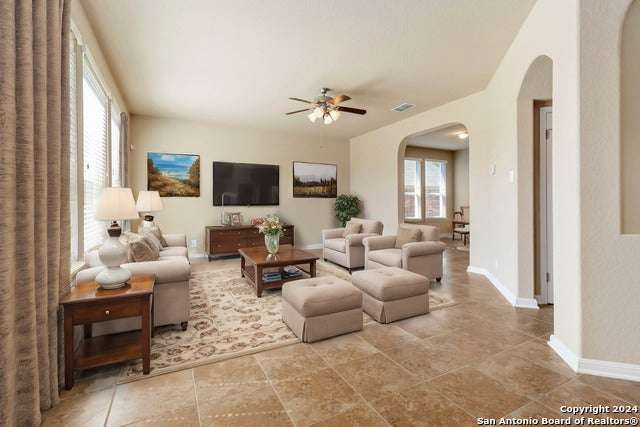 ***Sellers are willing to contribute up to $5,000.00 upgrades or buyers closing cost.***Welcome home! Come discover this well maintained two-story home, located in the sought-after Turning Stone subdivision! This home offers a semi-open layout perfect for entertaining with a large open kitchen, formal dining room, and a first floor flex space. Upstairs, you will be welcomed by an open concept second living area with plenty of space. Down the hallway are 3 bedrooms and a spacious primary suite featuring a luxurious en suite bathroom, Numerous updates have been made throughout to include a new roof, water heater, countertops, mirrors, fresh carpet, a sprinkler system, and epoxy garage floors. Outside you will be greeted by the large backyard with a covered patio to enjoy the fall evenings. And be sure to take advantage of the neighborhood's amenities just a few houses away, including a pool, sports courts, and play areas. All of this while being conveniently located near I-35, with easy access to military bases, shopping, and dining and so much more.