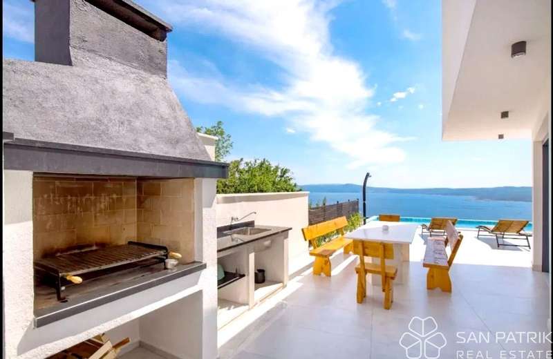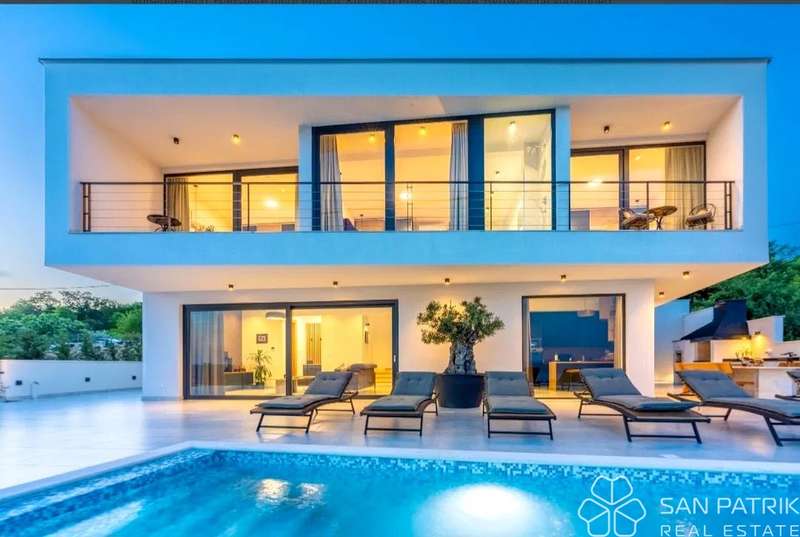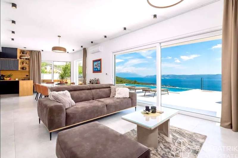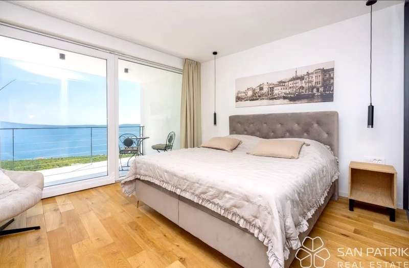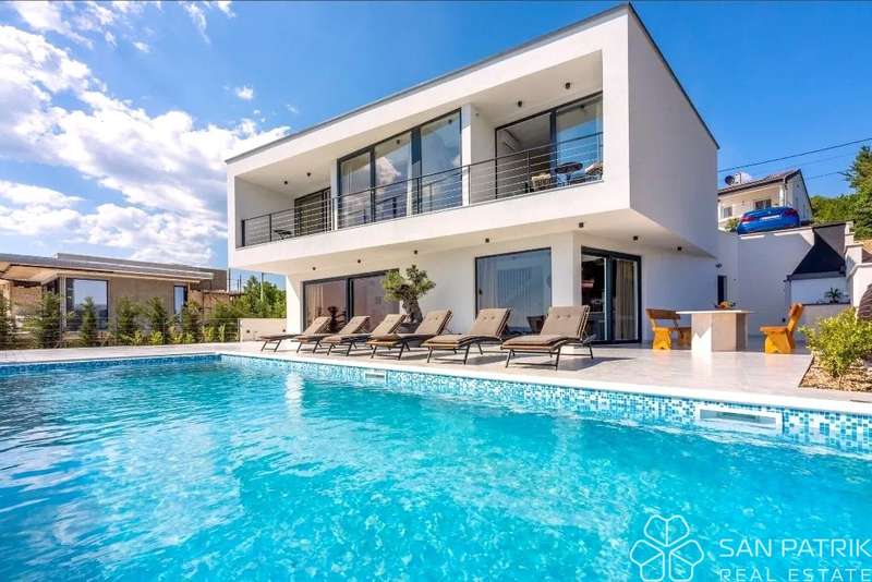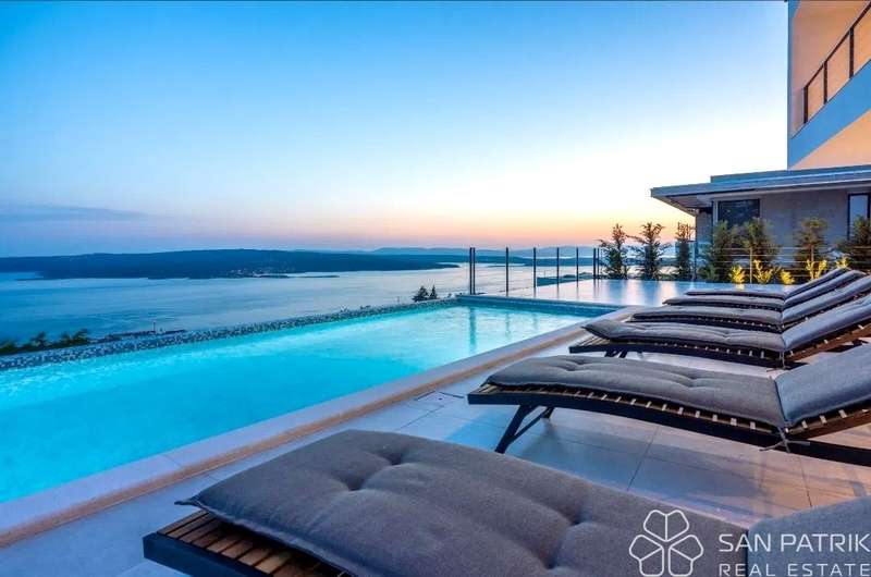 In an attractive location above Crikvenica, just 2 km from the sea, this beautiful modern villa is situated with a unique panoramic view of the island of Krk and the Kvarner Bay. This property offers the perfect blend of luxury, comfort, and functionality, making it an ideal home for living or a profitable investment in tourist rentals.