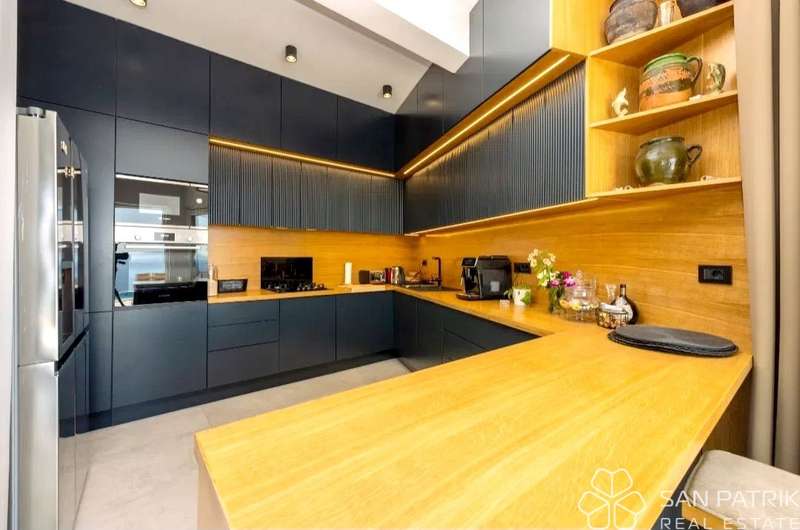 The villa, with a surface area of 200 m2, is built to the highest standards, emphasizing open space and a strong connection with nature. The spacious living room, dining area, and kitchen are fully connected to the terrace, sun deck, and swimming pool, creating a perfect ambiance for enjoying the Mediterranean lifestyle. The outdoor area is complemented by a barbecue zone, ideal for relaxation and gatherings with family and friends.