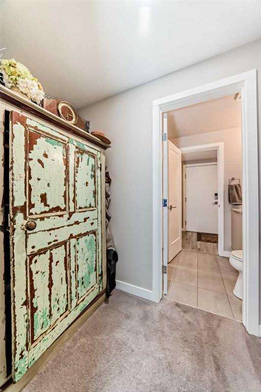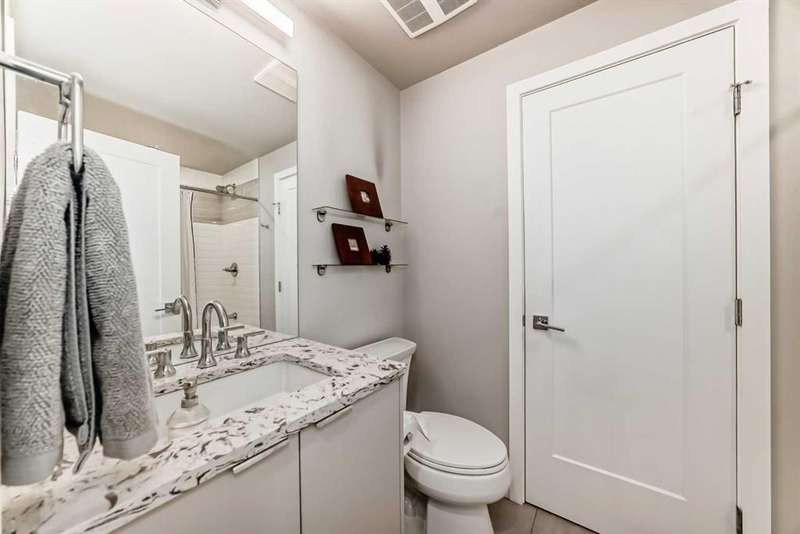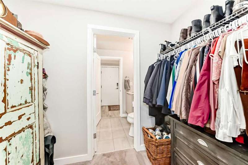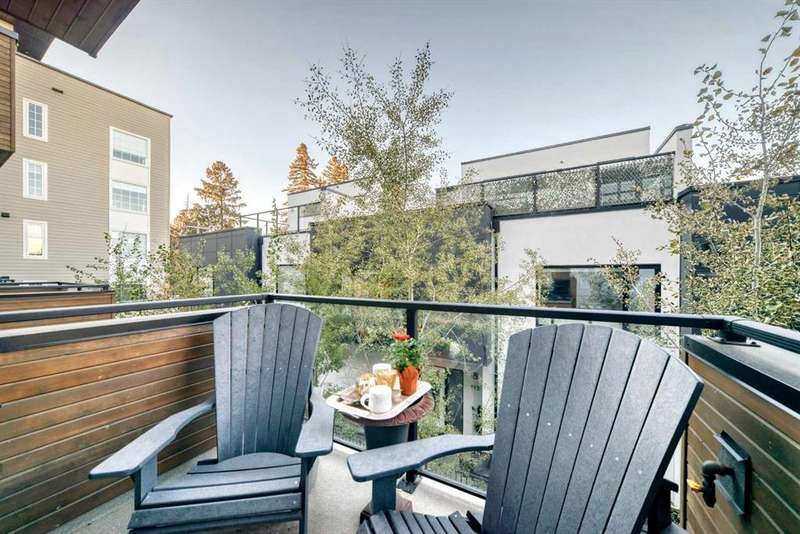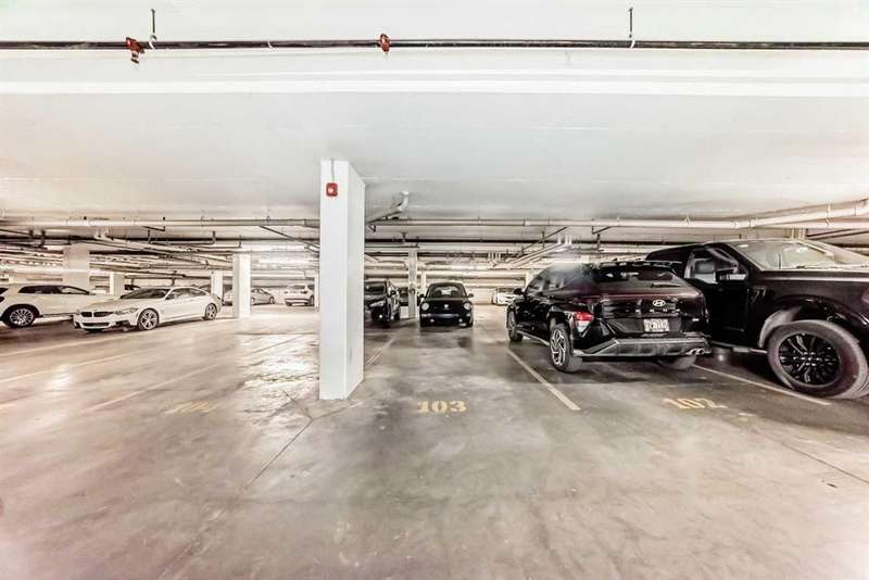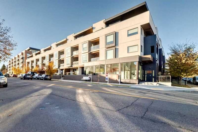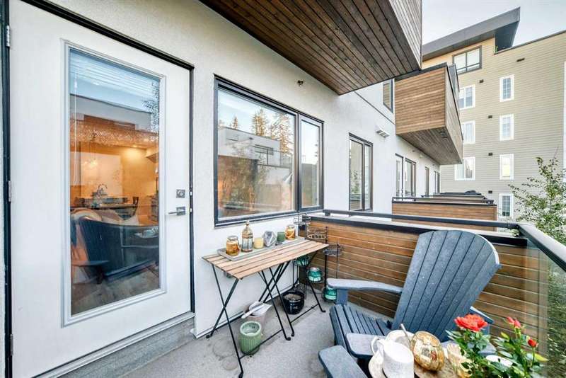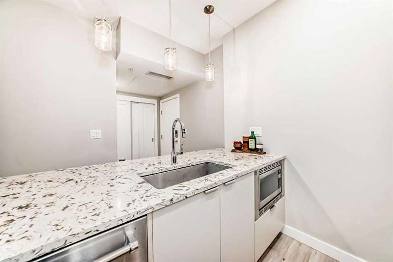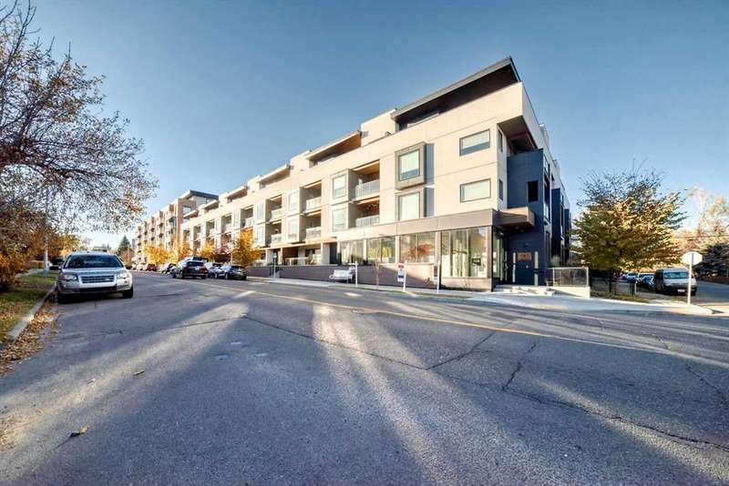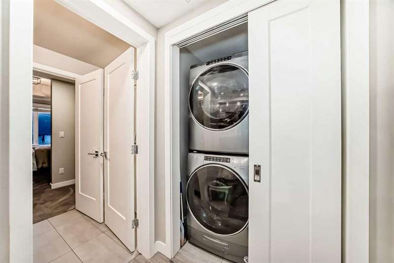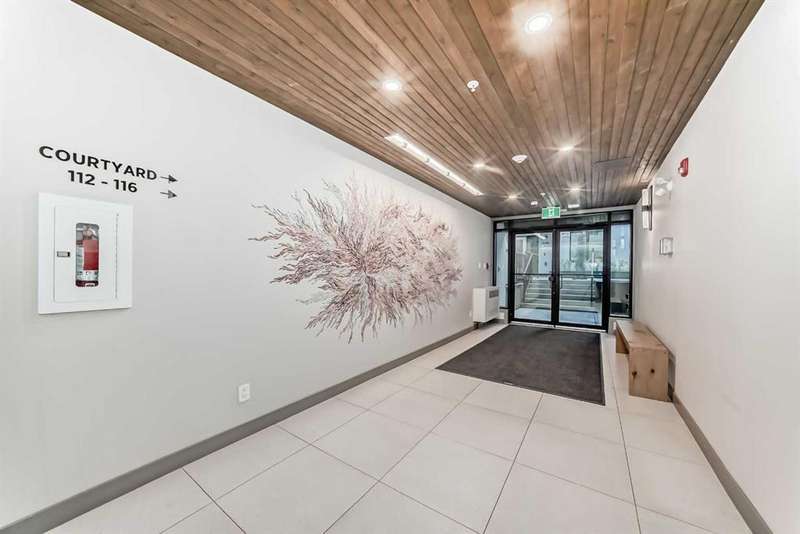 Unbelievable value! Welcome to COCO, your pet-friendly slice of accessible luxury in the vibrant heart of Marda Loop! This stunning one-bedroom, one-bath condo feels like new and is packed with thoughtful upgrades that make everyday living a breeze. Step inside this 538sq ft third floor gem and discover a bright, open space with 9-foot ceilings, gorgeous laminate flooring, and a peaceful vibe that instantly feels like home. The modern kitchen is a showstopper—perfect for foodies or casual cooks alike. Whip up meals with ease using the stainless steel gas stove with convection oven, spacious fridge with bottom freezer, and sleek quartz countertops accented by a chic chevron-patterned backsplash. Full-height cabinets with soft-close features and a built-in dining table make this space as functional as it is stylish. Unwind in the cozy bedroom, complete with plush carpeting and room for a queen-sized bed. The walk-in closet flows seamlessly into the gleaming 4-piece bathroom, featuring ceramic tile, quartz counters, and a tiled tub/shower combo. A full-size washer and dryer are included, keeping chores simple and convenient. Step outside to your private balcony, a serene retreat overlooking a lush, tree-filled courtyard—perfect for morning coffee or evening barbecues with the handy gas line. Despite being steps from Marda Loop’s bustling shops and restaurants, this unit feels like a quiet oasis. The COCO elevates condo living with fantastic amenities: stay cool with central air conditioning, park effortlessly in your titled, heated underground spot (with underground visitor parking available too), and store your gear in a secure locker or bike room. Got a furry friend? The indoor dog wash station and nearby parks make this a pet lover’s paradise. Need space for guests? Rent the building’s guest suite instead of paying for an extra bedroom you rarely use! Stay active in the private yoga/workout flex space, and enjoy the convenience of a water bottle filling station. With fob-access entry, you’ll feel safe and secure in this tight-knit community. Plus, low condo fees cover heat, water, A/C, and more! Living in Marda Loop is a lifestyle like no other. With over 190 shops, restaurants, and services just a short stroll away, you’re at the heart of Southwest Calgary’s walkable, vibrant scene. Transit is nearby, and downtown is easily accessible. Whether you’re grabbing coffee, dining out, or exploring local boutiques, everything you need is at your doorstep. Priced to sell and move-in ready, this condo is your chance to own a piece of Marda Loop magic. Come see it for yourself at the open house or book a private tour today!