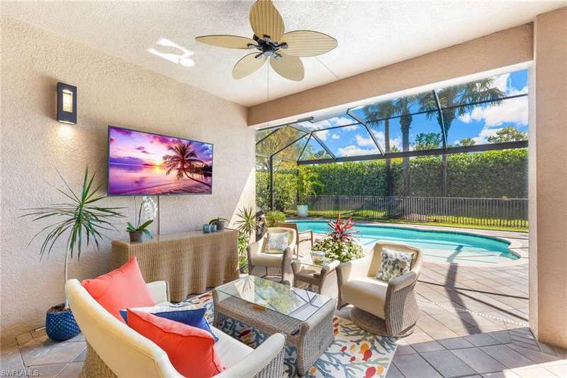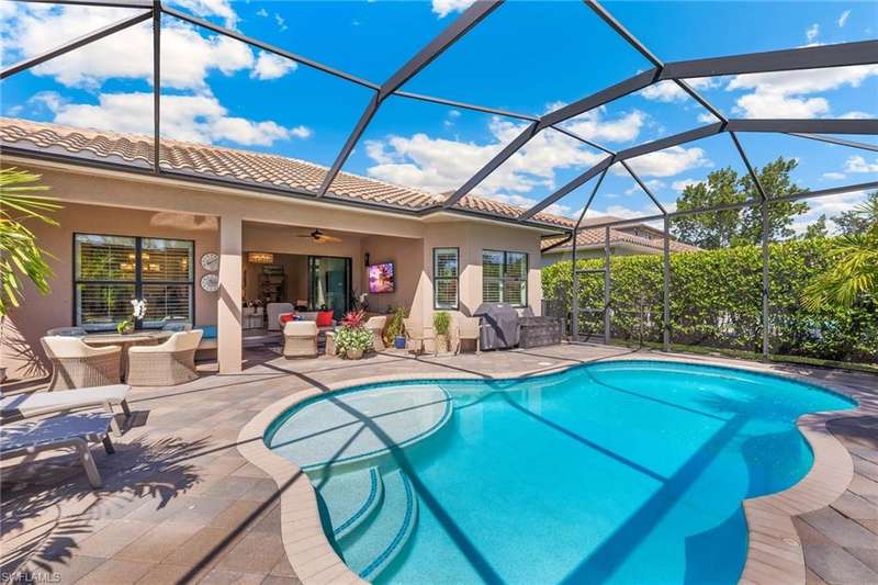 Welcome to your MOVE-IN ready dream home, nestled in the highly sought-after community of Stonecreek. This stunning residence offers a perfect blend of luxury, comfort, and modern living, offered TURNKEY and ready for immediate enjoyment. Professionally decorated, this home boasts 3 bedrooms, den, 3 bathrooms, and 3-car garage with epoxy flooring, providing ample space and comfort for family and guests. The heart of the home features a chef-inspired kitchen complete with upgraded stainless-steel appliances, quartz countertops, and generous counter space, perfect for entertaining. Enjoy an open-concept living area that flows seamlessly. Step outside to your private backyard retreat, where you can relax by the pool featuring a panoramic screen cage, host barbecues, or simply enjoy the serene environment. The fenced yard offers perfect additional outdoor space. Throughout this beautiful home are abundant embellishments, including a FULL-HOUSE GENERATOR, plantation shutters, designer l