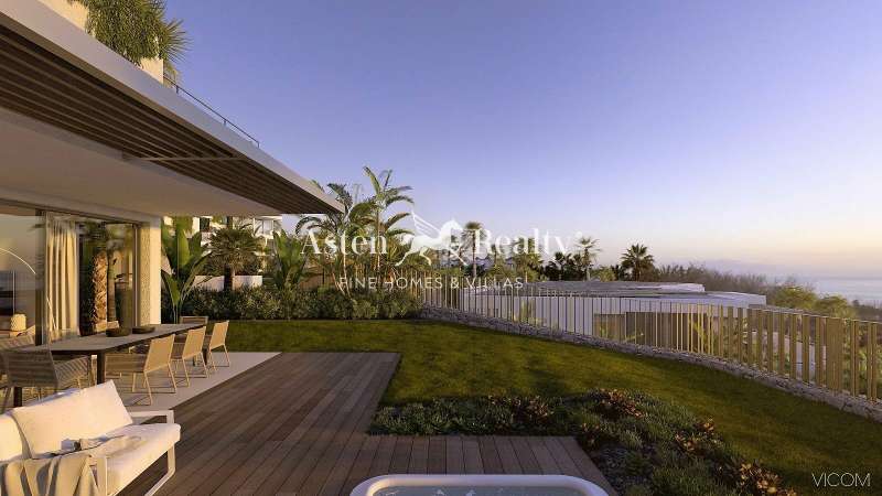 Los Jardines de Abama is a unique new development, located in the south of Tenerife, which is being developed for customers with exclusive requirements and unique expectations, who want to enjoy a home from home feeling, while on holiday, without missing out on a complete, lavish hotel service. The new project Los Jardines de Abama is associated to the luxurious 5*-Abama Resort, with a vision to offer customers the high-quality all-round service of a luxury 5*-hotel resort in their own home. The duplex with 3 bedrooms and their own garden are distributed on the ground and first floor. All of which are equipped with a first-class modern kitchen, a living-dining room flooded with natural light, with large windows leading to the exquisite terrace and three elegant bedrooms with en suite bathrooms. All the apartments in this new development are designed by an interior decorator, completely furnished with attention to every detail and handed over turn-key and move in ready. The west-facing new property development offers spectacular views over the award-winning Abama golf course, the Atlantic Ocean and is perfectly integrated into the natural surrounding landscape, one of Tenerife’s most exclusive areas. With a first-class, quality construction, overlooking the expansive tropical gardens and several swimming pools, this new development, offers an oasis of peace and tranquility in an uppermost luxury resort. Prices start on €1,333,000, depending on the size and location.