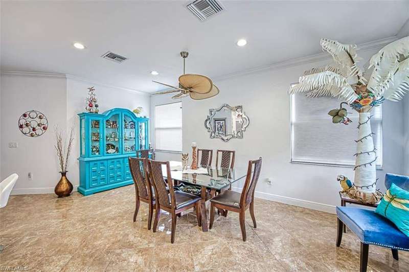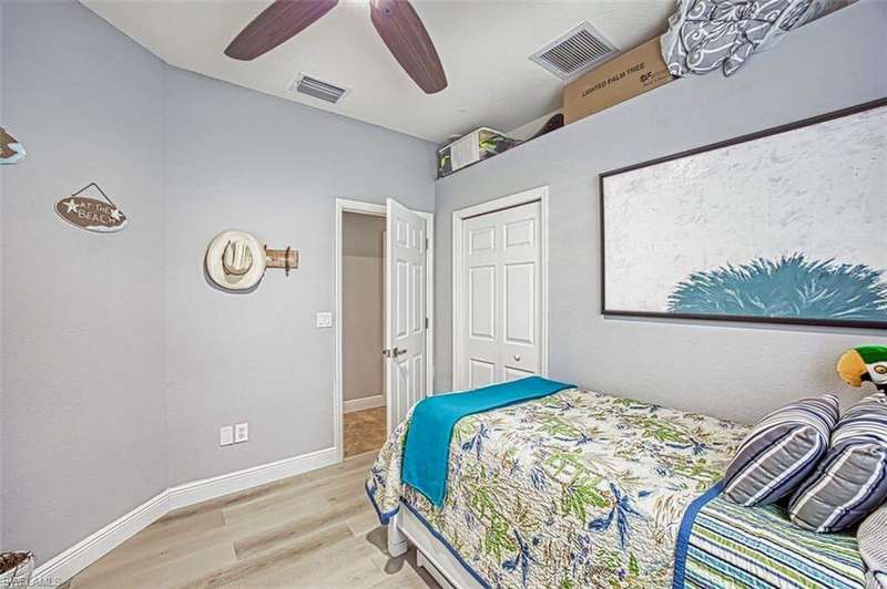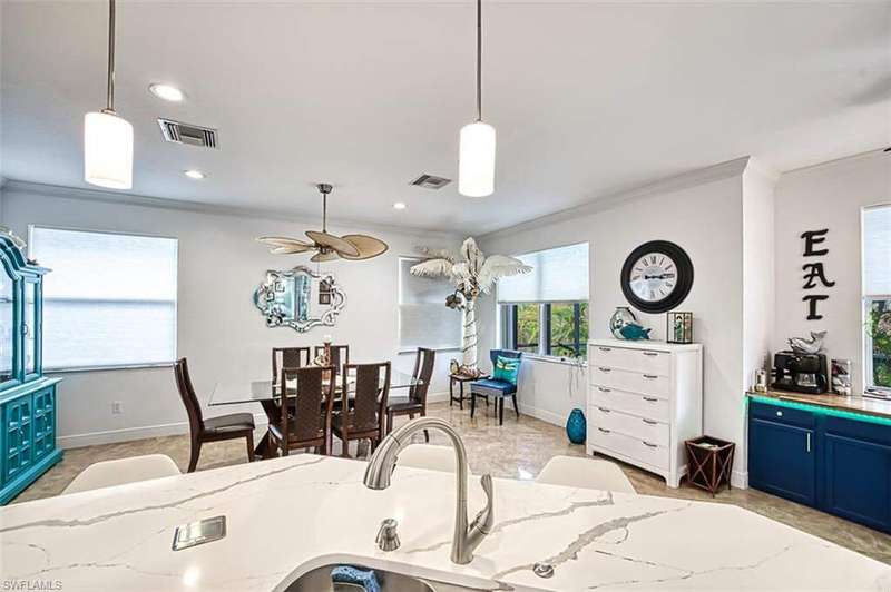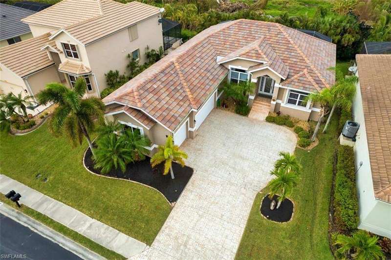 SELLERS ARE READY TO MOVE. BRING ALL OFFERS. Welcome to your dream home in the small community of Southwind Preserve! This stunning single family home boasts 3 bedrooms, , + office 2 bathrooms, and a spacious 3 CAR GARAGE. The in-ground salt pool with SUN SHELF is perfect for relaxing on hot summer days, while the office provides a quiet space to work from home. The modern kitchen features stainless steel appliances, quartz countertops, and a built-in coffee/wine station, making it a chef's paradise. The tile flooring adds a touch of elegance and is easy to maintain. Recently added an electric fireplace with a built in TV area above to add to the warmth of the home. With a new roof and close proximity to Sanibel, Captiva, and Fort Myers beaches, as well as the international airport and historic downtown area, this home offers the perfect blend of luxury and convenience. Don't miss out on the opportunity to make this your forever home in paradise! Accordian Storm Shutters for added peace of mind.