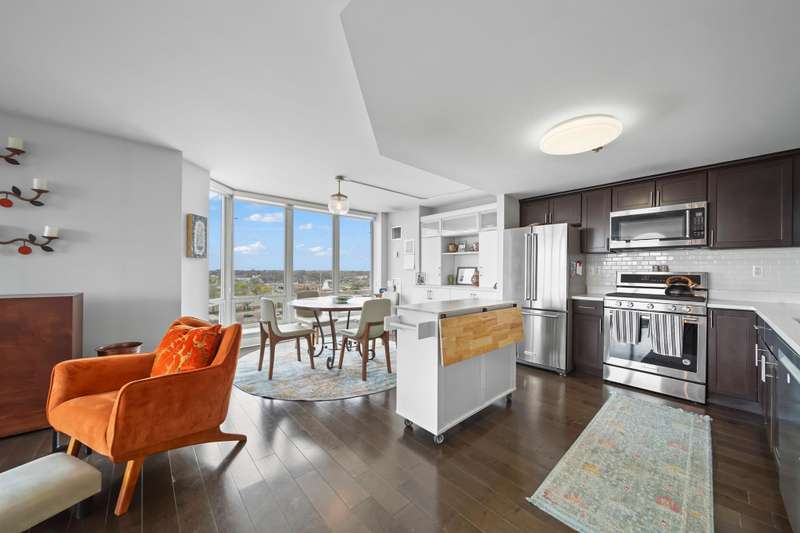 Downtown Detroit is set for another explosive makeover as the Riverfront continues to be transformed into one of the Countries most beautiful waterways. Located perfectly between Belle Isle and Downtown, Harbortown is a gated community comprised of three condo buildings and a variety of townhomes. This neighborhood features 24/7 security, assigned parking, pools, fitness centers, a beautiful pond, tennis courts, private marina, walking paths, and direct riverfront access! This is not just a place to live, THIS is a LIFESTYLE! Perched on the 10th floor of the 15 story tall Great Lakes Tower, sits Unit 1003. This 2 bedroom, 2 bathroom 1,214 square foot corner unit features sweeping views from Canada and the Detroit River, all the way across Downtown Detroit and even directly North over Martin Luther King High School. With only one neighbor, this condo will provide you with a sanctuary of peace. The open concept living area features floor to ceiling windows, hardwood floors, spacious dining room area, and built ins. The updated kitchen features dark wood shaker style cabinets, stone counters, and stainless steel appliances. The current kitchen island is excluded from the sale but gives you the perfect view of what could be. The first bedroom currently acts as the guest room, play room for the grandkids, and office. With double doors, it acts as an extension of the entry way, giving the impression that the unit stretches out right through the windows. The spacious main bathroom has lots of counter space and brand new shower. The primary bedroom has tons of space for your largest bedroom set and then some. Double closets lead to the primary ensuite bathroom with a large vanity and tile shower. The HOA includes water, gas, waste removal, security, pools, tennis courts, exercise room, all common area maintenance inside and outside of the building and parking garage.