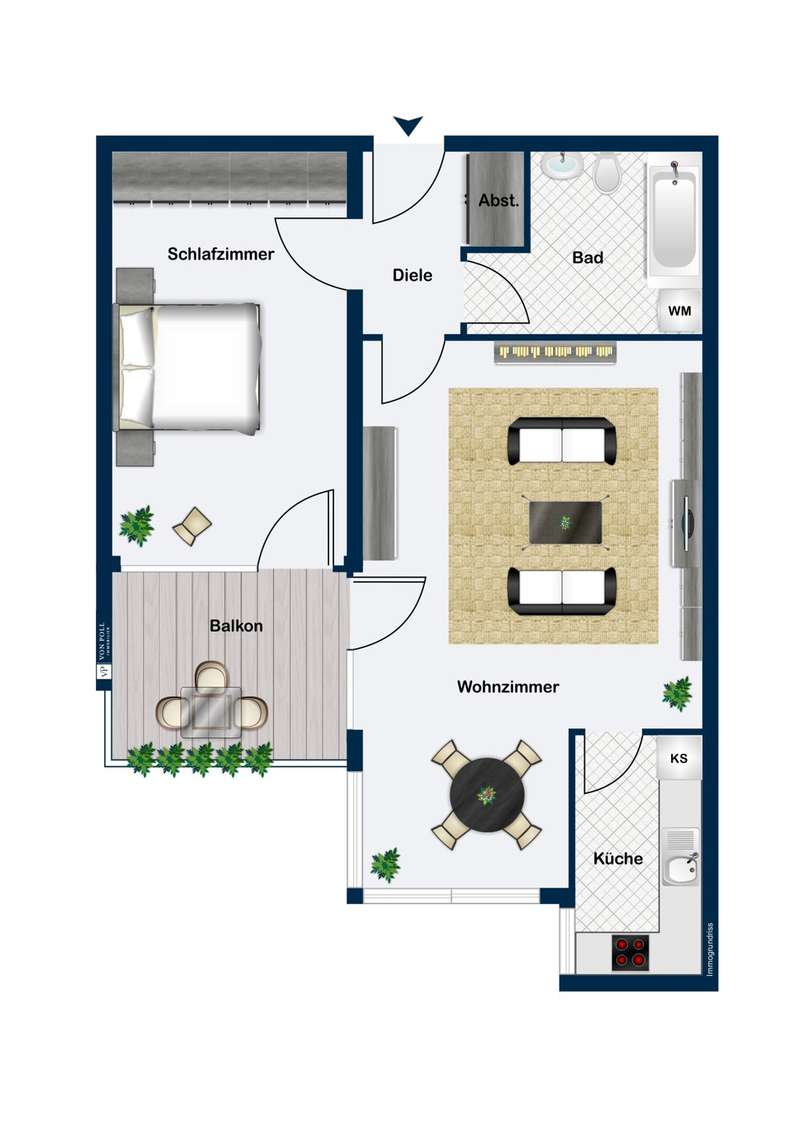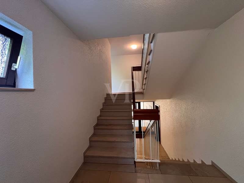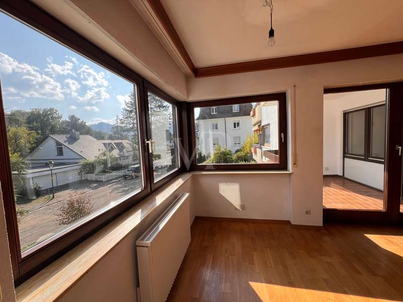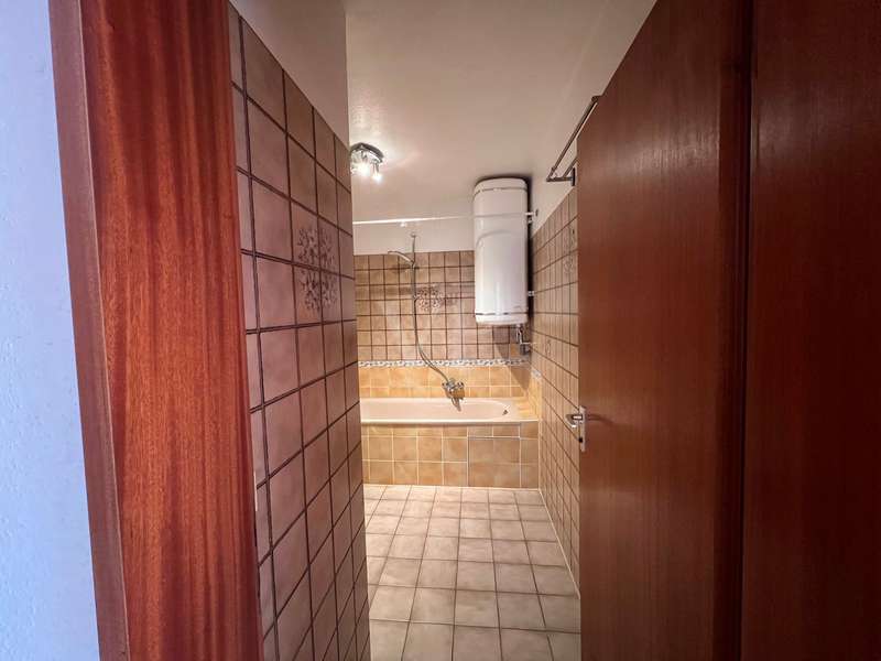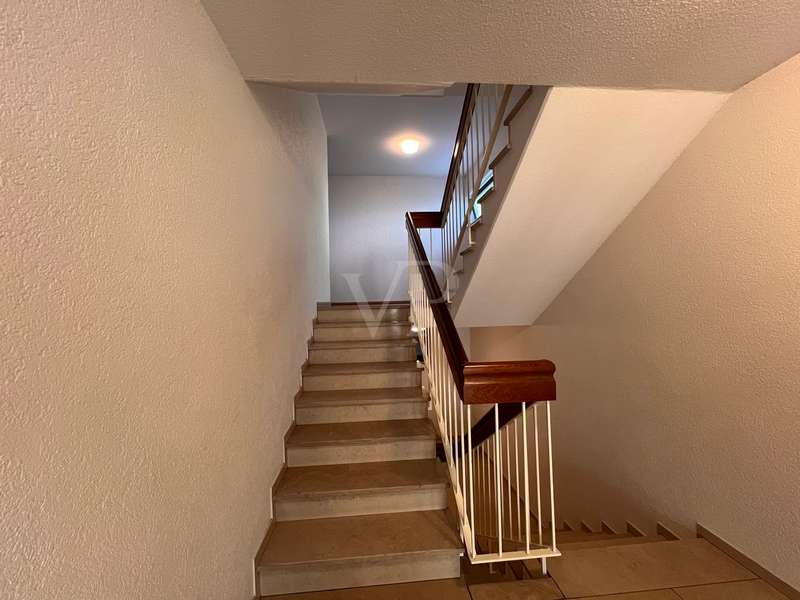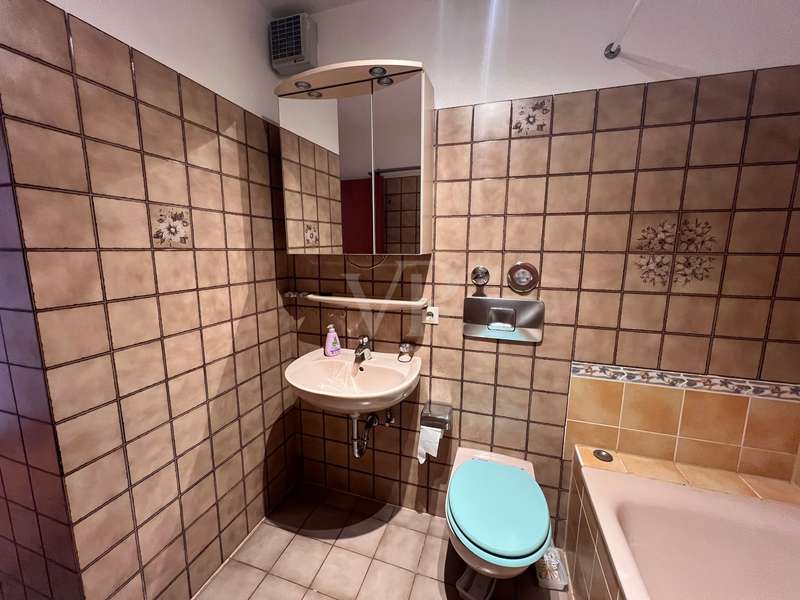 This bright two-room apartment is located in a very good and quiet location close to the city center in an apartment building on the 1st floor. You enter the apartment and come into the entrance area with the possibility of setting up a checkroom. From the vestibule you go straight ahead into the living area, to the right into the bedroom and to the left is the bathroom. From the living area you can access the kitchen as well as the spacious balcony. You can also reach the balcony from the bedroom. The apartment is bright and sunny due to its east-south-west orientation. A large garden area for general use is easily accessible from the second floor. The apartment is equipped with parquet flooring and high-quality wooden windows with double glazing. A fitted kitchen is also available. The apartment has a large cellar and a spacious underground parking space. The house is in a very good and well-kept condition. There is a separate laundry and drying room for use. In the laundry room there are spaces and connections assigned to the apartment.