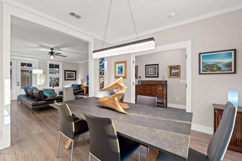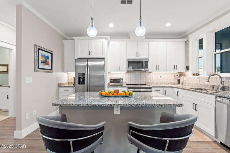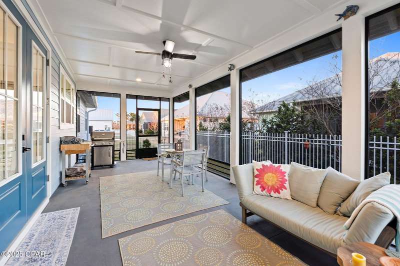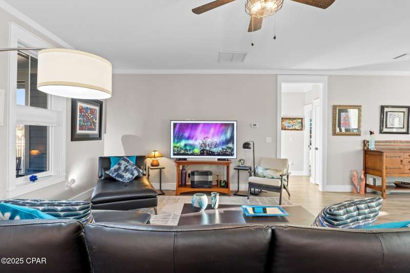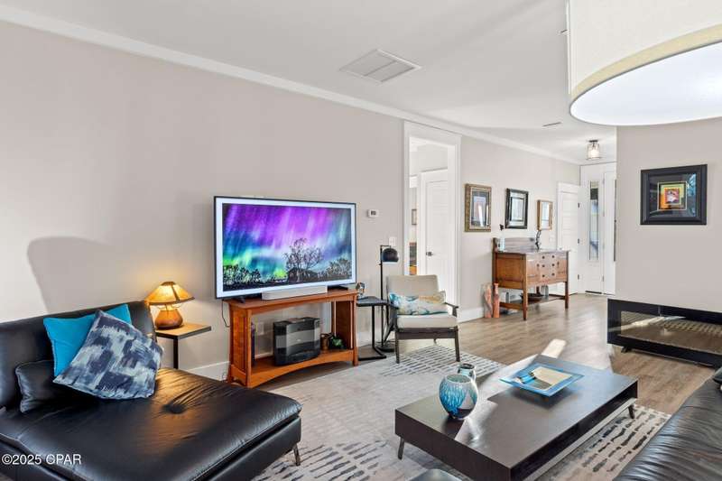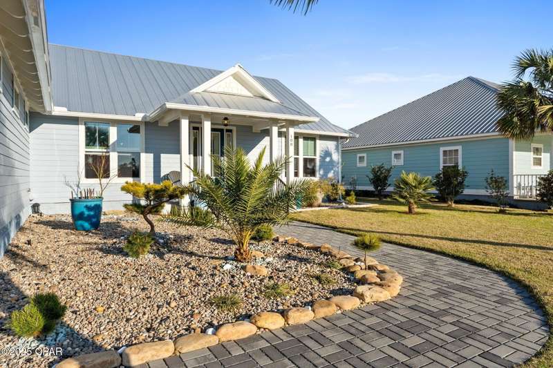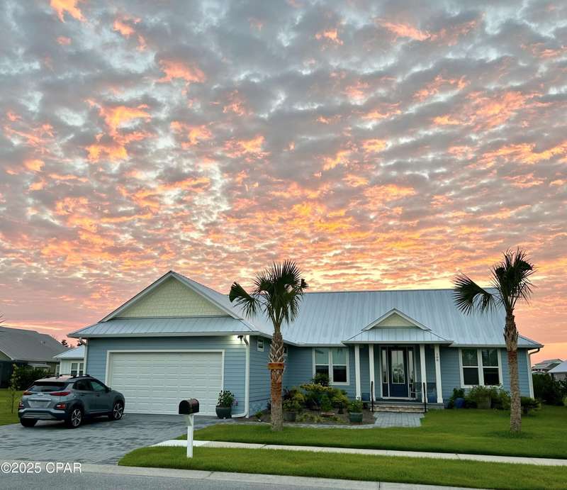 Immaculate one-owner, custom-built home offering exceptional quality, style, and comfort just minutes from the white-sand beaches of Mexico Beach. This 3-bedroom, 3-bath home features an open-concept floor plan with a spacious living area, perfect for entertaining. The kitchen is both beautiful and functional, featuring granite countertops, a custom tile backsplash, large island with additional storage, upgraded lighting, and enhanced electrical features. The primary suite includes a spa-like ensuite with double vanities, a soaking tub, tiled walk-in shower, and a large custom walk-in closet. Enjoy indoor-outdoor living with French doors leading to a screened-in porch ideal for relaxing in the coastal breeze. Numerous upgrades include oversized 2-car garage with EV charger, aluminum fencing with solar lighting, 6-inch gutters, dining room chandelier, and top-down bottom-up blinds. Professionally landscaped yard features hardscape rock accents, brick pavers, and mature trees, including Sylvester palms, Japanese pines, a tupelo tree, Japanese maple, and a Meyer lemon tree. Located in the desirable Casuna subdivision, residents enjoy access to a community pool, clubhouse, and well-maintained surroundings-all just a short golf cart ride from the beach, shops, and restaurants. This beautifully upgraded home is move-in ready and perfect for full-time living. You'll enjoy a peaceful neighborhood vibe, friendly neighbors, and a real sense of community. No short-term rentals allowed.