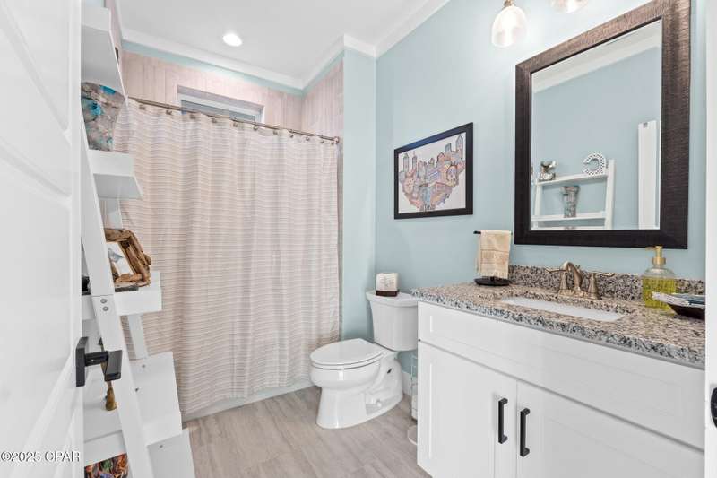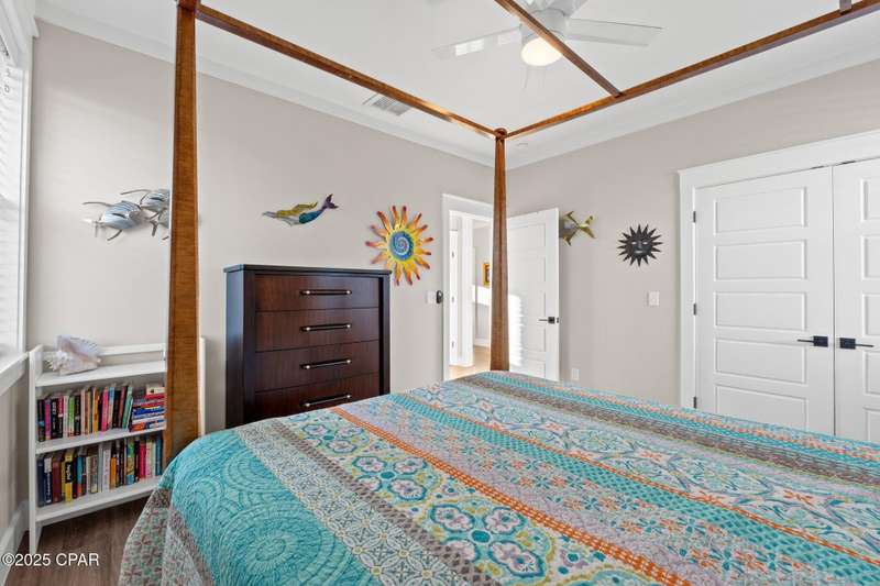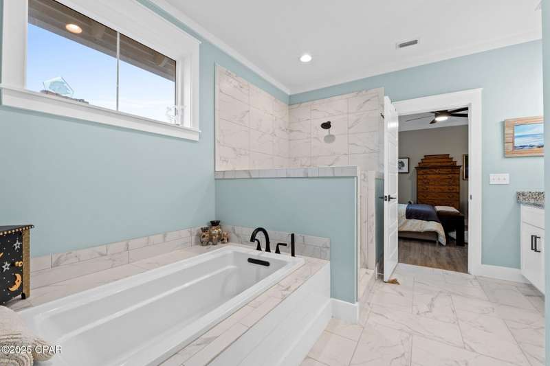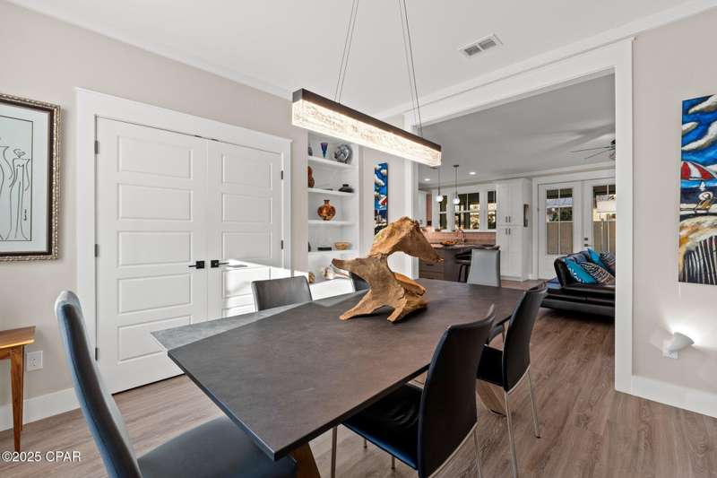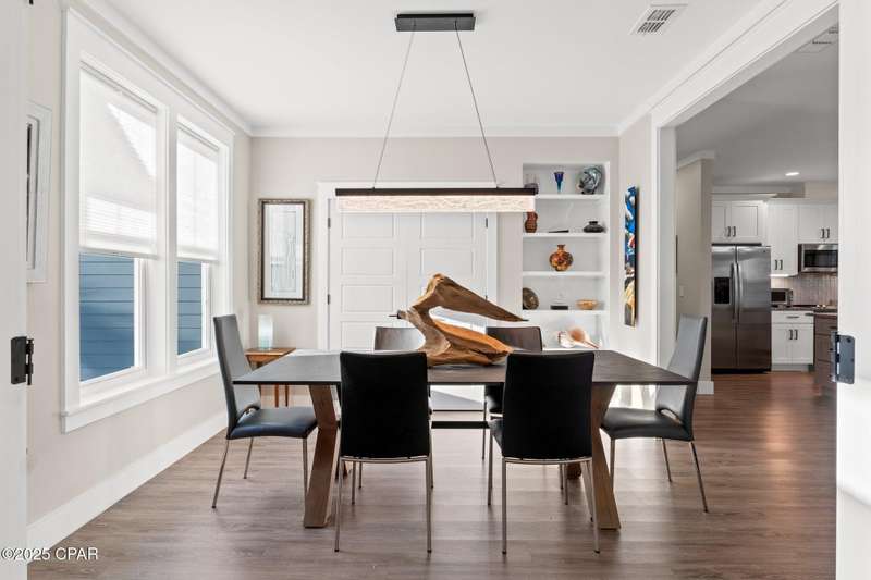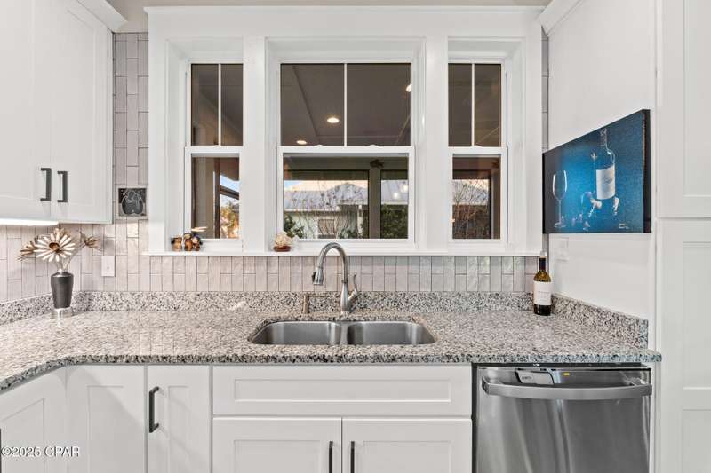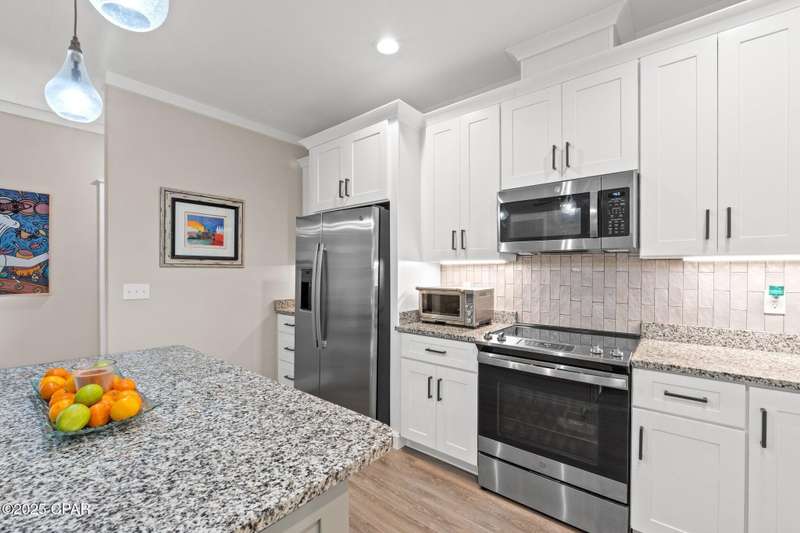 Immaculate one-owner, custom-built home offering exceptional quality, style, and comfort just minutes from the white-sand beaches of Mexico Beach. This 3-bedroom, 3-bath home features an open-concept floor plan with a spacious living area, perfect for entertaining. The kitchen is both beautiful and functional, featuring granite countertops, a custom tile backsplash, large island with additional storage, upgraded lighting, and enhanced electrical features. The primary suite includes a spa-like ensuite with double vanities, a soaking tub, tiled walk-in shower, and a large custom walk-in closet. Enjoy indoor-outdoor living with French doors leading to a screened-in porch ideal for relaxing in the coastal breeze. Numerous upgrades include oversized 2-car garage with EV charger, aluminum fencing with solar lighting, 6-inch gutters, dining room chandelier, and top-down bottom-up blinds. Professionally landscaped yard features hardscape rock accents, brick pavers, and mature trees, including Sylvester palms, Japanese pines, a tupelo tree, Japanese maple, and a Meyer lemon tree. Located in the desirable Casuna subdivision, residents enjoy access to a community pool, clubhouse, and well-maintained surroundings-all just a short golf cart ride from the beach, shops, and restaurants. This beautifully upgraded home is move-in ready and perfect for full-time living. You'll enjoy a peaceful neighborhood vibe, friendly neighbors, and a real sense of community. No short-term rentals allowed.