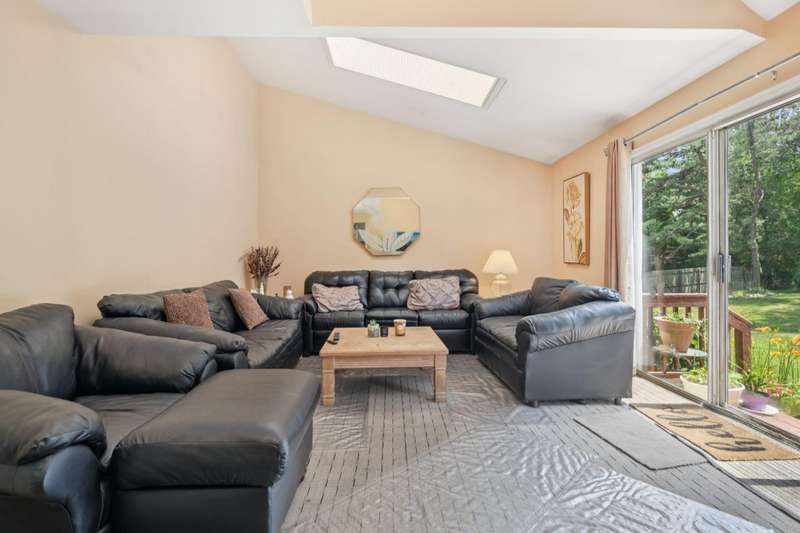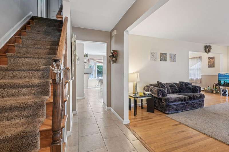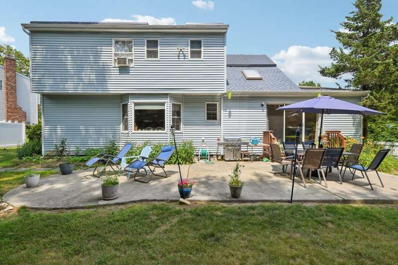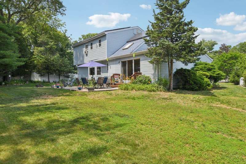 Welcome to this beautifully maintained 4-bedroom, 2.5-bath Colonial, offering the perfect blend of timeless charm and thoughtful modern updates. Nestled on a quiet cul-de-sac in the heart of Ronkonkoma, this home features sun-drenched living spaces, hardwood floors, and a warm, inviting atmosphere throughout.The main level boasts a formal dining room with elegant crown molding, a spacious living room with a cozy wood-burning stove, and an expansive family room-perfect for relaxing or entertaining. The kitchen offers ample cabinetry and a scenic view of the backyard, creating a seamless connection between indoor and outdoor living.Upstairs, the primary suite is a peaceful retreat featuring a generously sized bedroom, en-suite bath, and a walk-in closet. Three additional bedrooms share a spacious full bathroom, providing plenty of comfort for family or guests. A conveniently located half bath on the main floor adds extra ease for visitors.The unfinished basement includes the laundry area, utilities, and abundant storage space-ready for your personal touch or future expansion.Step outside to enjoy the large backyard-ideal for summer barbecues, gardening, or simply unwinding-and a two-car garage adds convenience and extra storage. With easy access to schools, parks, and shopping, this exceptional home offers both comfort and convenience in a sought-after location.Don't miss your chance to make this stunning Colonial your forever home!