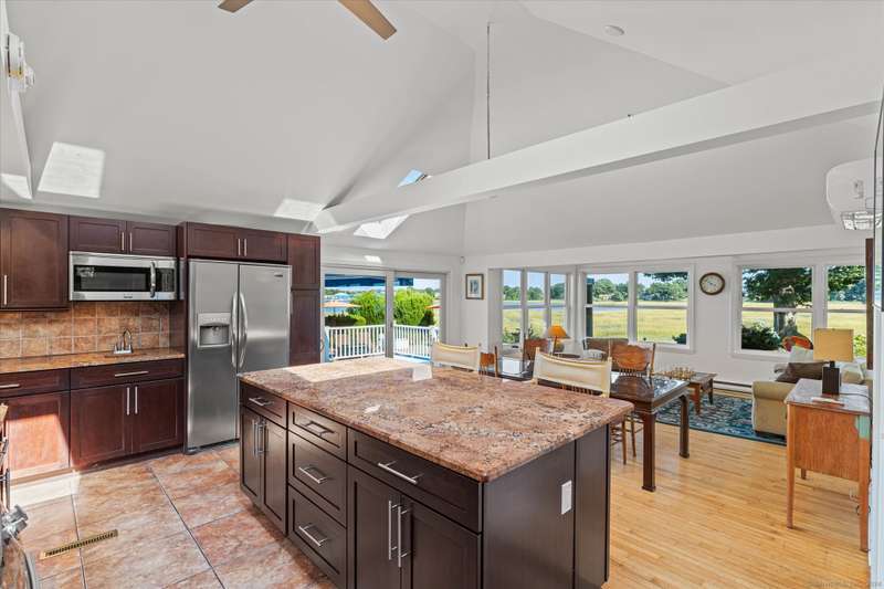 Newly Reduced Price - Your Waterfront Dream Awaits! Seize this rare opportunity to own a breathtaking waterfront retreat with deeded beach rights and resort-style amenities. Perfect as a year-round haven or a profitable second home, this coastal gem offers the ultimate balance of comfort, elegance, and entertainment. Enjoy sun-filled living with sweeping bay views, a cozy wood-burning fireplace, and a chef's kitchen complete with granite countertops, central island, and breakfast bar. Step outside to expansive multi-level decks-perfect for entertaining, dining al fresco, or relaxing by your private in-ground pool in a tranquil seaside setting. The main level boasts a spacious bedroom with deck access, a versatile bonus room/office, a spa-like bath with jetted tub, laundry, plus an inviting wet bar and second full bath with steam shower. Upstairs, two additional bedrooms and a third full bath lead to a private rooftop deck with panoramic water views-the perfect spot for sunrise coffee o