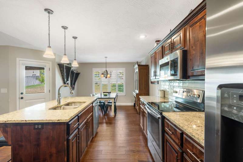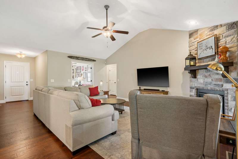 Welcome to Eagle Ridge Estates! This beautiful 3-bedroom, 2-bath home with an office and 3-car garage was built in 2018 and has been well-maintained. The open layout is perfect for everyday living and entertaining, featuring tall ceilings, a kitchen with granite countertops, an island, and stainless steel appliances. The living room is cozy with a stone gas fireplace, while the walk-in pantry and spacious mudroom off of the laundry area helps keep everything organized. Step outside to a covered patio and landscaped yard in one of Nixa's most popular neighborhoods!