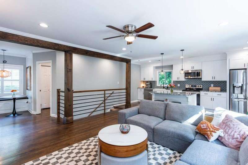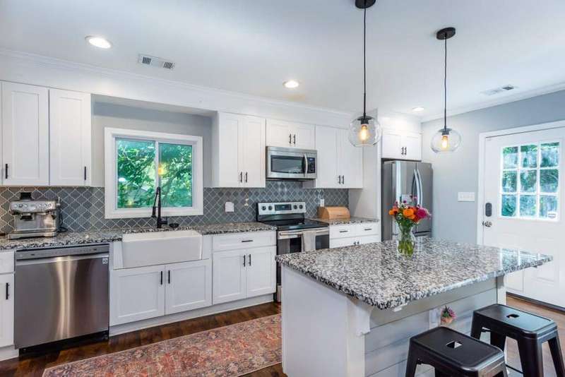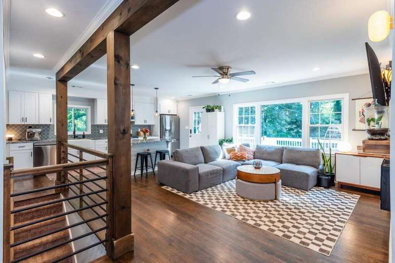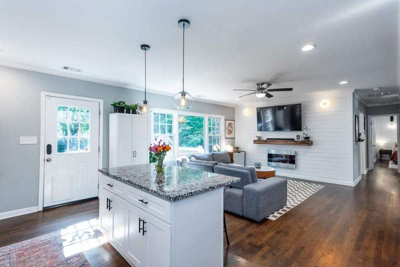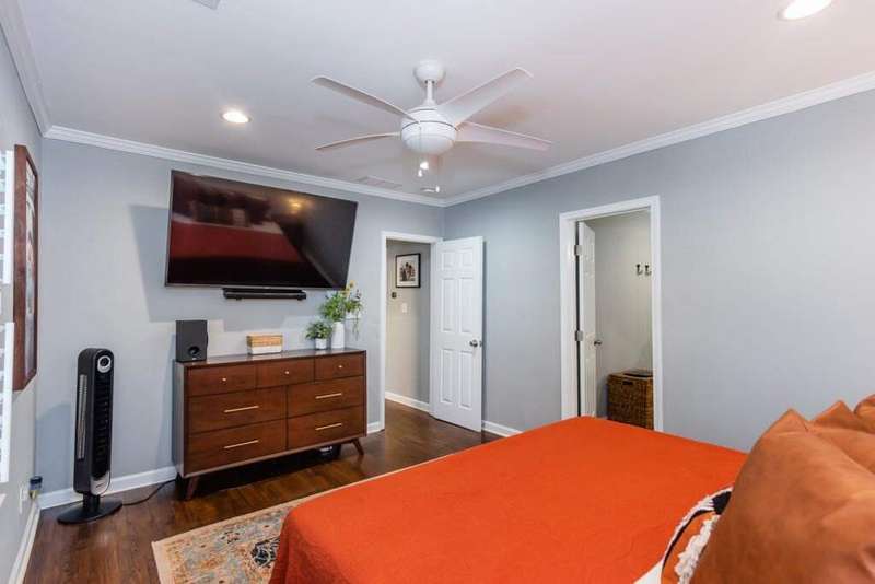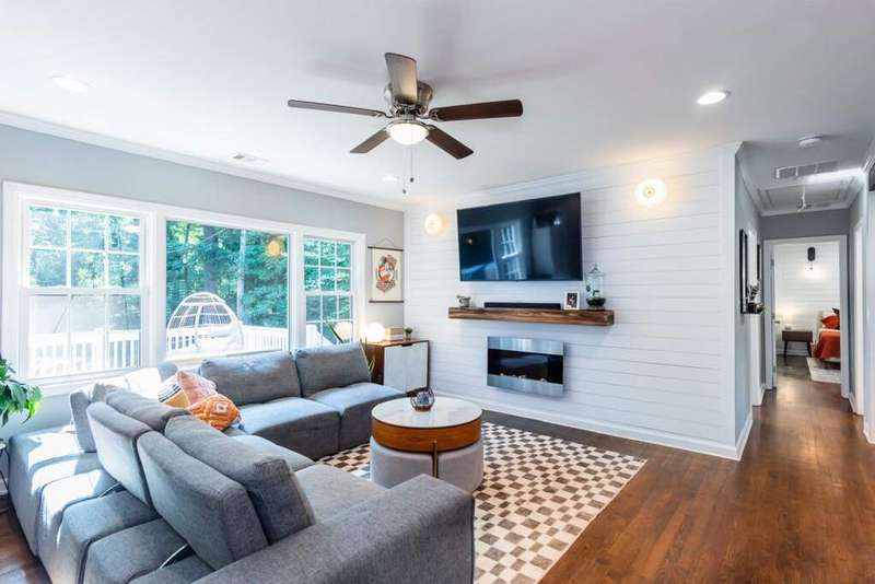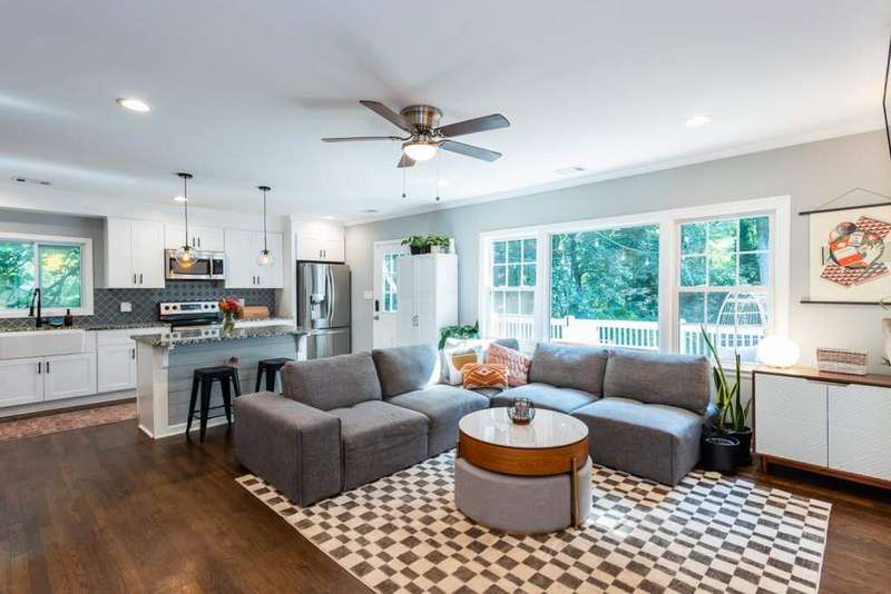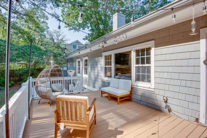 Fall in love with this beautifully updated 3BR/2BA bungalow tucked away on one of the best streets in Venetian Hills! Bursting with natural light and designer touches, this home offers the perfect blend of style, space and functionality. The open concept layout welcomes you with gleaming real hardwood floors on the main level, 9' ceilings, a bright and airy great room and a picture-perfect view of the expansive backyard. The custom kitchen is a true showstopper featuring a large island with breakfast bar, Stainless Steel appliances, tall cabinets, and a stylish backsplash. You will love the unique designer features throughout including a cozy built-in dining nook, shiplap accents, stained wood beams, metal stair railings, and detailed millwork that add so much personality. The spacious primary suite is your private retreat, complete with a spa-inspired bathroom with double vanity, large tiled shower and walk-in closet. Two additional bedrooms offer flexibility for guests, a nursery, or an ideal home office as one of the bedrooms is currently configured. Downstairs, the finished basement is ready for movie nights, gaming or your dream media room. The one car garage has been transformed into a sleek home gym but can easily convert back for parking or storage. Step outside to your personal outdoor escape - featuring a spacious deck and patio that overlook a very large fenced-in yard with endless possibilities for entertaining and relaxing. Major systems have been updated including newer roof, HVAC, Hot Water Heater, plumbing, encapsulated crawlspace (great storage area), waterproofed basement and a Nest Thermostat. A wide driveway provides ample off street parking. Ideally located near the Beltline, Tyler Perry Studios, the Atlanta airport, major highways and many Westside attractions. This home is the total package - move-in ready and full of charm!!