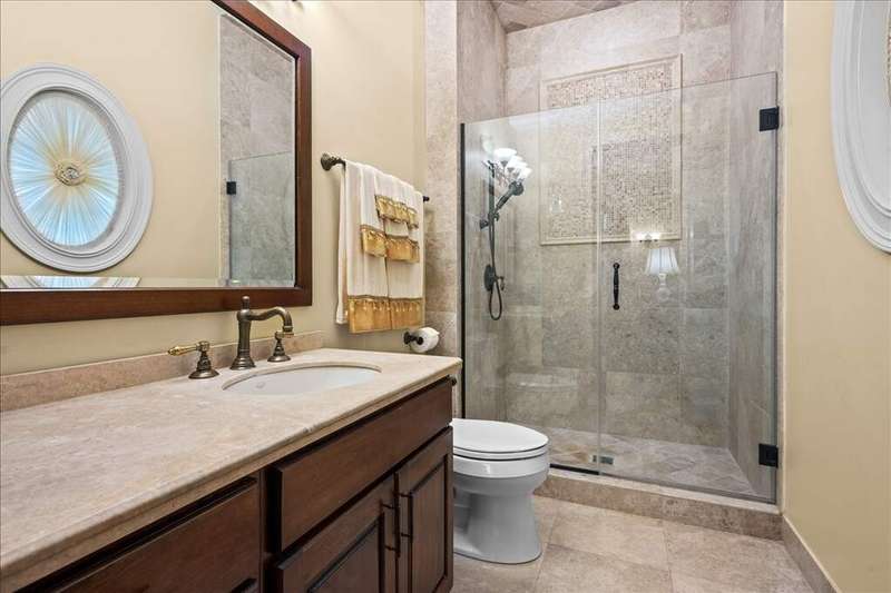 Elegant and sophisticated custom built 5 bedroom, 6 full and 1 half bath home situated on close to a .50 acre located on prestigious Sheridan Road. Home is ideally located within walking distance to the Ravinia shops/restaurants, Ravinia Elementary School, Ravinia Festival, the train, Green Bay Trail and the lake. This stone and stucco home boasts unsurpassed quality construction and is accompanied with luxurious finishes throughout. First level features a gracious sun filled foyer with double height ceiling, chandelier and natural stone flooring. French doors open to a private wood paneled library with custom built-ins and coffered ceiling. Expansive formal dining room with French doors and a butler's pantry is perfect for hosting large gatherings. Living room with limestone surround fireplace, wet bar and two sets of French doors that open to a private bluestone side patio. A cook's kitchen complete with custom cabinetry, granite counters, farmhouse sink, decorative stone tile backsplash, professional stainless-steel appliances, 2 large islands with seating and storage and a large breakfast room. Kitchen opens to a family room that has another limestone surround fireplace and direct access to a three-season screened-in porch. There is a first floor guest bedroom with en-suite bathroom. A formal powder room plus mudroom and laundry room with 2 sets of washer/dryers plus storage is located off oversized 3 car heated garage. Garage boasts custom built-in cabinetry, commercial dog wash and epoxy coated flooring. Second level features a luxurious primary suite with coffered ceiling, sitting area with built-ins and limestone fireplace. Custom designed spacious dressing room/closet with bespoke wood cabinetry, island and storage. Stunning Onyx and marble bath featuring huge curved shower, Whirlpool tub, double vanities and commode closet. 3 additional generous-sized bedrooms all with custom walk-in closets and en-suite baths. Third floor features a loft area that is perfect for a kid's study, hang-out space or lounge. Fabulous lower level complete with a huge recreation room with wet bar and stone fireplace, exercise room, playroom, full bath and tons of storage. The ideal outdoor entertaining space features a huge screened-in porch with slate flooring, TV area and built-in spa with Ipe wood decking. Privately landscaped lush yard. New roof in 2024. Rare opportunity to own this quality-built luxury home in a coveted East Highland Park neighborhood. Above Grade Total Sq Ft: 6,797, Below Grade Total Sq Ft: 3,192, Approx. Total Finished Sq Ft: 9,989 Sq Ft plus 645 Sq Ft 3-car garage. 2024 taxes: $65,626 with Homeowner and Senior Exemptions.