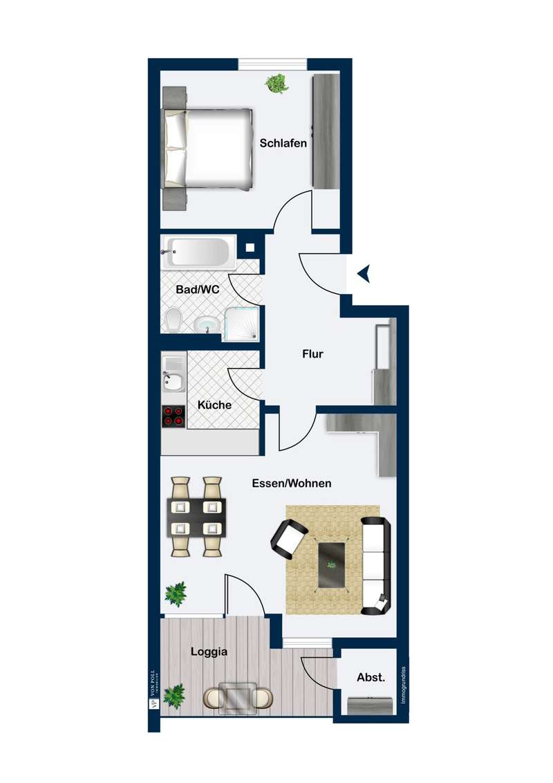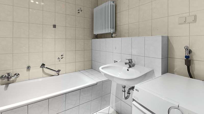 This well-kept 2-room apartment with idyllic loggia is located on the 1st floor of an attractive apartment building and offers a pleasant living experience thanks to its well thought-out room layout. The living space of approx. 62 sqm is divided into a bright bedroom, a spacious living room with open kitchen and access to the loggia, a bathroom with bathtub and shower and an inviting hallway. The living area is fitted with high-quality laminate flooring, which is not only easy to clean but also particularly hard-wearing. A large window provides the room with plenty of natural light and creates a friendly atmosphere. The kitchen is currently empty and therefore offers the ideal basis for designing and furnishing it according to your own ideas. The bedroom is in a quiet location and offers enough space for a double bed and a closet. Here too, laminate flooring creates a pleasant ambience. The modern bathroom is tiled to floor height and has a bathtub and shower. Here you can start or end the day in a relaxed manner. Another highlight is the spacious loggia - it invites you to have breakfast outside on sunny days or to end the evening in the fresh air. The view of the greenery provides additional relaxation. In the hallway you will find enough space for a wardrobe and additional storage. The apartment is fitted with double glazing, which ensures a pleasant indoor climate all year round and reduces energy costs at the same time. Heating is provided by an efficient central heating system, so you can enjoy pleasant temperatures even on colder days. The underground parking space ensures convenient and secure parking - ideal in all weathers and located directly in the building. The communal property includes a bicycle storage room and a drying room. In summary, this 2-room apartment with idyllic loggia offers first-class living comfort for singles, couples or commuters who appreciate a central yet quiet residential area. The successful combination of modern furnishings, an appealing room layout and an attractive location makes this apartment an excellent choice. We would be happy to arrange a viewing for you - come and see the benefits of this property for yourself!