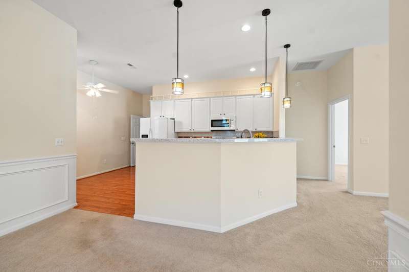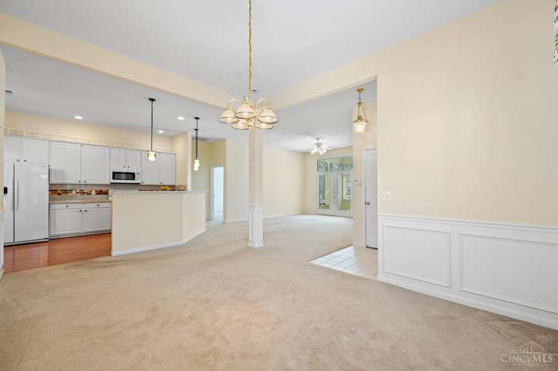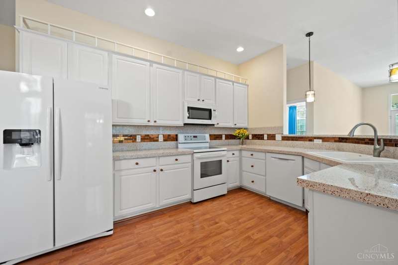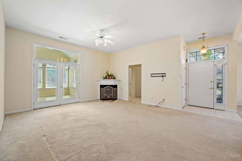 Welcome to first floor-living! This 3bd/2bth condo with an open floor plan and tall ceilings invites you to cozy up in front of the gas fireplace with a warm cup of cocoa to enjoy your winter evenings. The 4 season room features natural light and additional space for activities. You will find updated countertops in the kitchen made from reclaimed glass (2015). HVAC, HWH, Champion windows - 8 yrs old. Bathroom floors, washer/dryer - 2 yrs old. Comes with tons of closet space in addition to built-in shelves in the oversized 2 car attached garage. You don't want to miss this one! Property being sold AS IS.