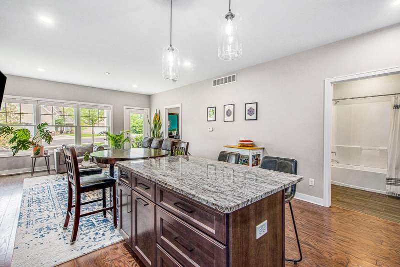 Over 2300 square feet of quality luxury living space in the heart of Dexter at Grandview Commons in a first-floor ranch condo with finished lower level, all just footsteps to the southern entrance of the Border to Border Trail. Short walk to downtown restaurants, parks, and shopping. Beautifully executed layout with quality interior finishes, including white kitchen cabinetry, designer tile backsplash, granite countertops, large island with snack bar, stainless steel appliances, and LVP floors for the max in durability and beauty. Cozy fireplace in the living room and spacious primary suite with a large walk-in & beautifully appointed quartz bath. An additional bedroom served by the main bath, along with first-floor laundry. Well-lit lower level features egress in the large bedroom and oversized family room with a full bath. Great for families or visiting friends. Andersen windows throughout. Be sure to watch the video tour!