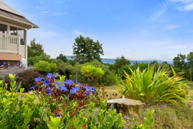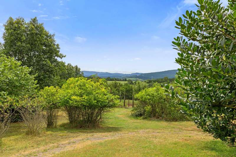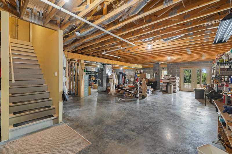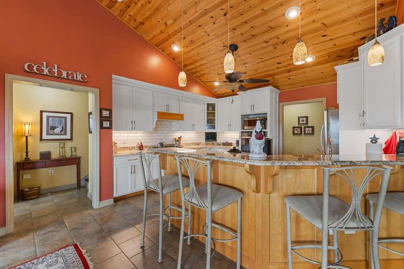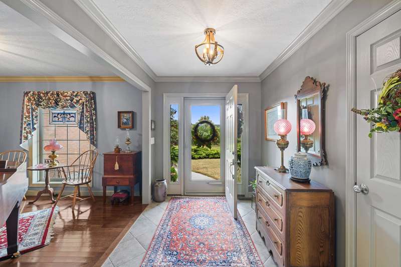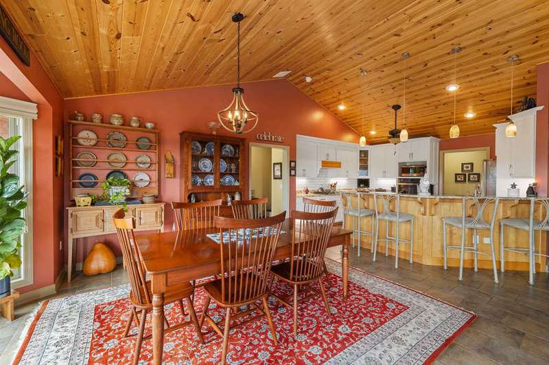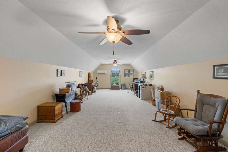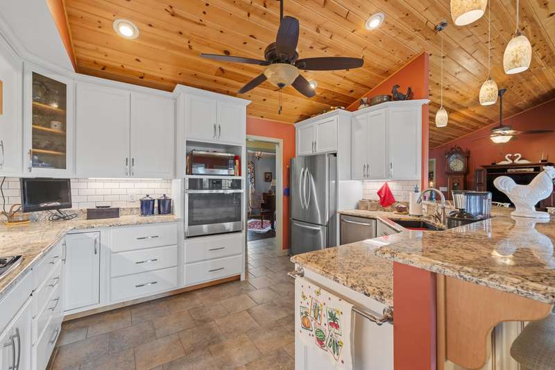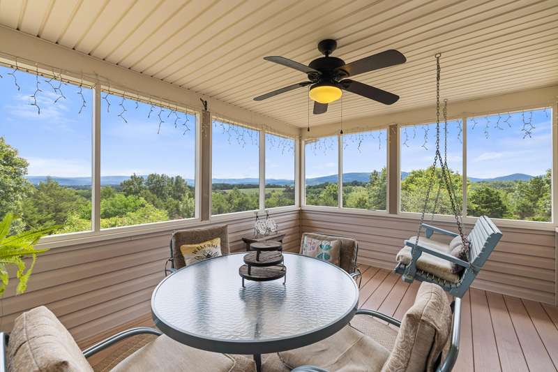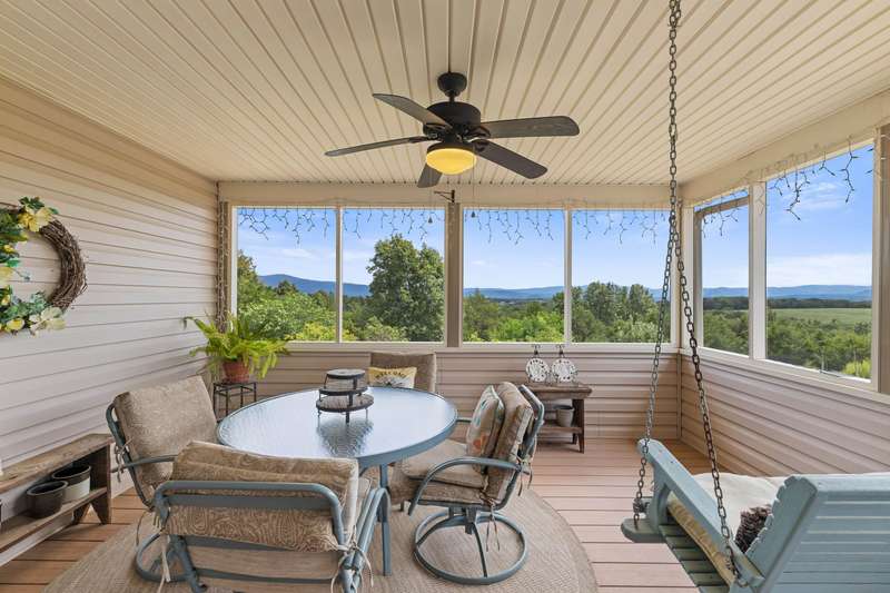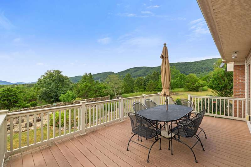 Private 6.36-Acre Retreat with Stunning Panoramic Views! This beautifully maintained 3-bedroom, 2-bath home offers the perfect balance of comfort, functionality, and privacy. Ideal as a full-time residence or peaceful getaway, the home features a spacious open floor plan with a cathedral wood ceiling, a striking stone gas fireplace, and large rear-facing windows that showcase breathtaking views. Enjoy the warmth of wood and tile flooring throughout, an inviting kitchen with informal dining area, and a generously sized laundry room with pantry. The screened-in porch and composite deck provide perfect spaces to relax or entertain while taking in the serene natural surroundings. Heating and cooling are covered with a heat pump, mini split, and pellet stove, ensuring year-round comfort. The solar system installed in 2019 has generated enough power for the home to eliminate an electric bill since installation. A full unfinished basement offers plenty of storage or future expansion potential. The property includes a 2-car attached garage, a large 24' x 32' detached garage/workshop, and an additional 12' x 20' outbuilding—perfect for hobbies, tools, or extra storage. Beautiful landscaping adds to the charm of this private property.