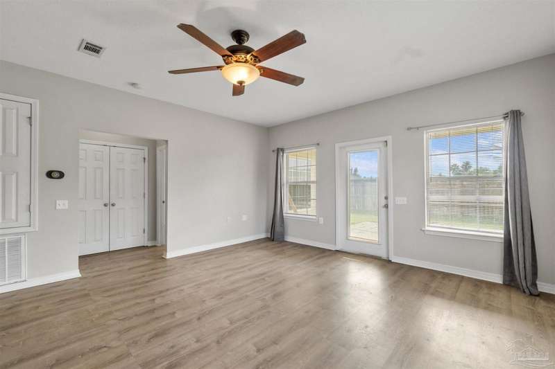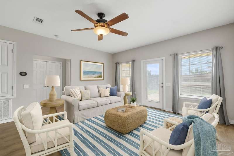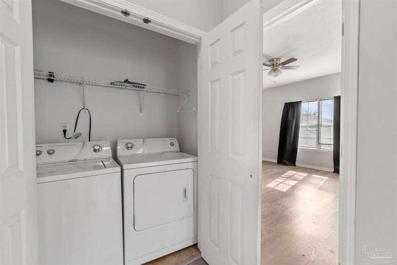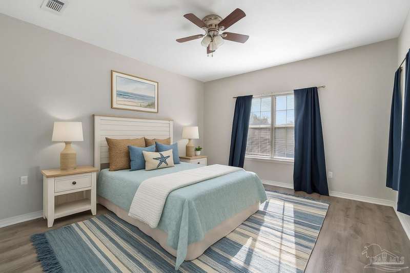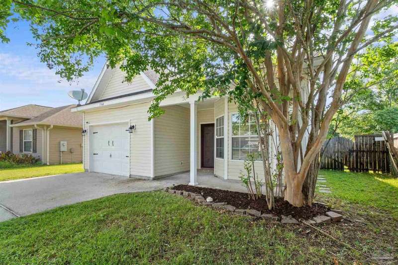 Welcome to this move-in ready home in a prime location-conveniently between both military bases, top-rated schools, beaches, the zoo, and shopping. Located in a neighborhood with sidewalks, a playground, and two serene lakes, this home is ideal. Inside, the well-designed floor plan offers plenty of space and storage. The bright, open dining area features a charming bay window that fills the space with natural light, flowing seamlessly into a functional kitchen with ample counter space, a breakfast bar, and pantry. Newer Stainless appliances! The cozy, spacious living room opens to a fully privacy-fenced backyard. The primary suite is conveniently located on the first floor, complete with a large walk-in closet, oversized tub, and dual vanities. A guest half-bath adds extra convenience. Upstairs, you'll find two generously sized bedrooms with great closet space, sharing a full bathroom. Don't miss out on this affordable home.