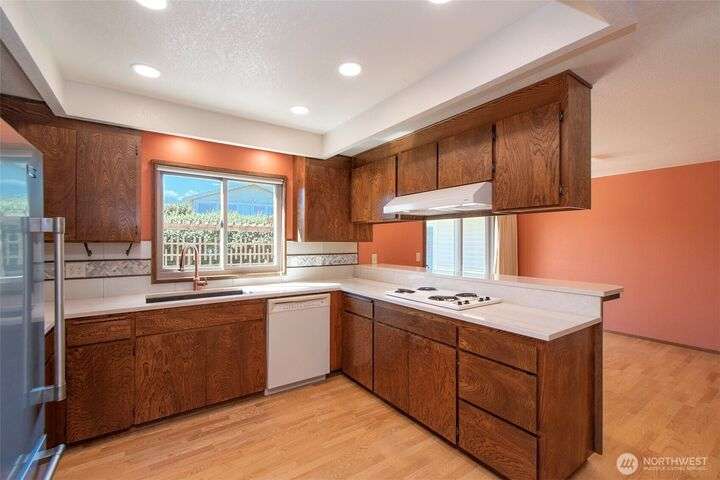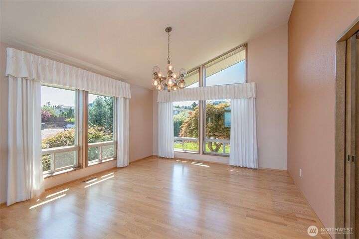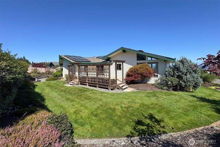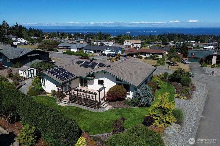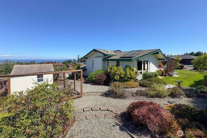 Beautiful custom-built water view home in the Uplands. The home is well built and features a stunning water view, a mountain view, 2+ bedrooms, a den/office space, a formal dining room, a suite like primary bedroom and bath and a spacious family room. There are 2 wood burning fireplaces, a large utility room with extra hobby space and a large 2 car garage with work areas. The lot is landscaped and well maintained with a south facing patio. Located 1/2 a block from Peninsula Golf Course and has easy access to downtown, shopping, restaurants, and the ONP.