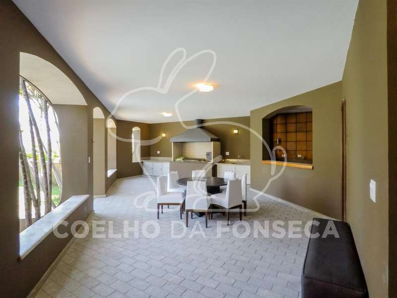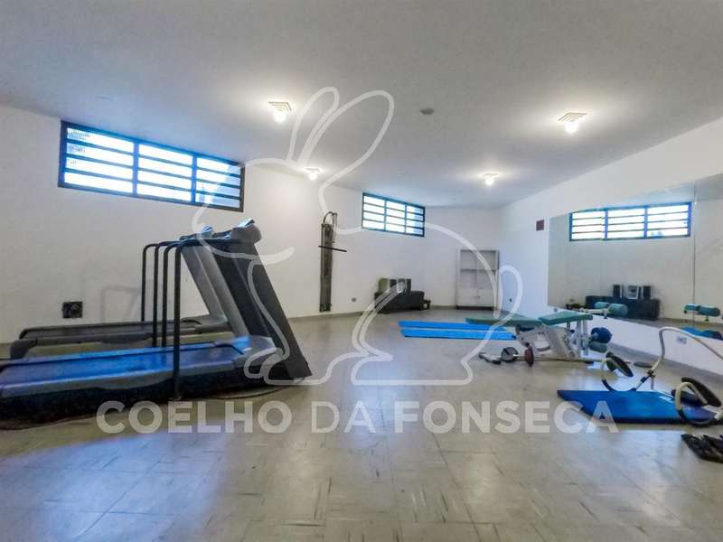 Area externa com sala de ginastica, sauna, piscina aquecida, churrasqueira, canil.
