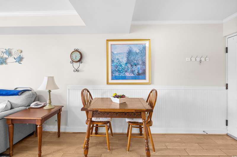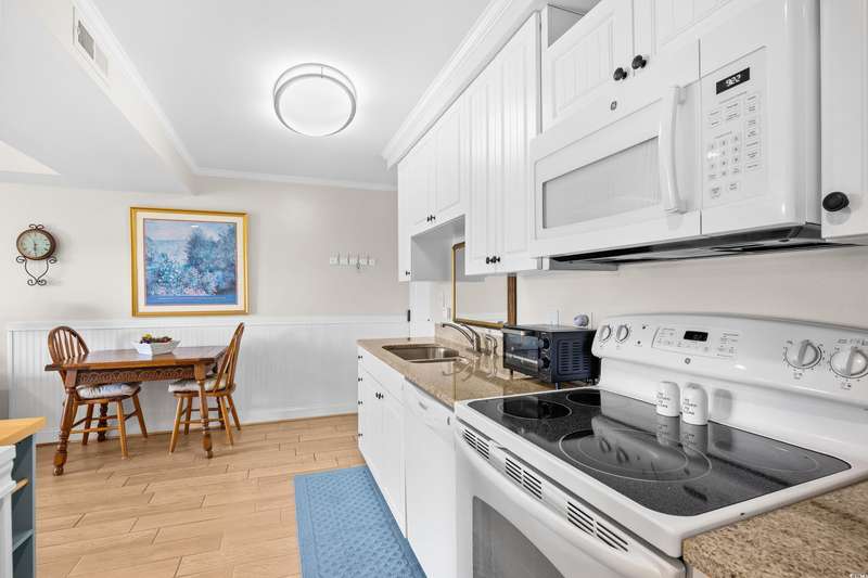 This is a beautifully maintained, furnished, move-in-ready lakefront villa in Summerhouse at Litchfield By The Sea. This second-floor villa offers a tranquil setting just a short walk to the beach—an ideal personal retreat or income-producing investment. Step onto your private balcony and take in peaceful views of the Summerhouse pond, perfectly framed between two palm trees for added serenity and a touch of privacy. Inside, the villa features a recently painted interior, a full kitchen, a welcoming living area, a spacious bedroom with two queen beds, a well-appointed bathroom, and stylish new ceramic tile flooring throughout. It’s truly turnkey—ready for personal enjoyment or short-term rental use. Owners and guests enjoy full access to Litchfield By the Sea amenities, including the Summerhouse lazy river and pool, indoor pool, private beach access, on-site Starbucks and restaurant, fitness center, children’s playground, stocked fishing ponds, and miles of scenic walking and biking trails. Whether you're looking for a weekend escape, seasonal rental property, or a low-maintenance beach-area home, this villa is a fantastic opportunity in one of the Grand Strand’s most desirable communities.