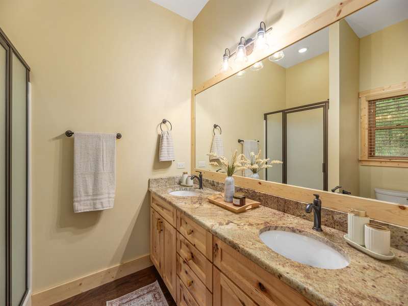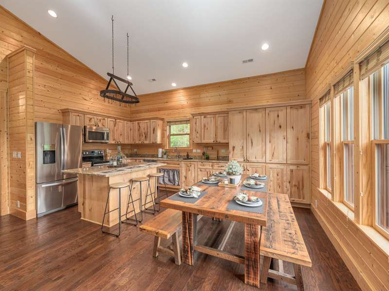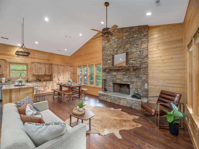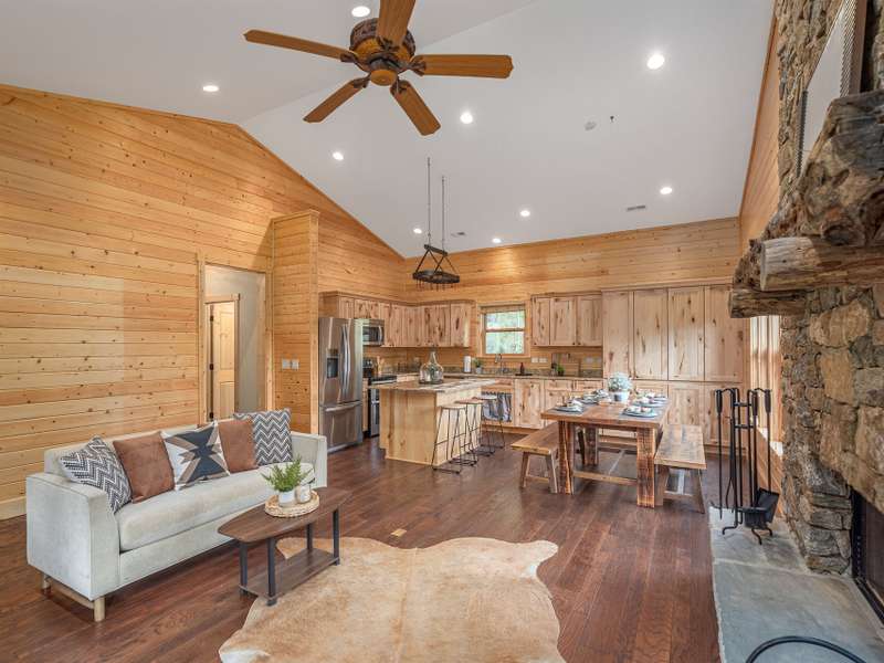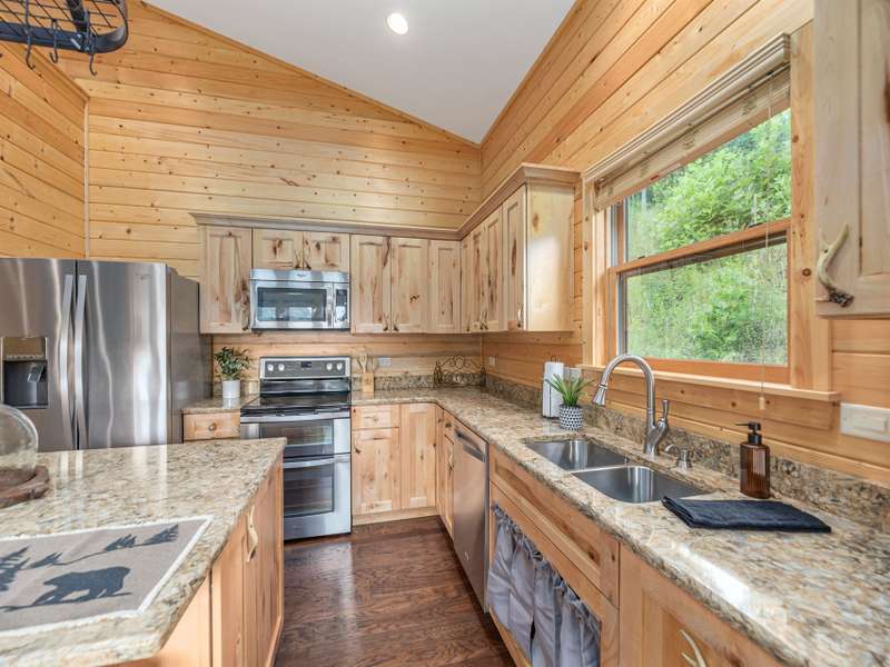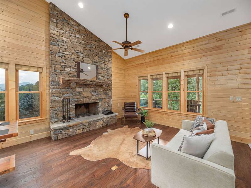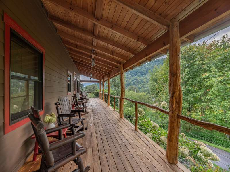 Come rock on the covered front porch of this nearly new custom cabin while listening to the sounds of the stream and taking in the Blue Ridge Mountain views. This two bedroom, two bath home, plus a LARGE bonus room is nestled in the desirable Plott Creek area of Waynesville. With no restrictions, this property offers flexibility and freedom?whether you're looking for a full-time residence, vacation home, or rental opportunity. Fully-equipped kitchen features soft-close solid wood cabinets, granite and quartz countertops. Fed by a natural spring and move-in ready, this cozy home combines rustic charm with modern comforts. Convenient paved access all the way to the property. Enjoy peaceful mountain living surrounded by nature, just a short drive from downtown Waynesville, hiking trails, and the Blue Ridge Parkway. The home is situated on just under a 1/2 acre, with an additional 4+/-acres available for purchase located at the rear of the property. Don't miss this rare find in the mountains!