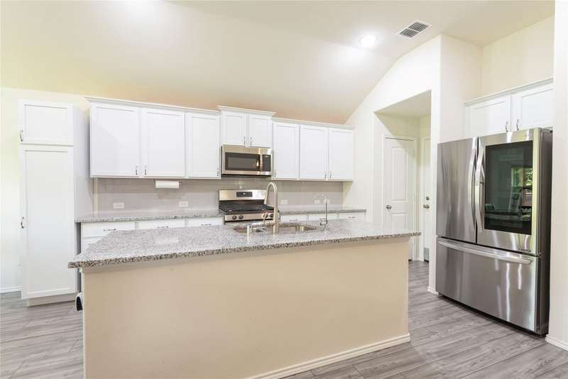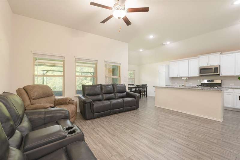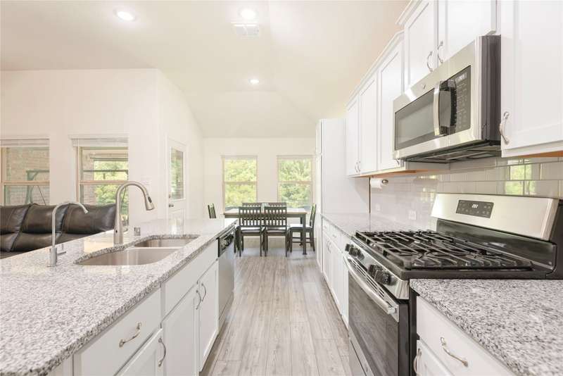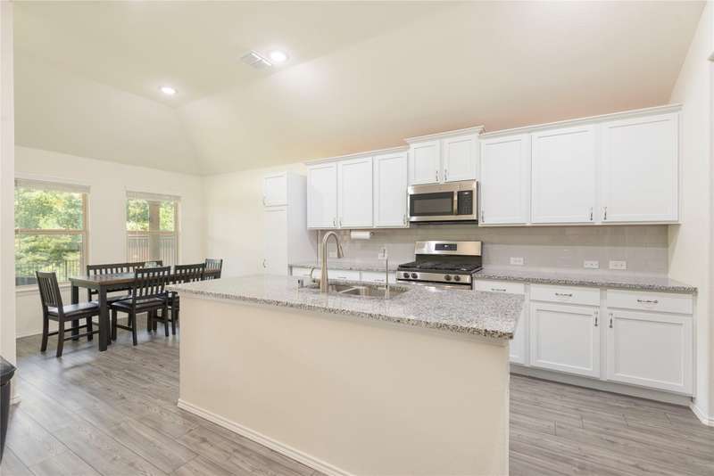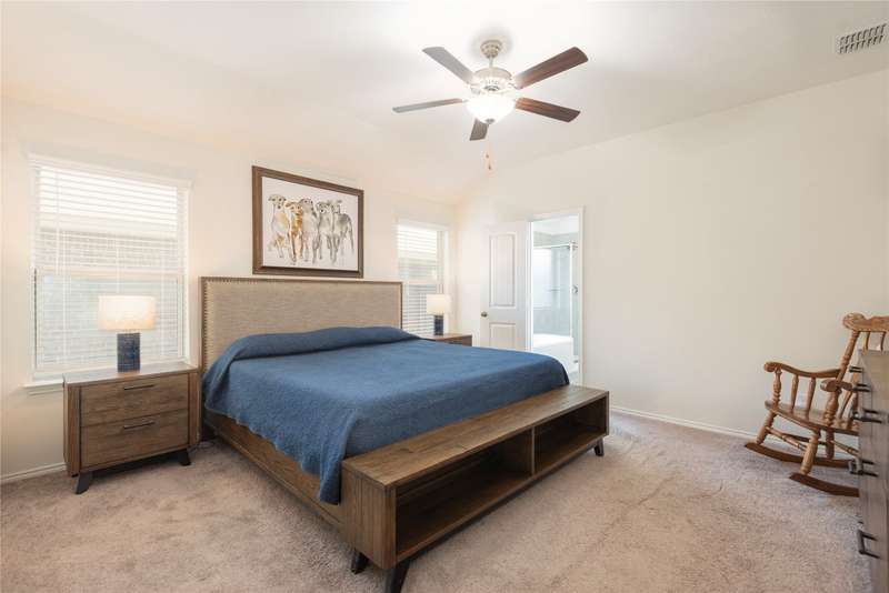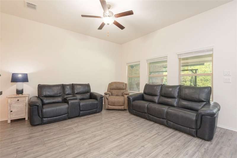 Stunning Backyard Oasis! Welcome to this charming one-story brick home offering comfort, style, and sustainability. This 3-bedroom, 2-bathroom gem features a spacious layout with an inviting living area that seamlessly flows into the kitchen and dining spaceperfect for everyday living and entertaining. The kitchen boasts stainless steel appliances, granite countertops, a pantry, and abundant cabinet space, all overlooking the large living room. The primary suite includes a ceiling fan, private bath with double sinks, a soaking tub, a separate shower, and a large walk-in closet. Additional highlights include a dedicated utility room for a full-size washer and dryer, an owned solar panel system with backup battery, and a Rain Soft saltwater softener system for added comfort and efficiency. Step outside to your own private retreatan extended covered patio with a ceiling fan and mister, perfect for outdoor gatherings. The backyard backs to a serene greenbelt with a heavily wooded area, offering peace and privacy. Enjoy low-maintenance living with an automatic sprinkler system and rain gutters. Conveniently located near shopping, dining, entertainment, major highways, and airportsthis home truly has it all. Dont miss this opportunity to own a well-maintained home with modern upgrades and breathtaking views!