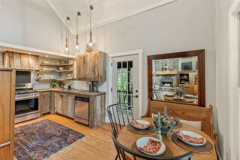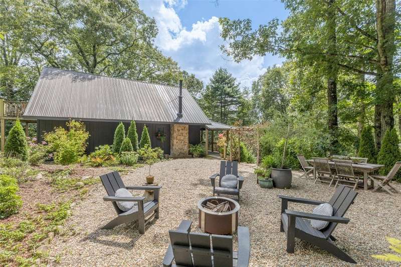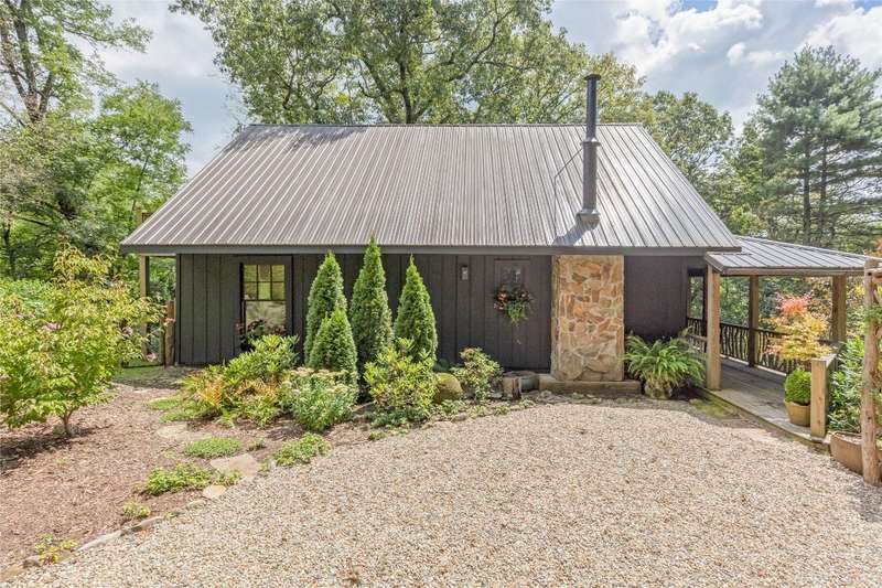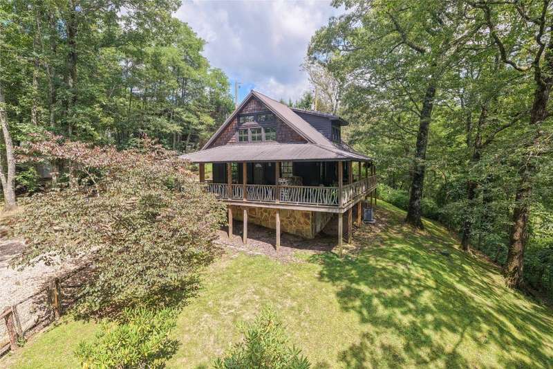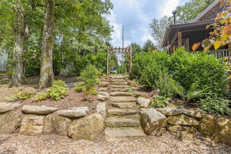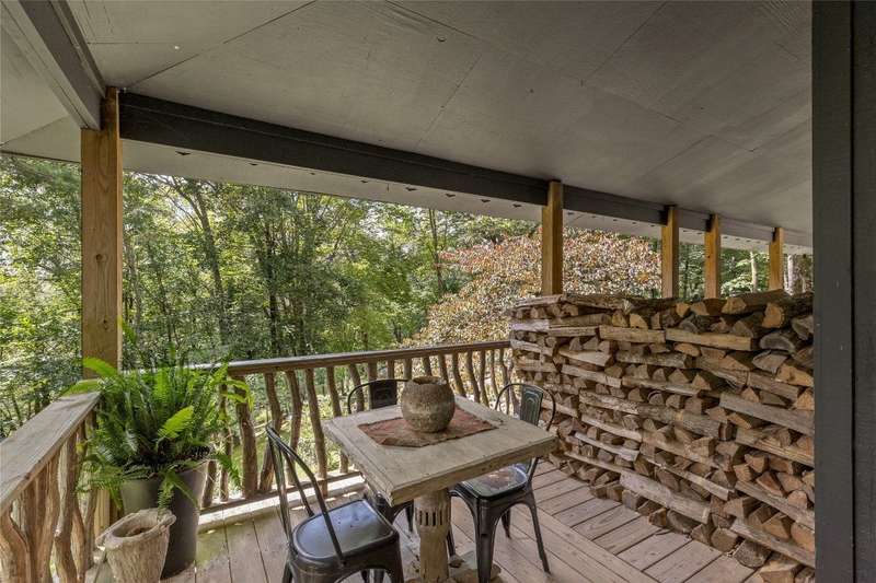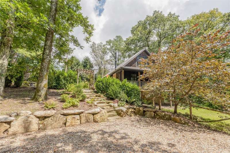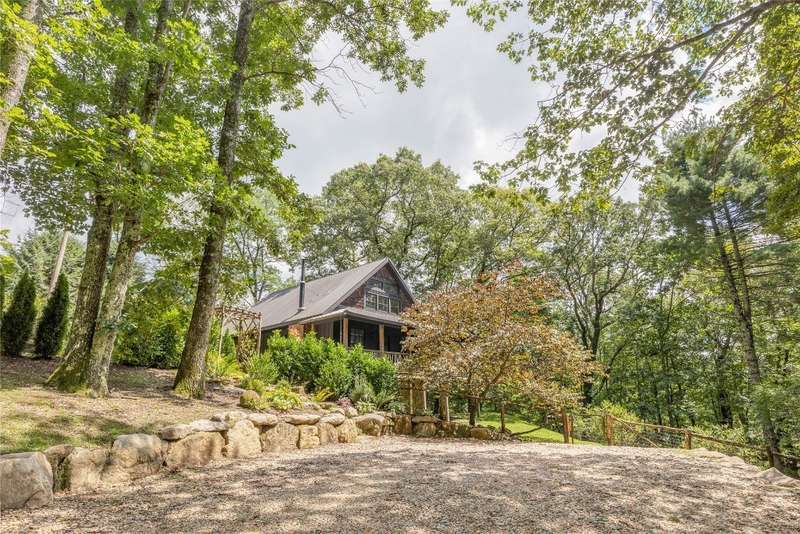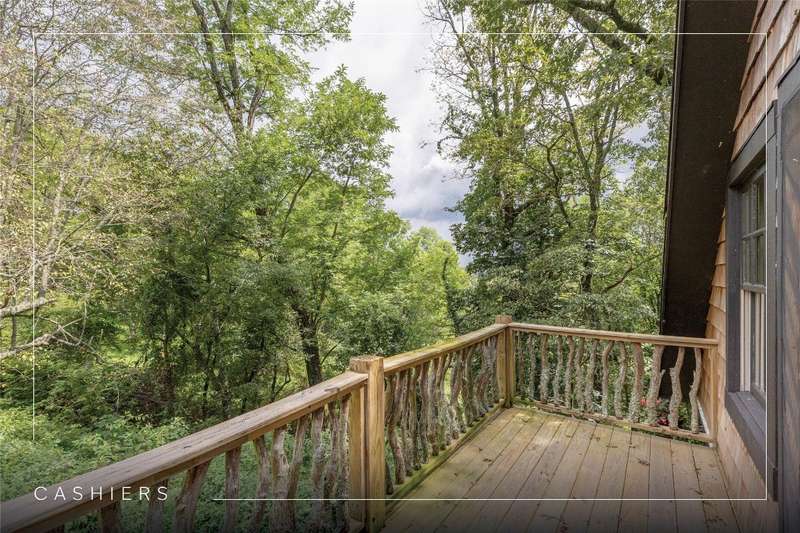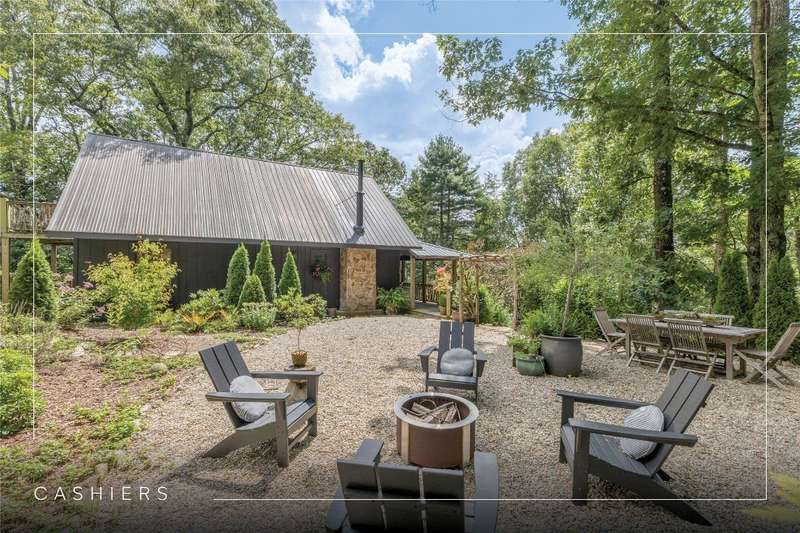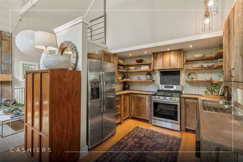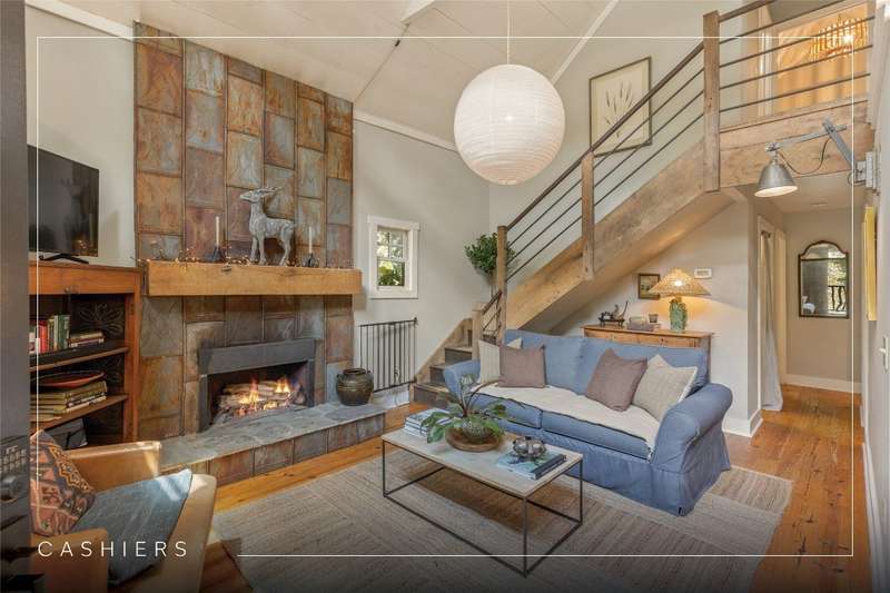 Discover a thoughtfully renovated cabin with a perfect blend of rustic charm and modern comfort just minutes from the heart of Cashiers. With three bedrooms, two full bathrooms, and two levels, it works beautifully as a full-time home, mountain getaway, or income-producing rental. Inside, a cathedral ceiling and abundant windows fill the open living area with natural light. At its heart, a wood-burning fireplace rises to the ceiling with a decorative metal surround and stone hearth, creating a warm and inviting focal point. The kitchen combines mountain character with modern function, featuring reclaimed wood cabinets, open shelving, stone countertops, and stainless steel appliances. A cozy dining nook flows seamlessly into the living space, while wood floors add warmth and continuity throughout. The upstairs primary suite is a serene retreat, complete with a private balcony perfect for savoring fresh mountain air and leafy views. The outdoor living space is equally enchanting. A wraparound covered deck invites relaxation, complete with an outdoor shower for rinsing off after a day of adventure. Nearly level yard space is ideal for gardening, while partially fenced and beautifully landscaped grounds are filled with native greenery and anchored by a river-stone firepit - perfect for gathering with friends or enjoying quiet nights under the stars. Set on more than half an acre with minimal neighboring homes, this property offers privacy without sacrificing convenience, with shopping, dining, and recreation in Cashiers just minutes away. An additional storage shed provides space for tools, gear, or hobbies. With its updated design, serene setting, and close-to-town location, this cabin truly captures the essence of a cozy mountain retreat.