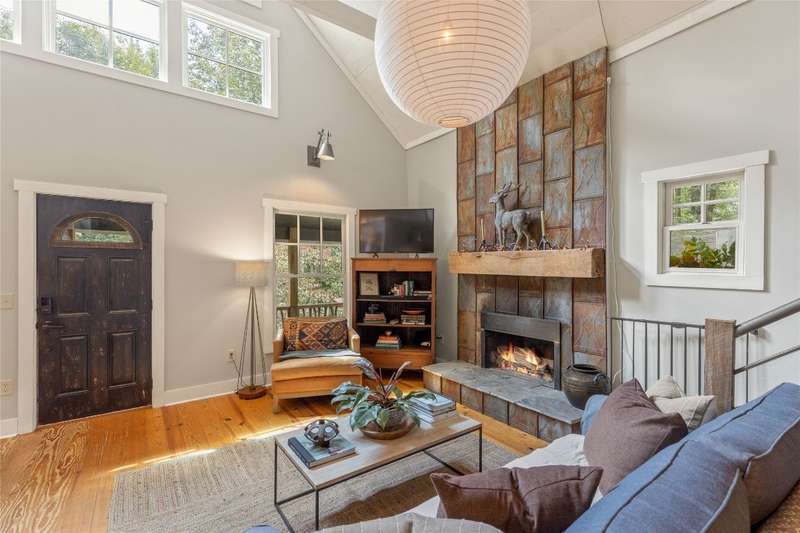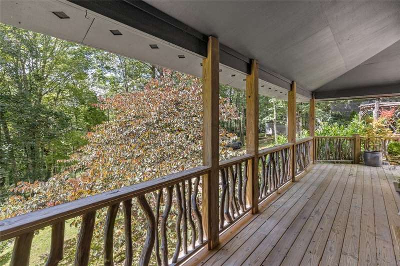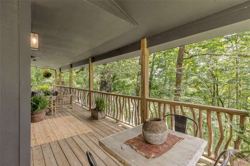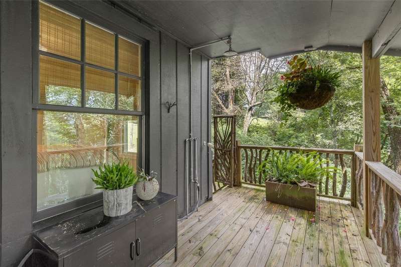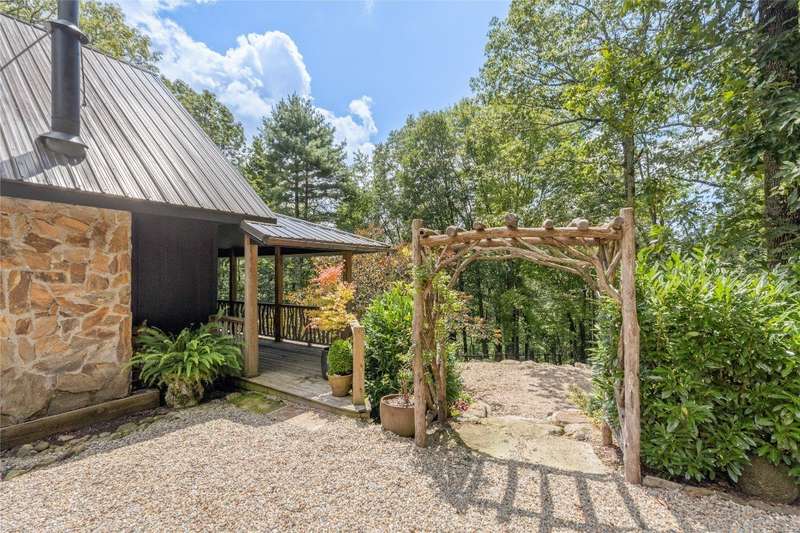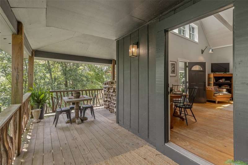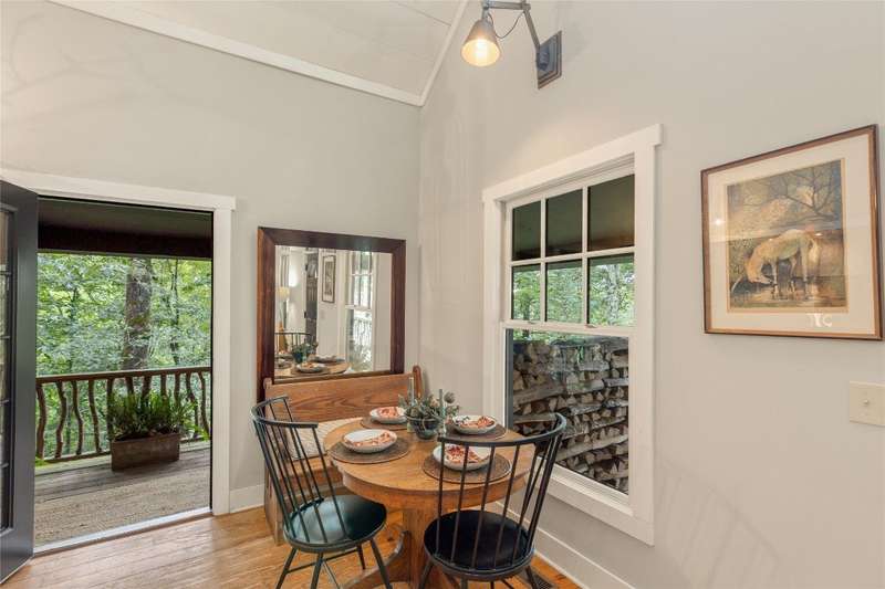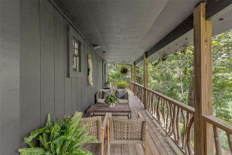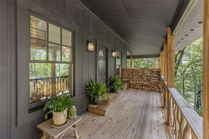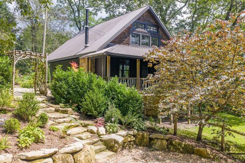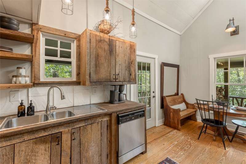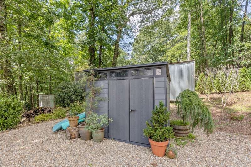 Discover a thoughtfully renovated cabin with a perfect blend of rustic charm and modern comfort just minutes from the heart of Cashiers. With three bedrooms, two full bathrooms, and two levels, it works beautifully as a full-time home, mountain getaway, or income-producing rental. Inside, a cathedral ceiling and abundant windows fill the open living area with natural light. At its heart, a wood-burning fireplace rises to the ceiling with a decorative metal surround and stone hearth, creating a warm and inviting focal point. The kitchen combines mountain character with modern function, featuring reclaimed wood cabinets, open shelving, stone countertops, and stainless steel appliances. A cozy dining nook flows seamlessly into the living space, while wood floors add warmth and continuity throughout. The upstairs primary suite is a serene retreat, complete with a private balcony perfect for savoring fresh mountain air and leafy views. The outdoor living space is equally enchanting. A wraparound covered deck invites relaxation, complete with an outdoor shower for rinsing off after a day of adventure. Nearly level yard space is ideal for gardening, while partially fenced and beautifully landscaped grounds are filled with native greenery and anchored by a river-stone firepit - perfect for gathering with friends or enjoying quiet nights under the stars. Set on more than half an acre with minimal neighboring homes, this property offers privacy without sacrificing convenience, with shopping, dining, and recreation in Cashiers just minutes away. An additional storage shed provides space for tools, gear, or hobbies. With its updated design, serene setting, and close-to-town location, this cabin truly captures the essence of a cozy mountain retreat.