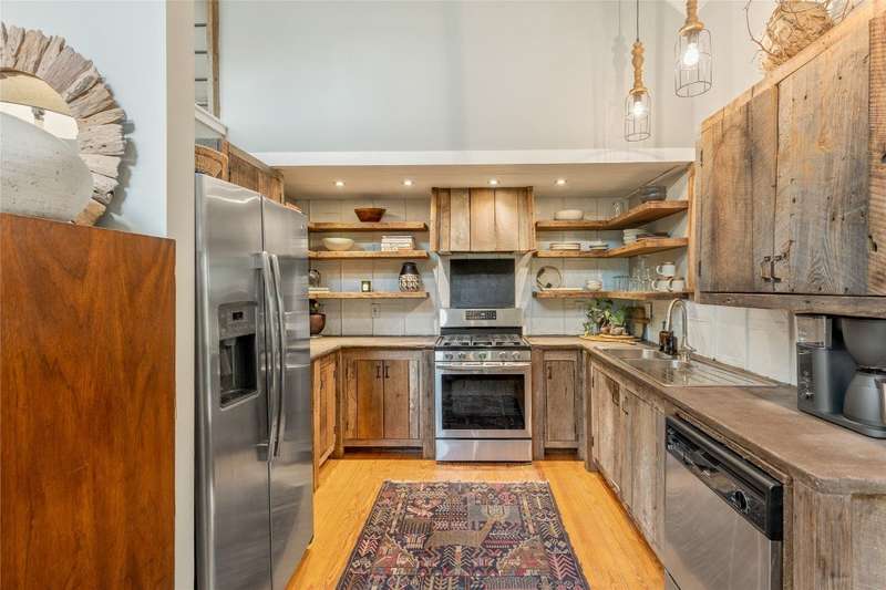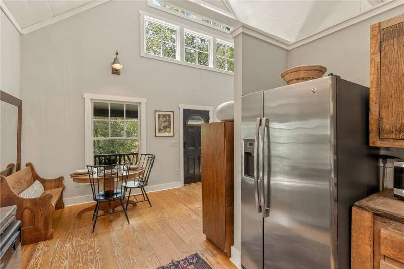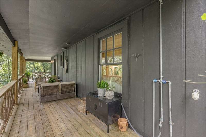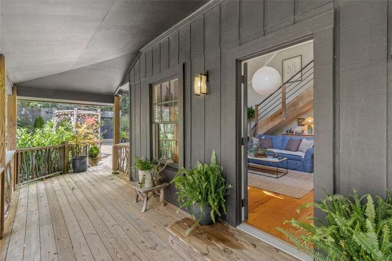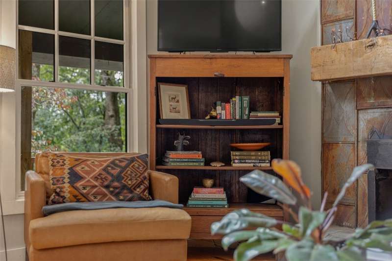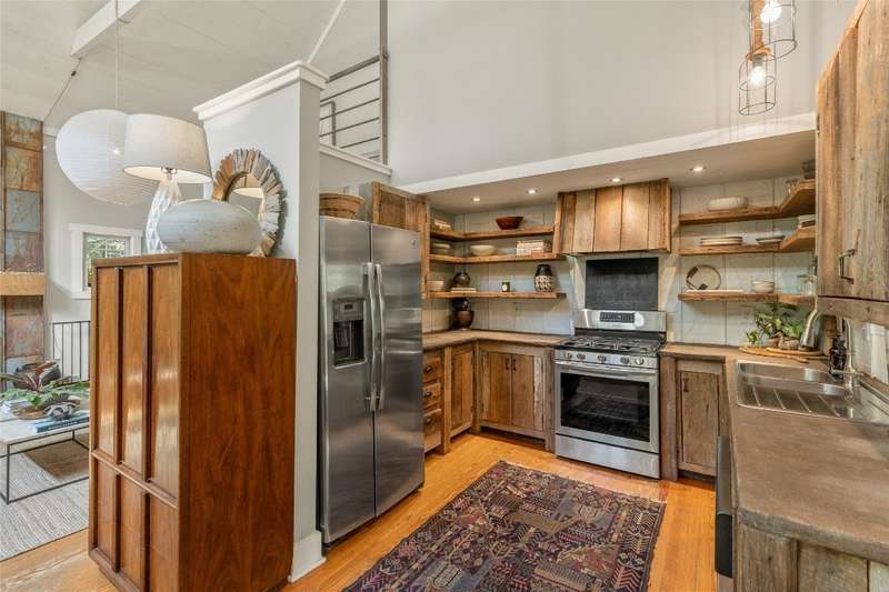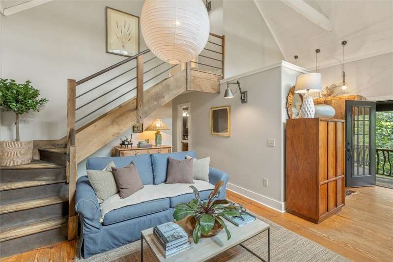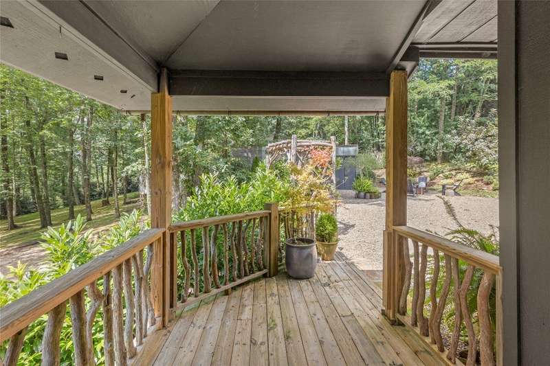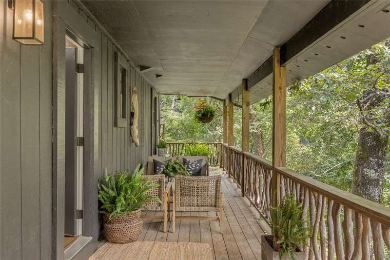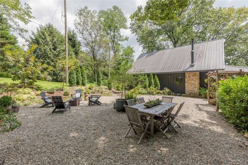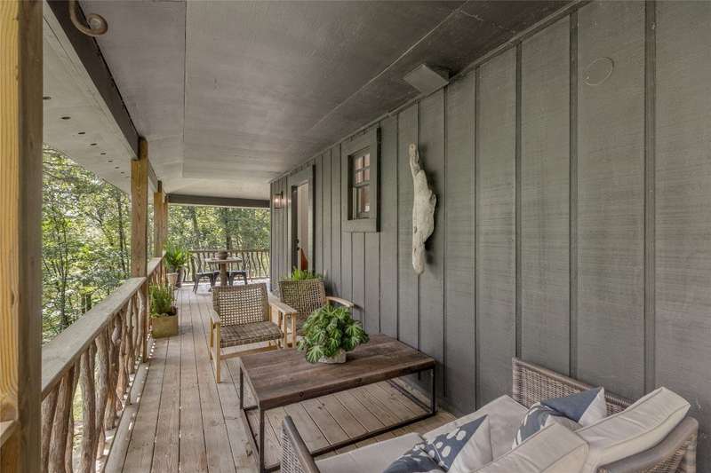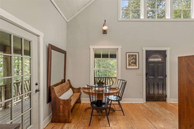 Discover a thoughtfully renovated cabin with a perfect blend of rustic charm and modern comfort just minutes from the heart of Cashiers. With three bedrooms, two full bathrooms, and two levels, it works beautifully as a full-time home, mountain getaway, or income-producing rental. Inside, a cathedral ceiling and abundant windows fill the open living area with natural light. At its heart, a wood-burning fireplace rises to the ceiling with a decorative metal surround and stone hearth, creating a warm and inviting focal point. The kitchen combines mountain character with modern function, featuring reclaimed wood cabinets, open shelving, stone countertops, and stainless steel appliances. A cozy dining nook flows seamlessly into the living space, while wood floors add warmth and continuity throughout. The upstairs primary suite is a serene retreat, complete with a private balcony perfect for savoring fresh mountain air and leafy views. The outdoor living space is equally enchanting. A wraparound covered deck invites relaxation, complete with an outdoor shower for rinsing off after a day of adventure. Nearly level yard space is ideal for gardening, while partially fenced and beautifully landscaped grounds are filled with native greenery and anchored by a river-stone firepit - perfect for gathering with friends or enjoying quiet nights under the stars. Set on more than half an acre with minimal neighboring homes, this property offers privacy without sacrificing convenience, with shopping, dining, and recreation in Cashiers just minutes away. An additional storage shed provides space for tools, gear, or hobbies. With its updated design, serene setting, and close-to-town location, this cabin truly captures the essence of a cozy mountain retreat.