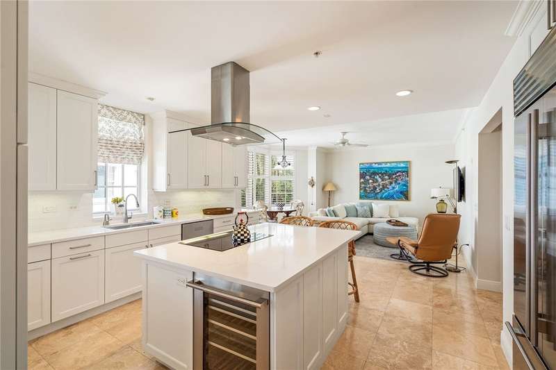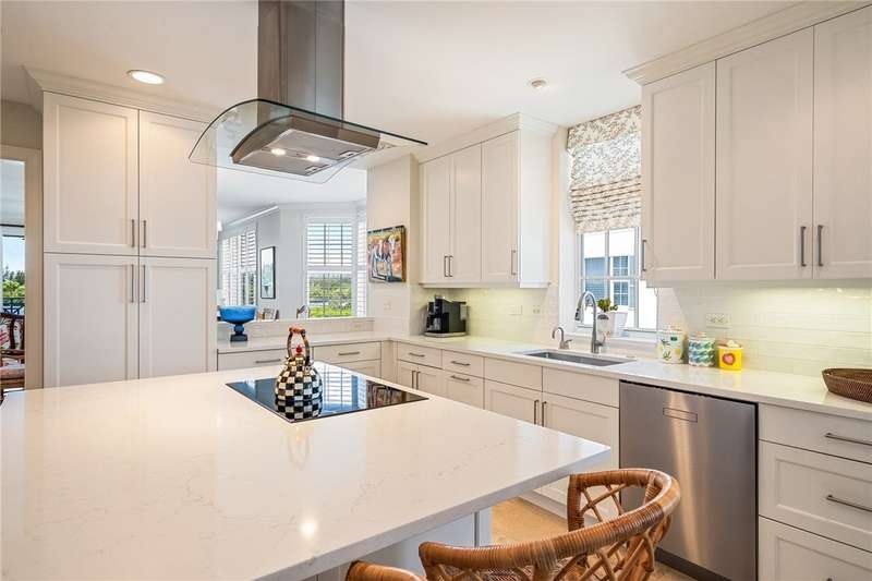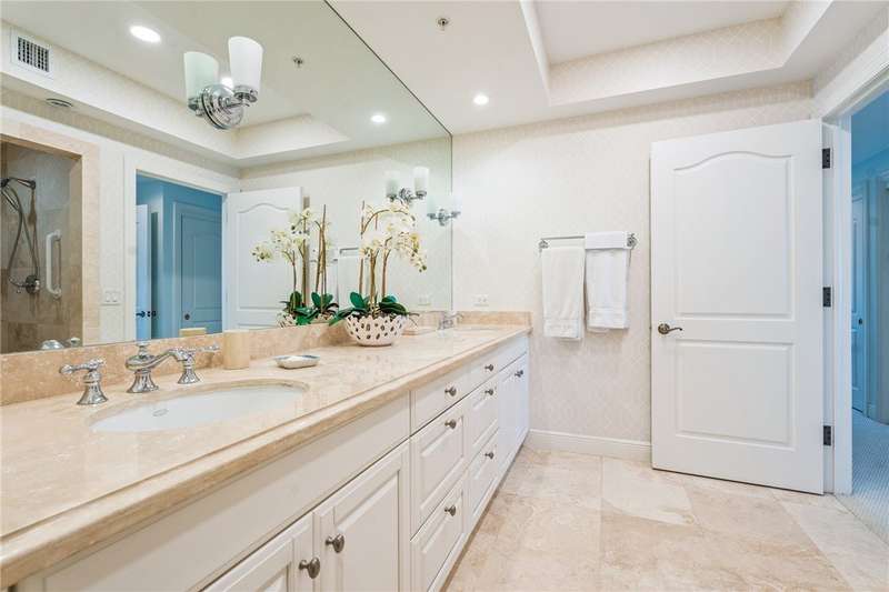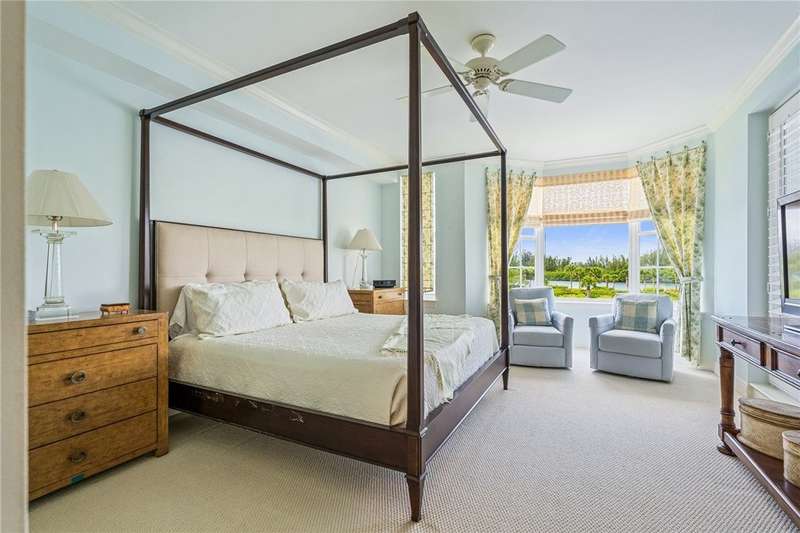 Elegant condo offers unobstructed views of Indian River Intracoastal waterway. Beautifully finished w/Saturnia marble floors in Living Area, custom built-ins, crown moldings, custom window treatments, gas fireplace. New kitchen quartz counter tops, new top of the line appliances, buffet bar, interior painted 2020. New AC units in 2024. Electric roll patio screens, private elevator entry, 2 Car AC garage. Heated pool & fitness room across from Clubhouse. Deeded Beach Access. Seller paid the $35,000 assessment for Exterior Painting, new roof plus the Clubhouse. Incorrect Sq. ft. in tax record.